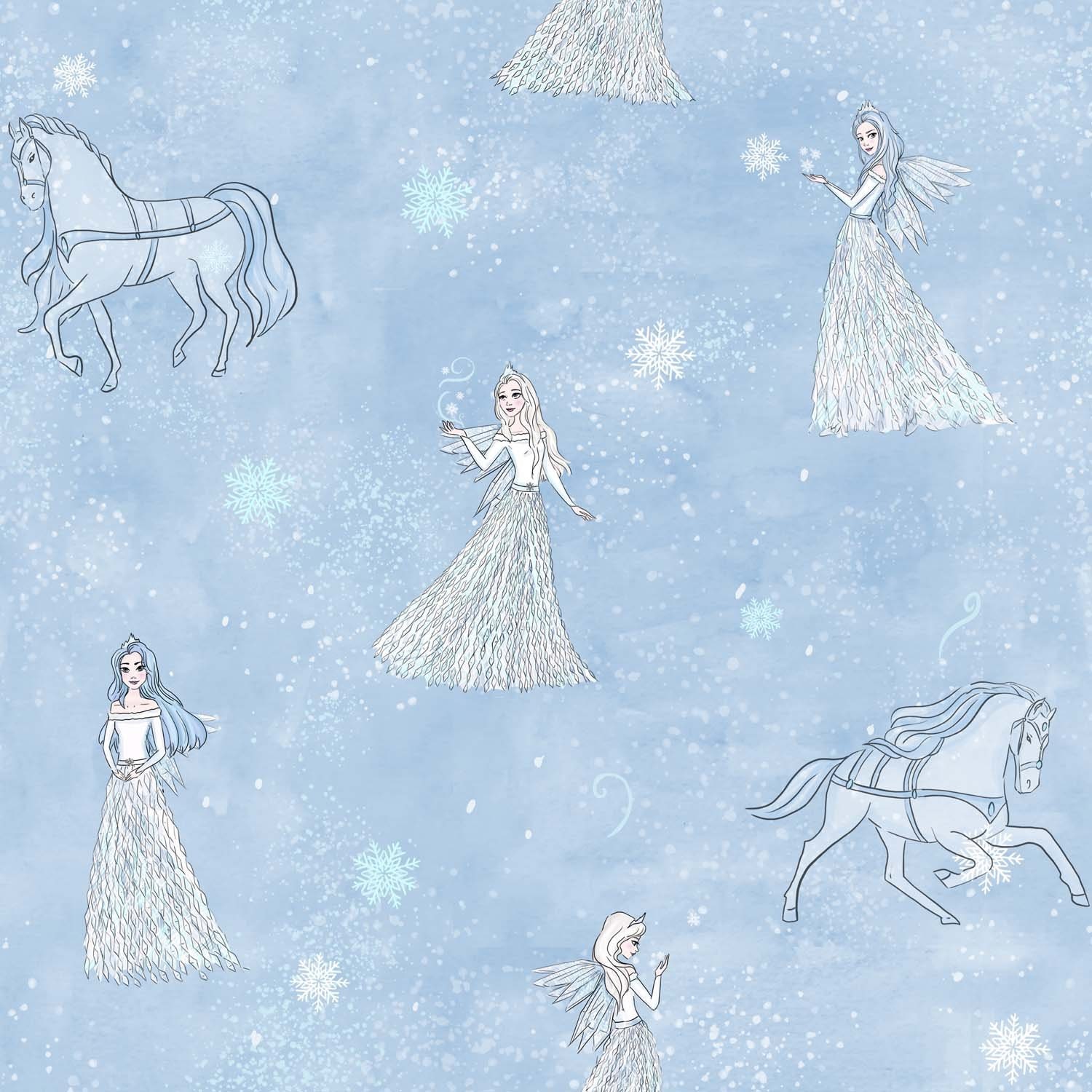 Snow Queen, Popeline, Baumwolle, hellblau, Eisprinzessin, Pferd - Katia