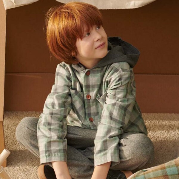 Nähe Sie dieses typische Holzfällerhemd mit diesem neuen Schottenkaromuster in den Farben Grün und Grau. Ein warmer und weicher Stoff für Herbst- und Winterkleidung. Er besteht aus recyceltem Material und trägt daher das Siegel Global Recycled Standard.