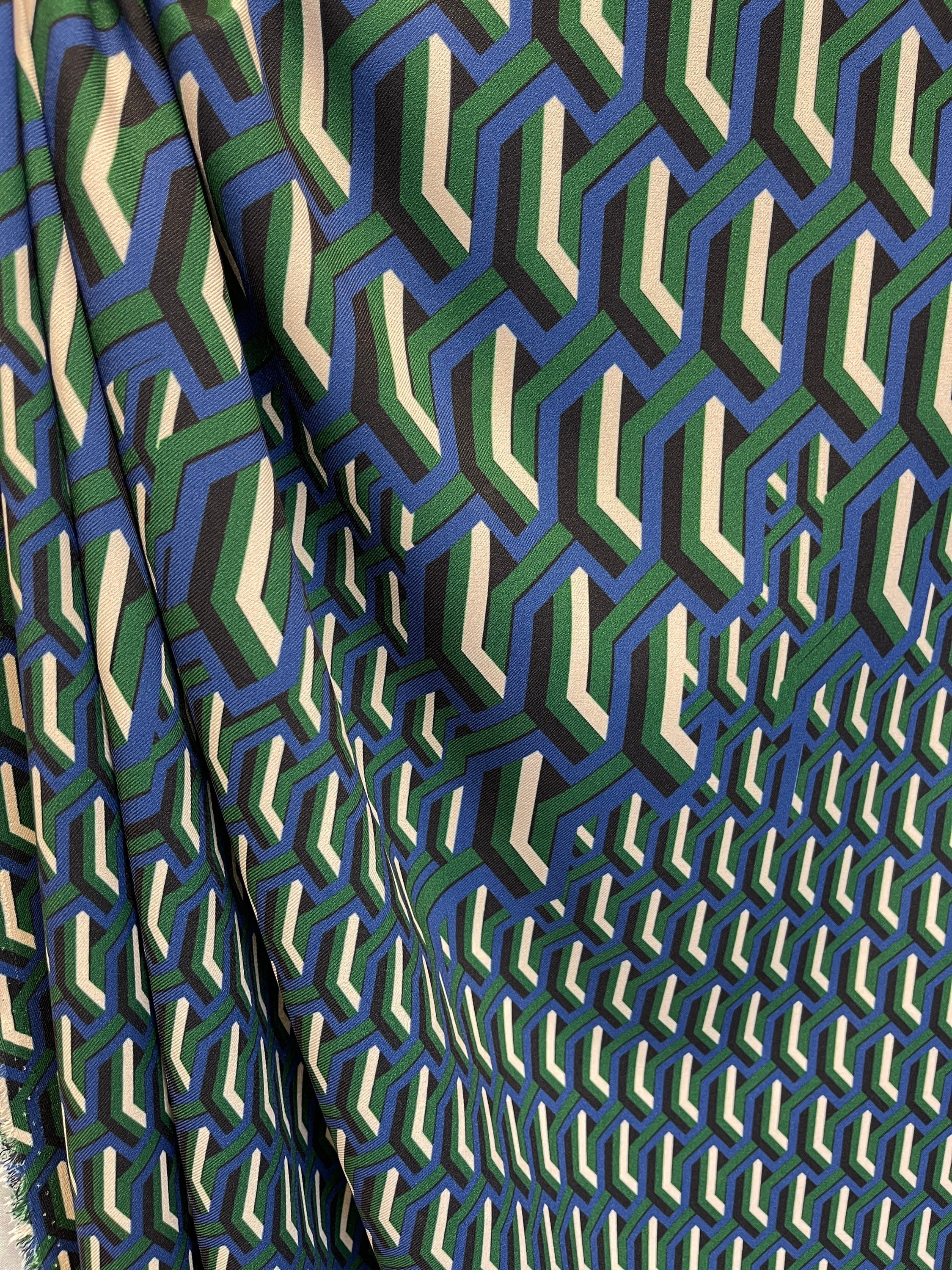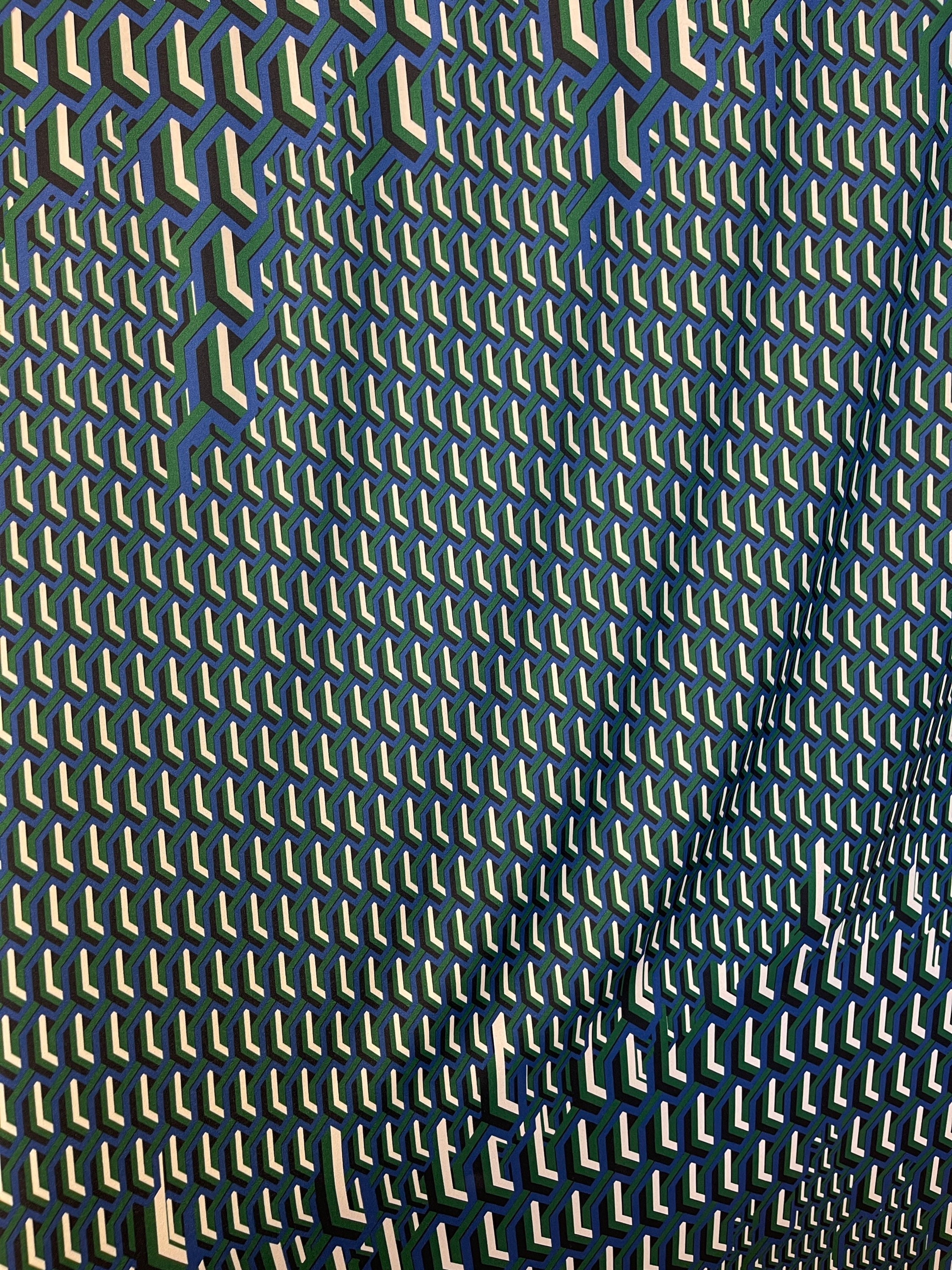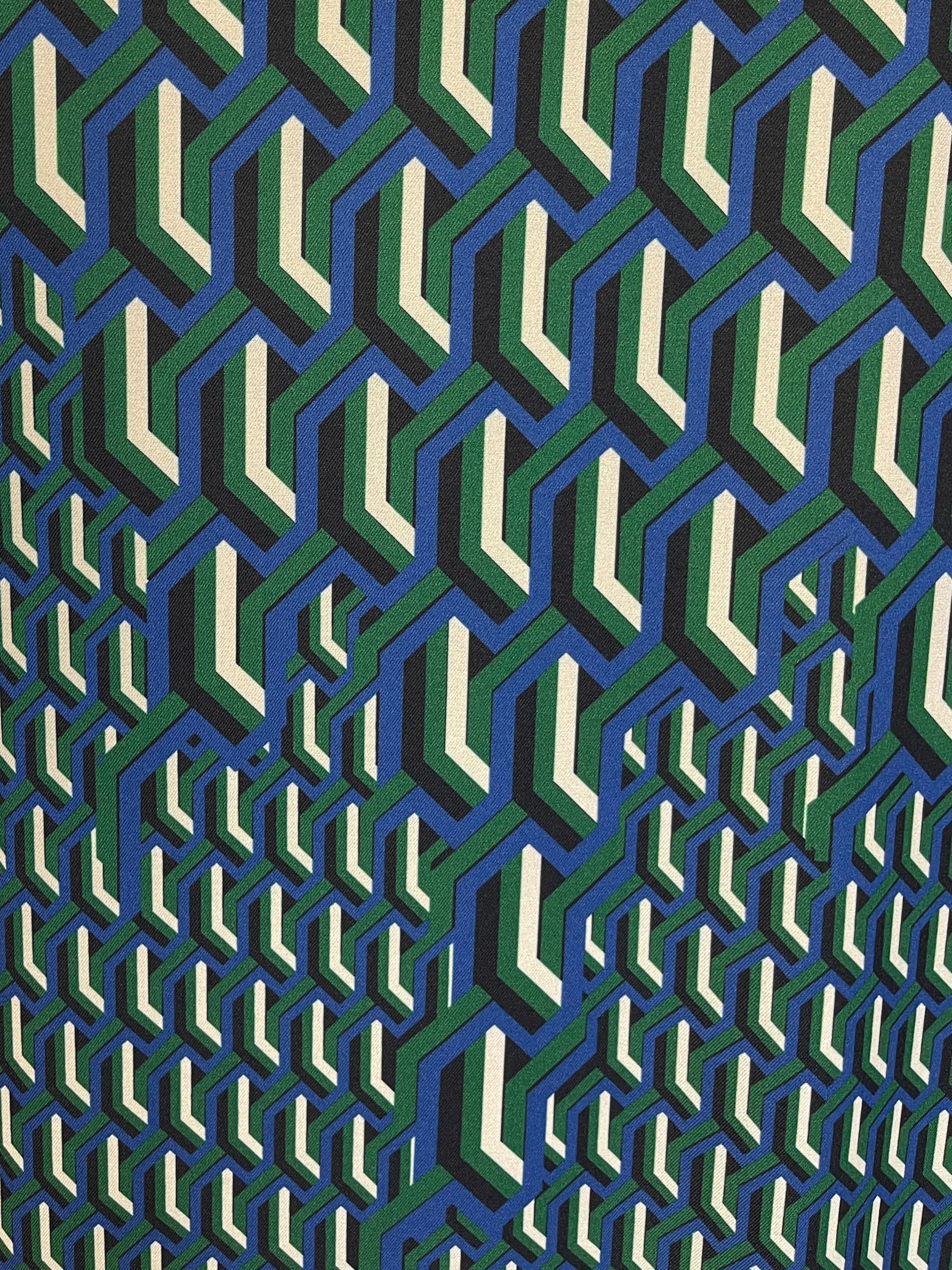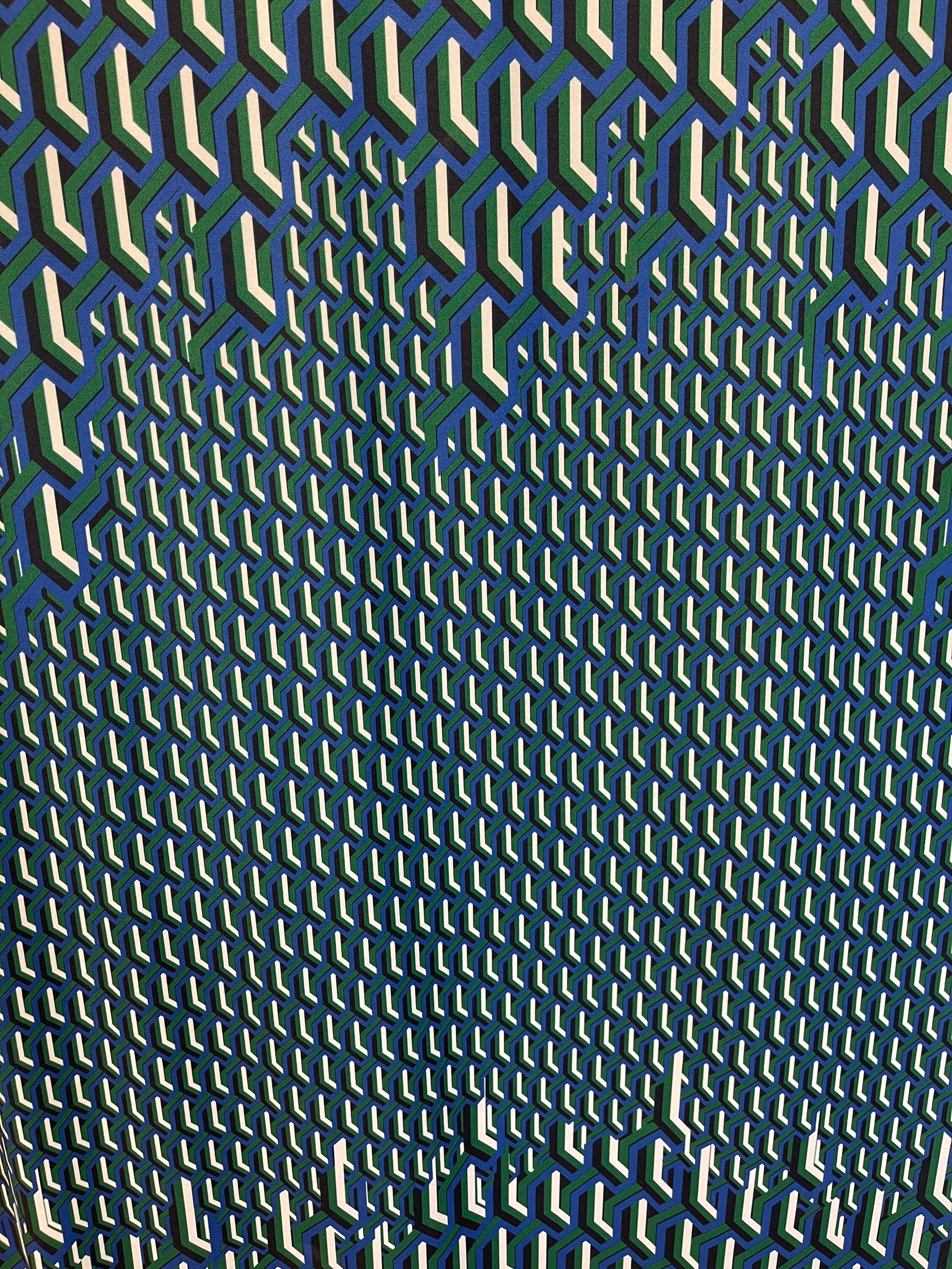 Das Muster ist geometrisch im Retrostil. Super fließender, leichter Stoff mit tollem Fall.