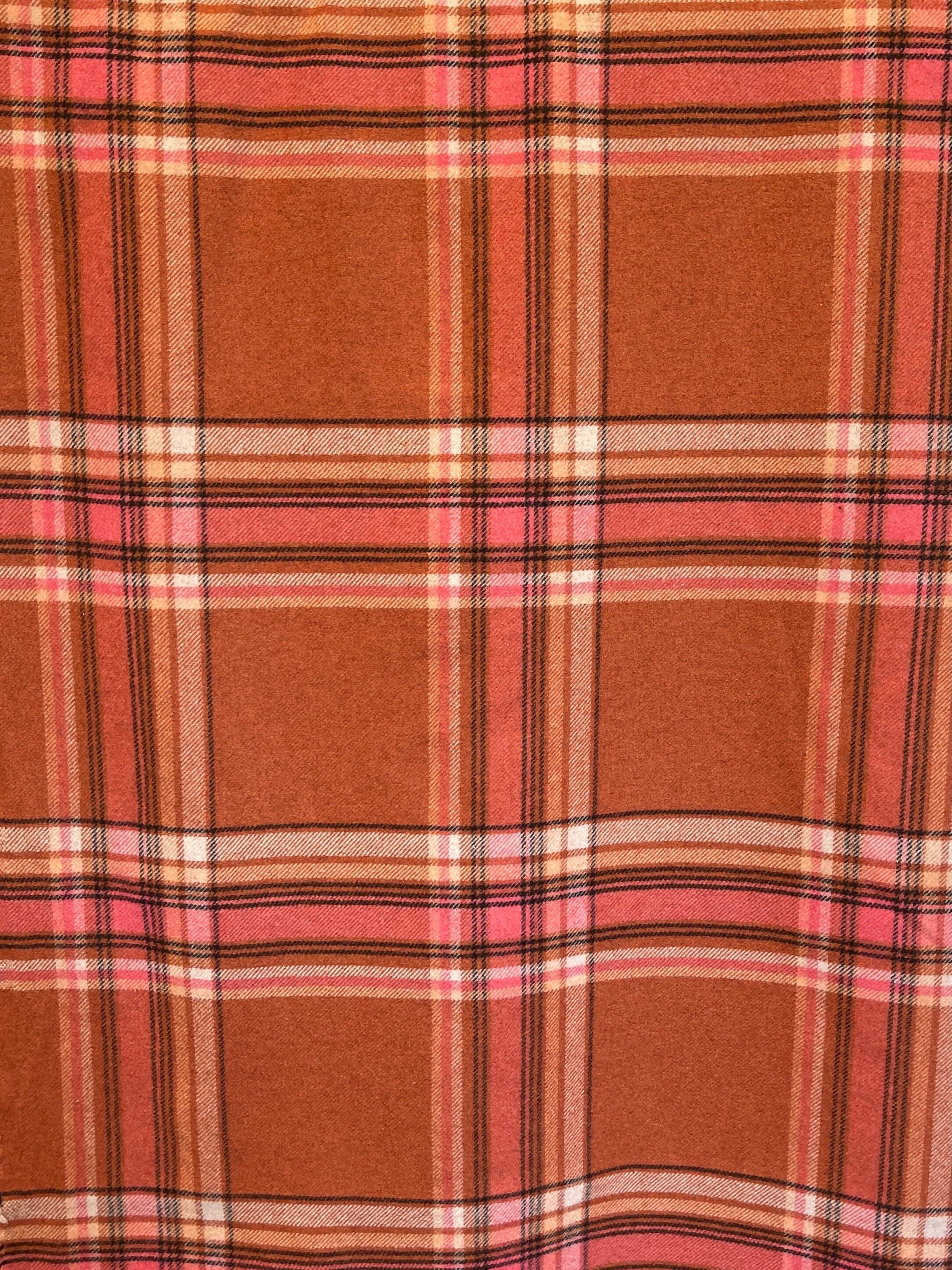Fester Plaidstoff, in schön gedeckten Farben, dennoch fröhlich. Daraus wird eine kuschelige Tagesdecke für die Wintermonate.