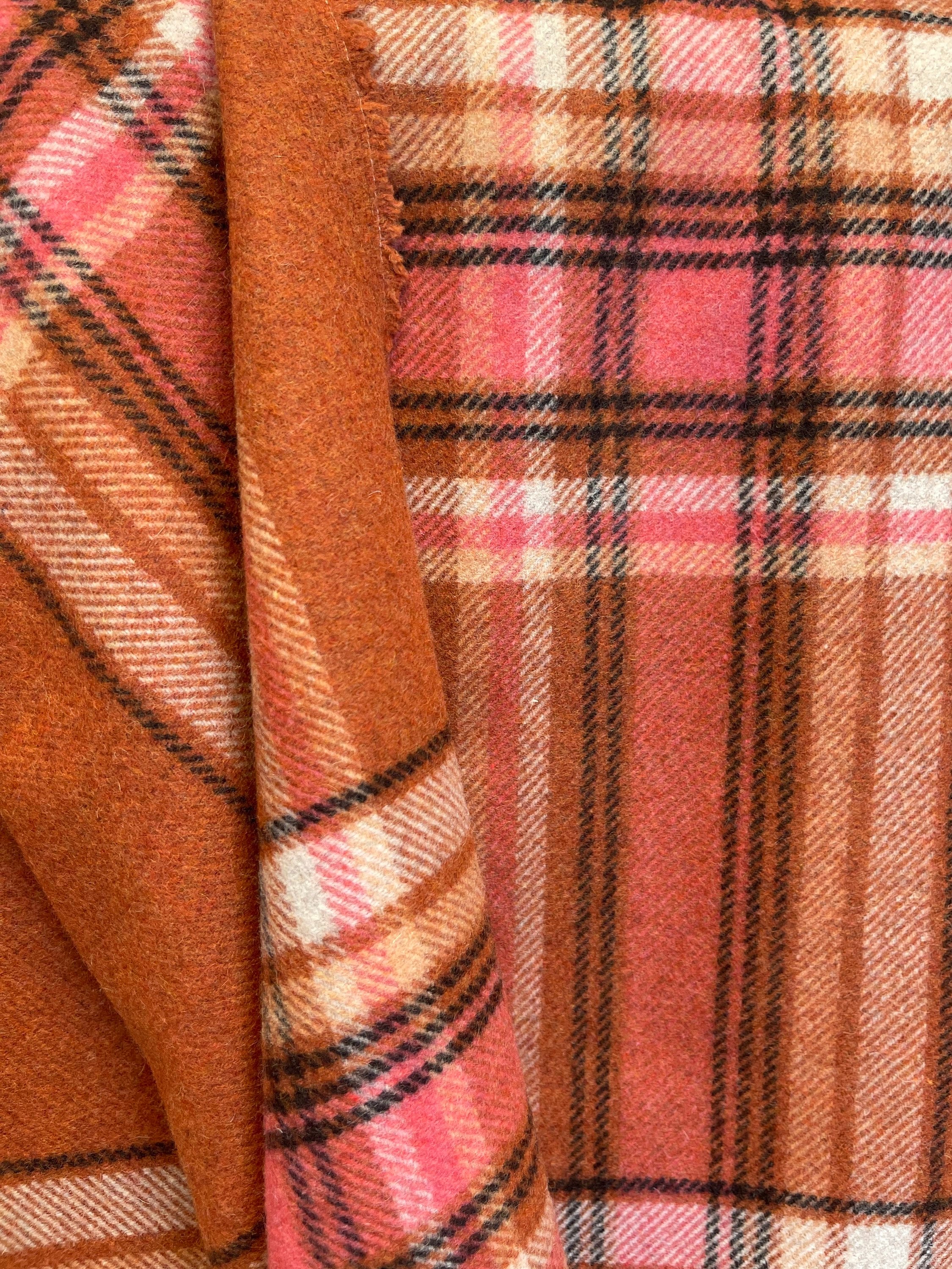 Der Wollstoff in den angesagten Farben orange und pink lässt sich schön zu einem Mantel oder einer Jacke verarbeiten.