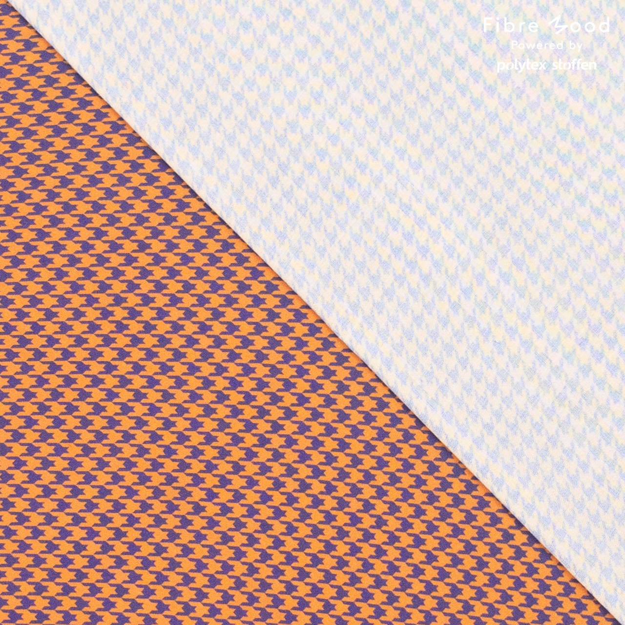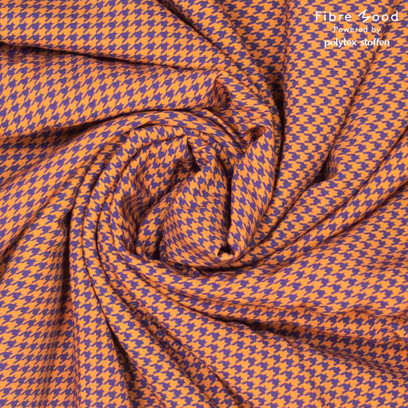 Der dünne fliesende Stoff hat ein Hahnentrittmuster in braun und blaulila.