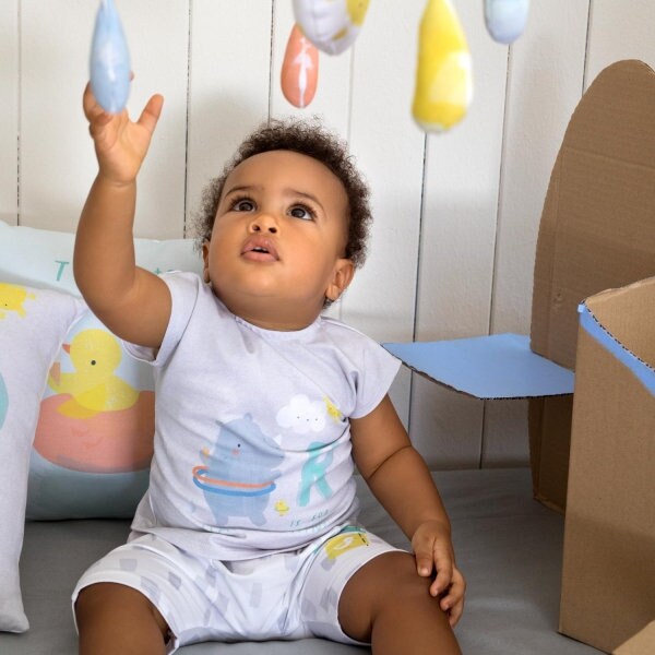 Katia Jersey Panel Rhinoceros pastel white, blue, yellow, green.