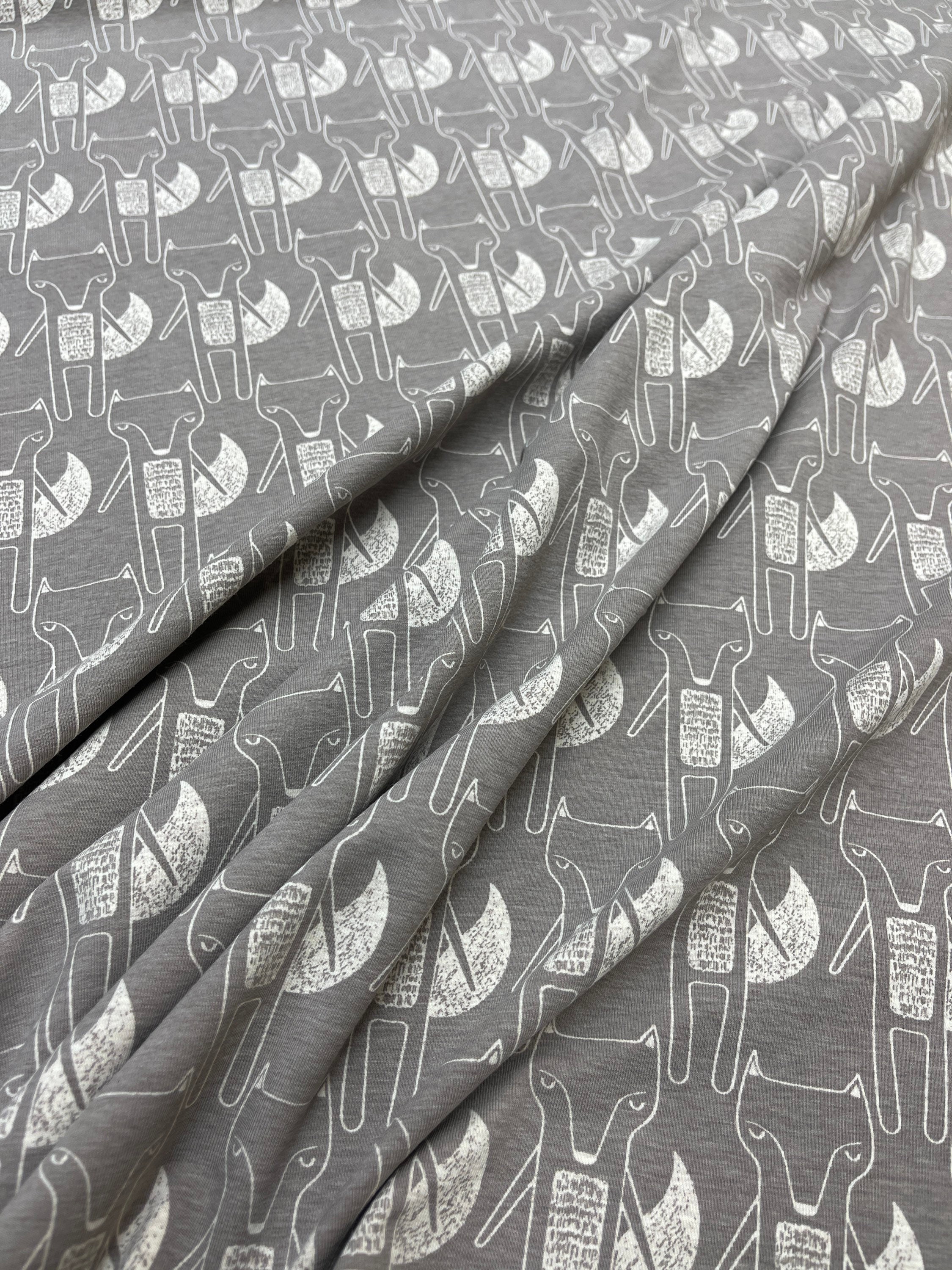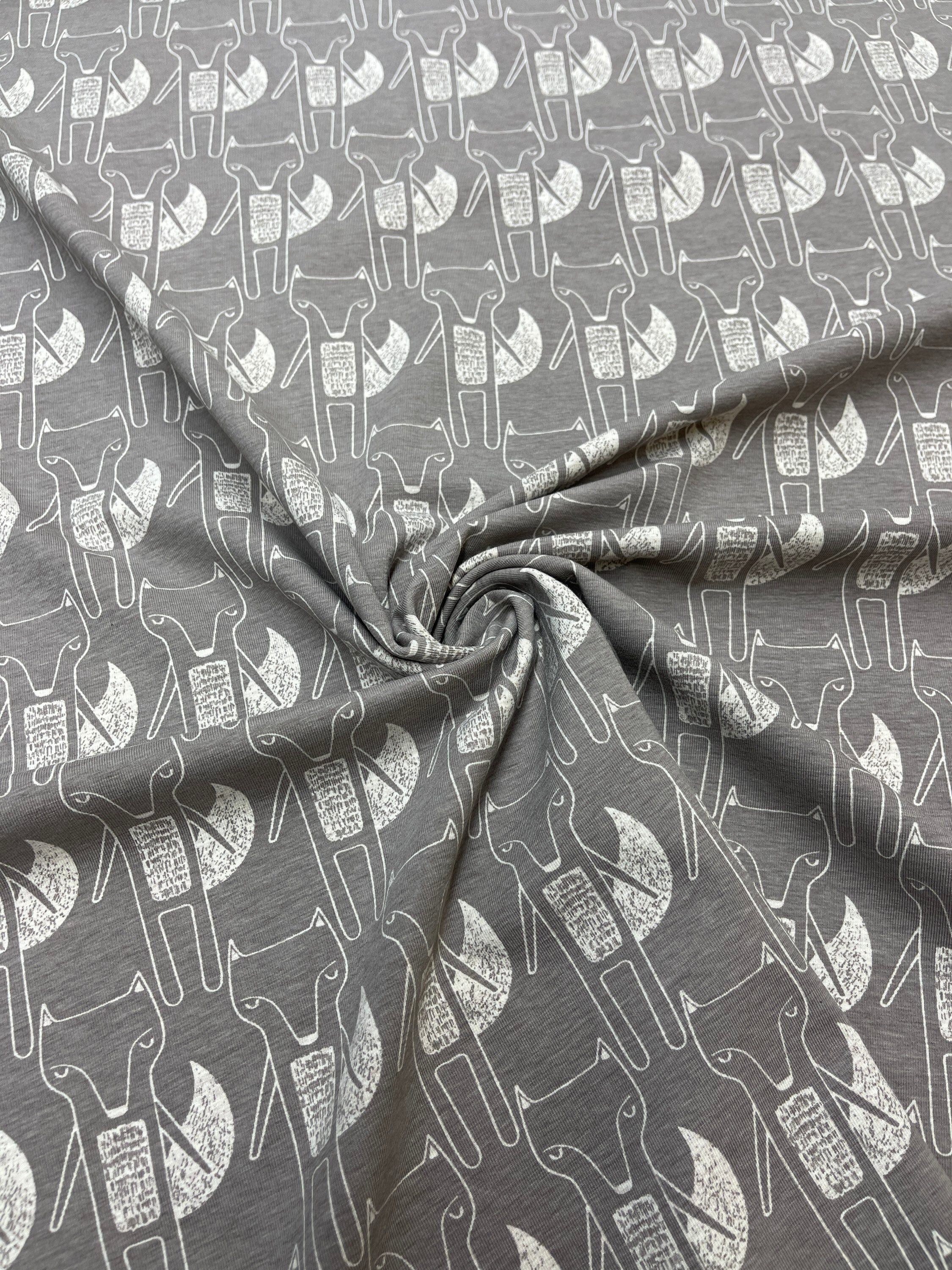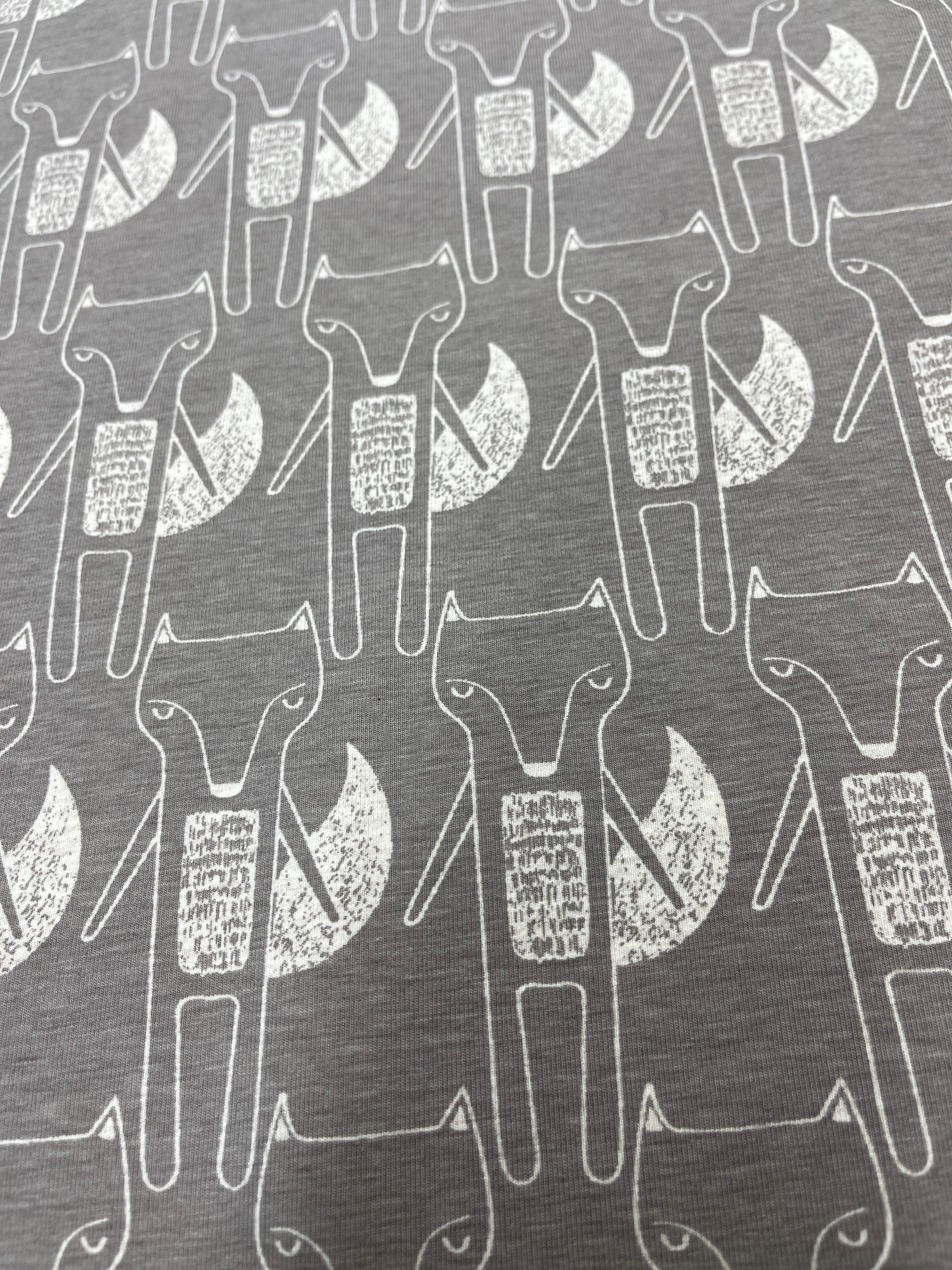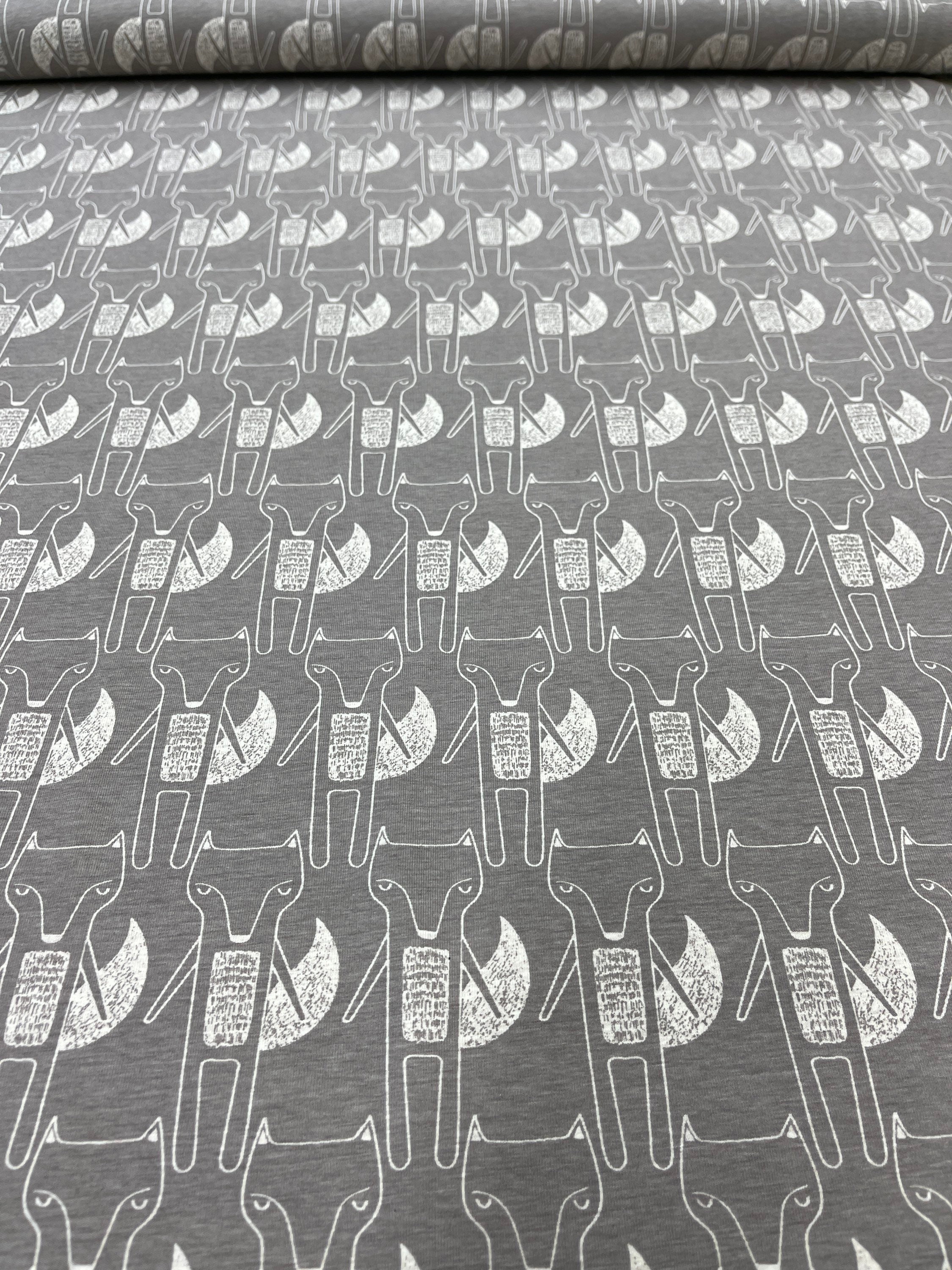 Baumwoll-Jersey in beige mit vielen Füchsen. Super zum vernähen