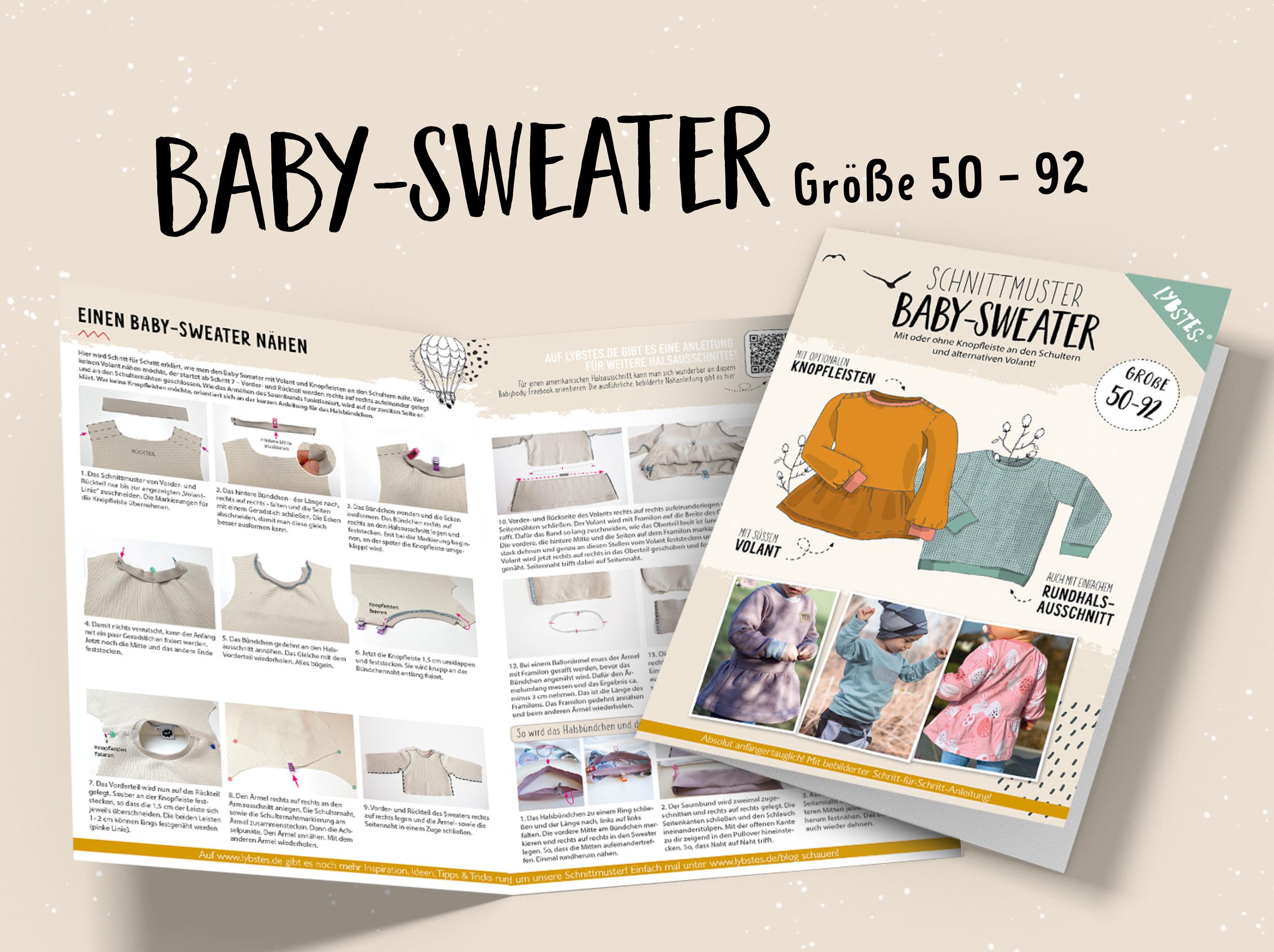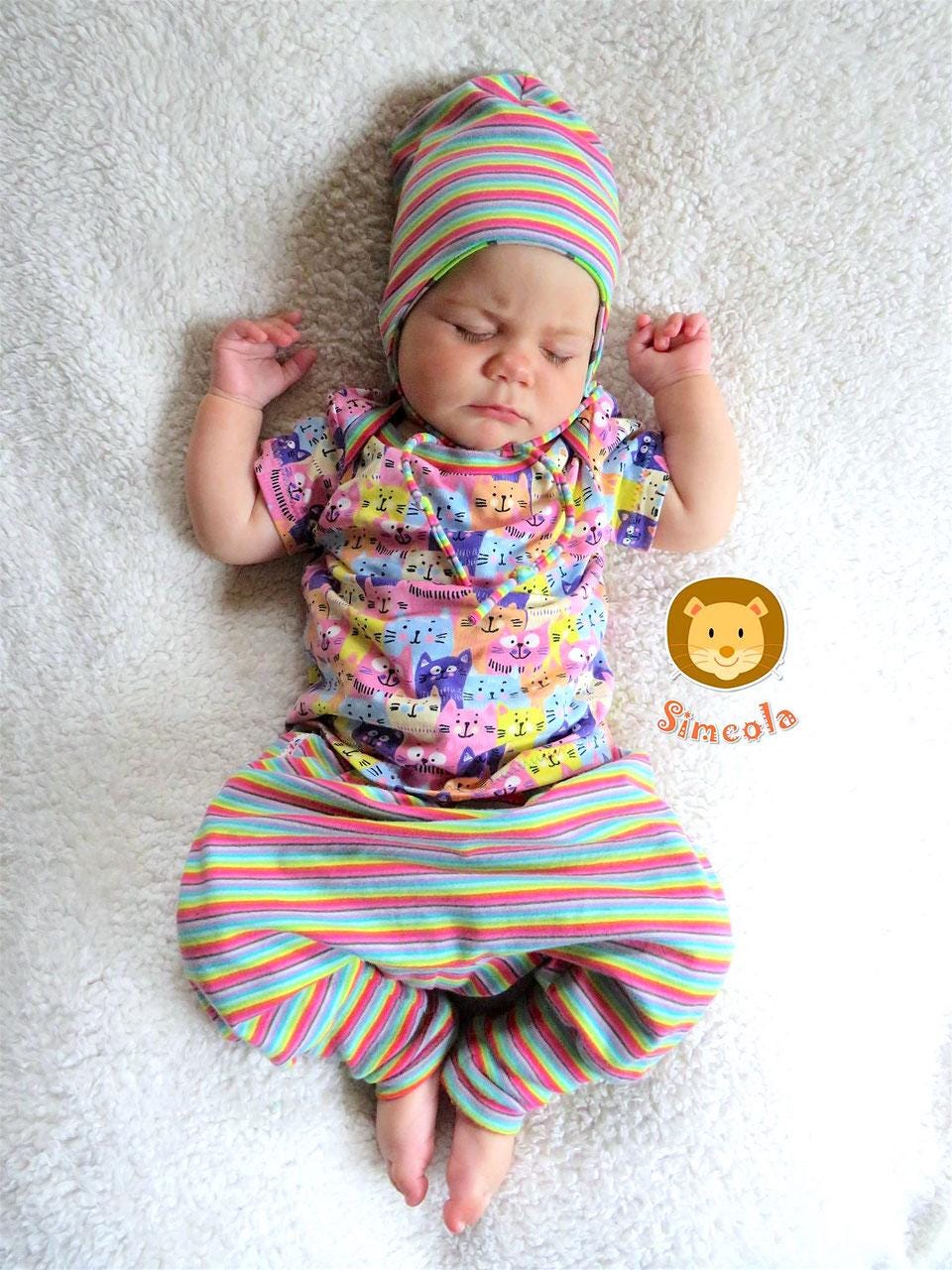 This set will get you through the first year wonderfully. It includes five cute pieces—in sizes 50-80—to dress your little one from head to toe. Have fun sewing.