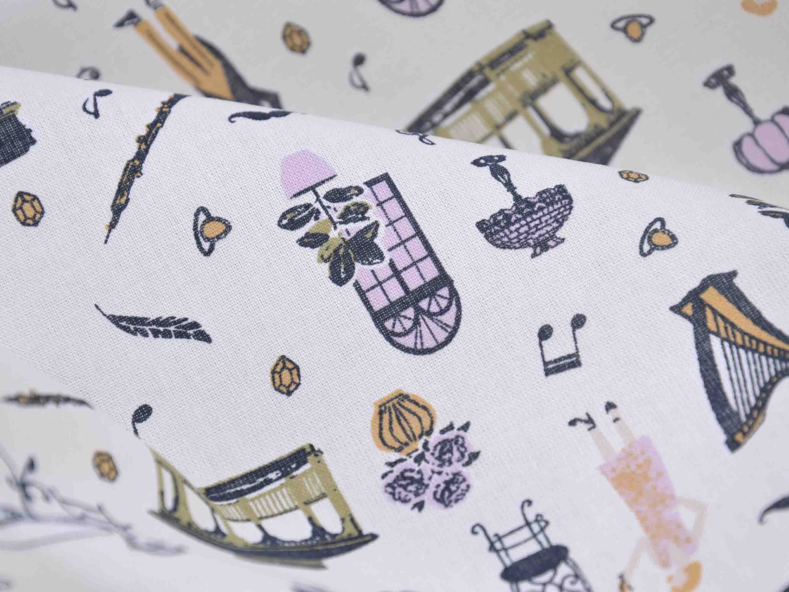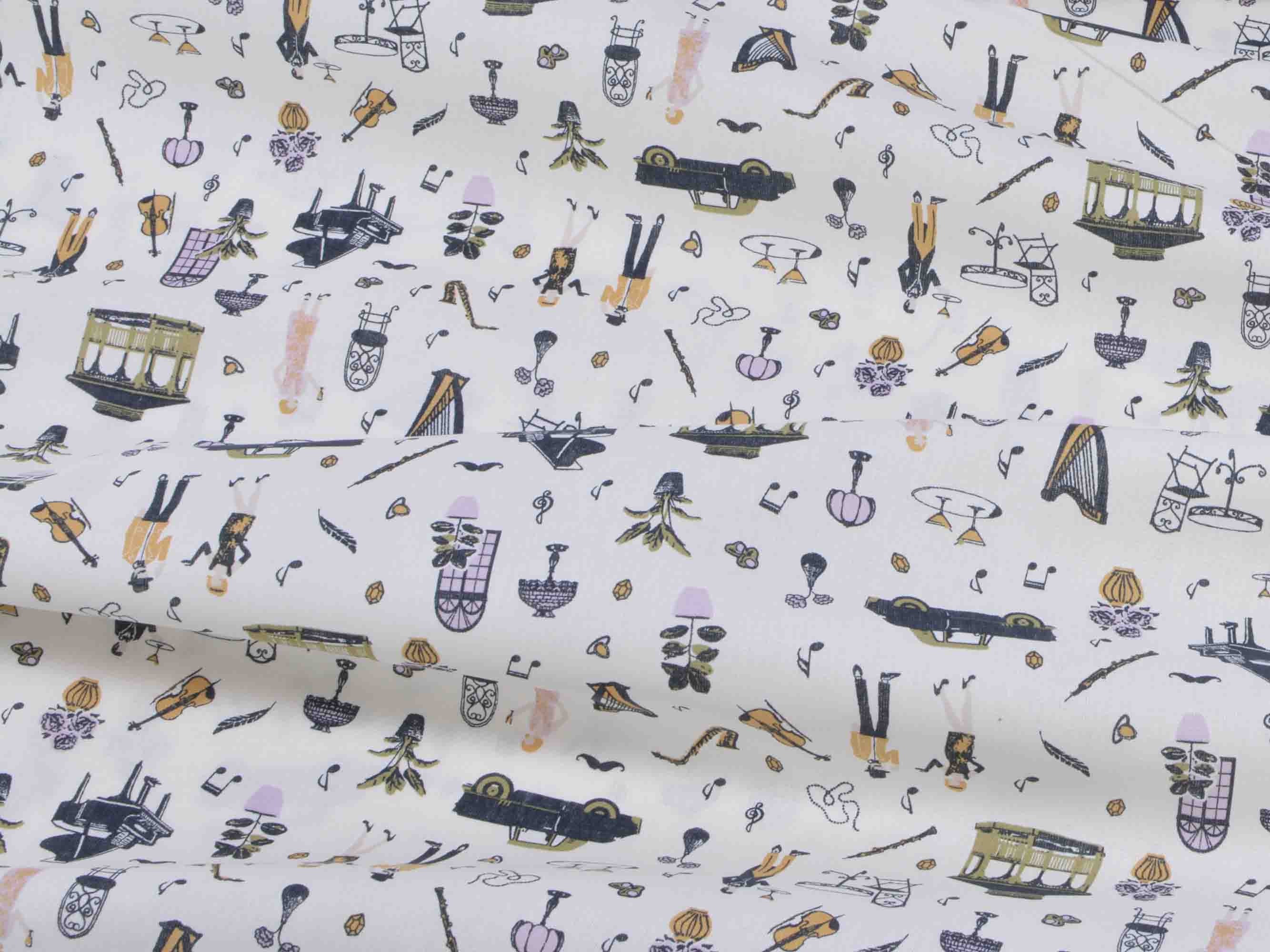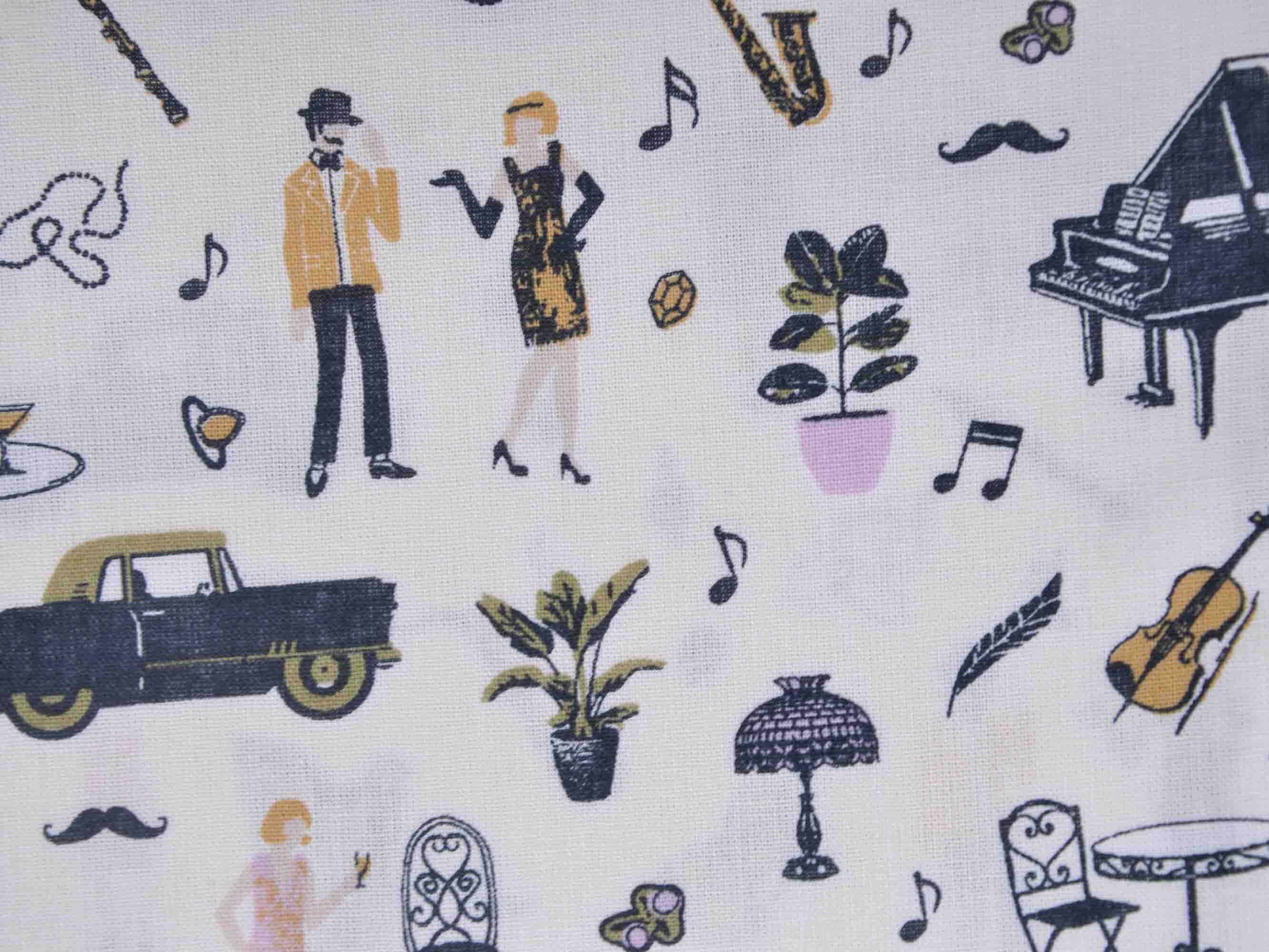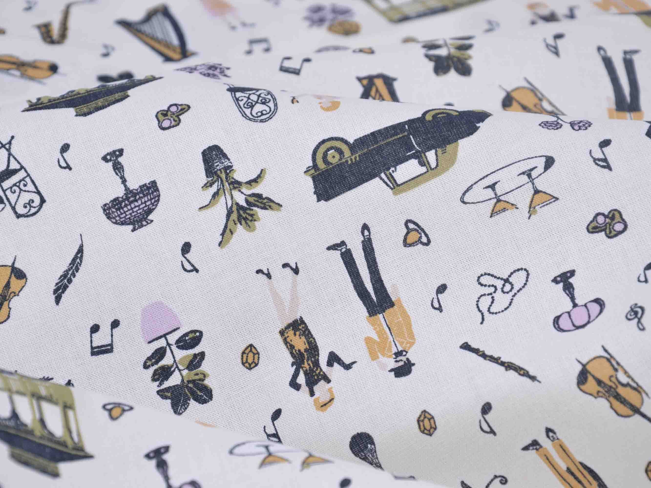 Druckstoff Salzburg von Westfalenstoffe. Hochwertiger Baumwollstoff mit Musikinstrumenten und Noten.