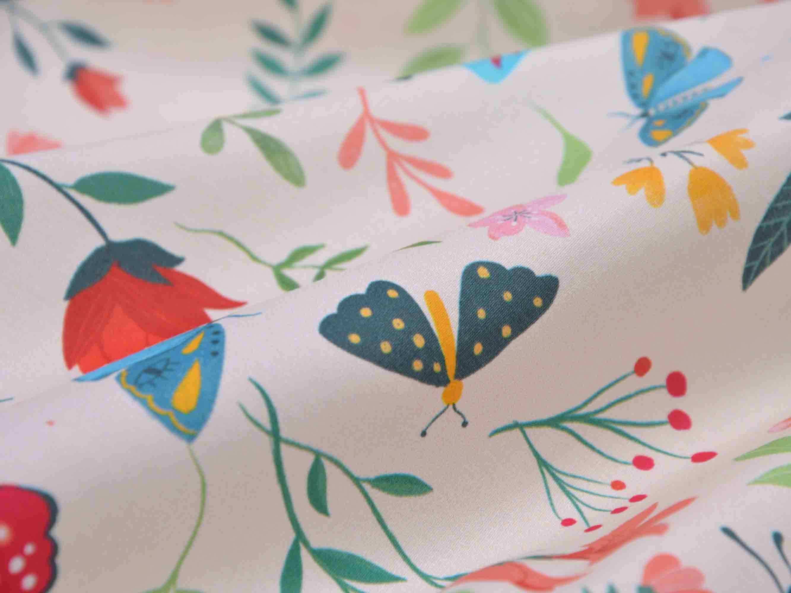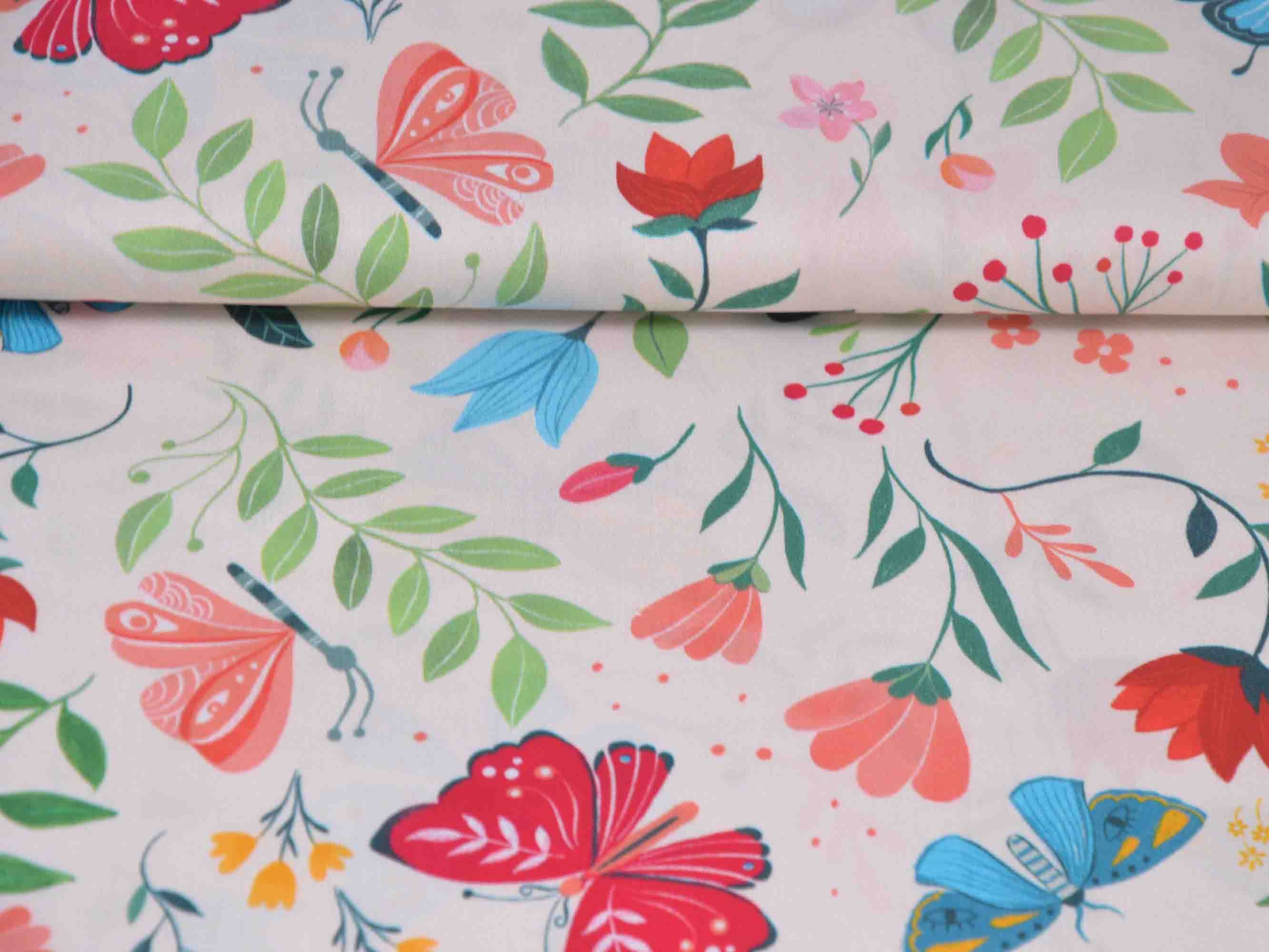Popeline aus Baumwolle mit abstrakten Blumen in aquarell. Wunderbar für Sommerkleider, Blusen oder zum nähen von Kissen.