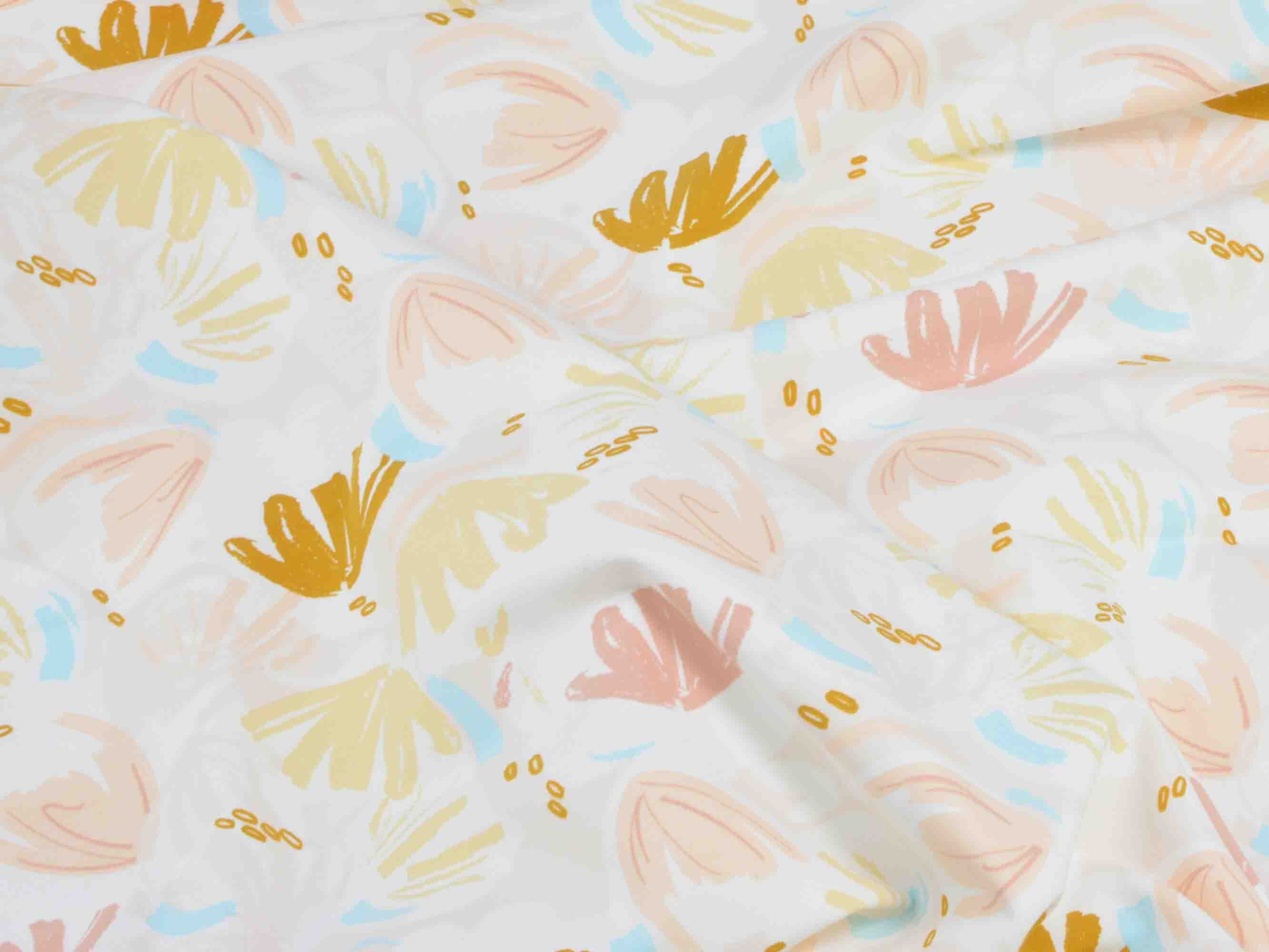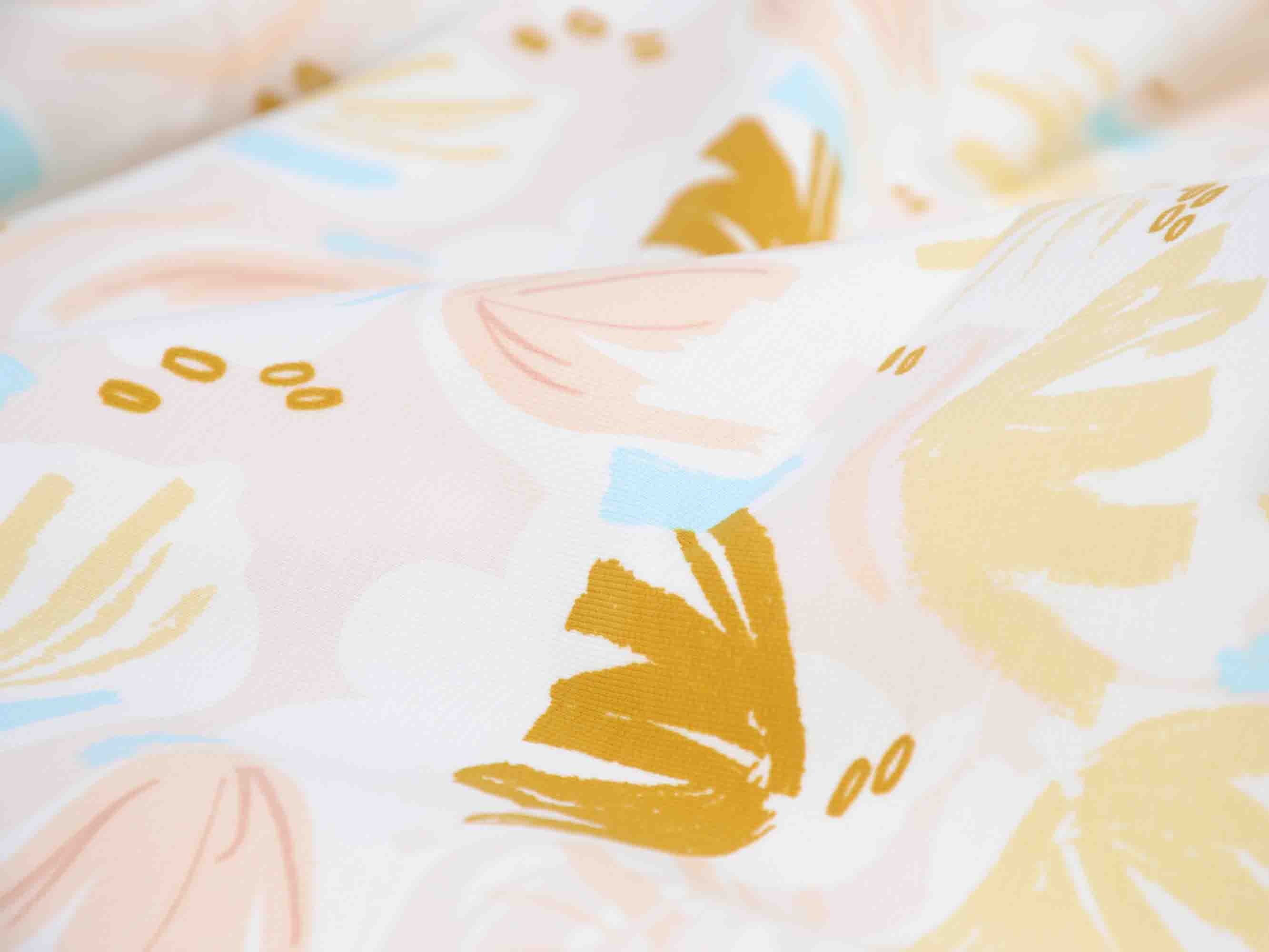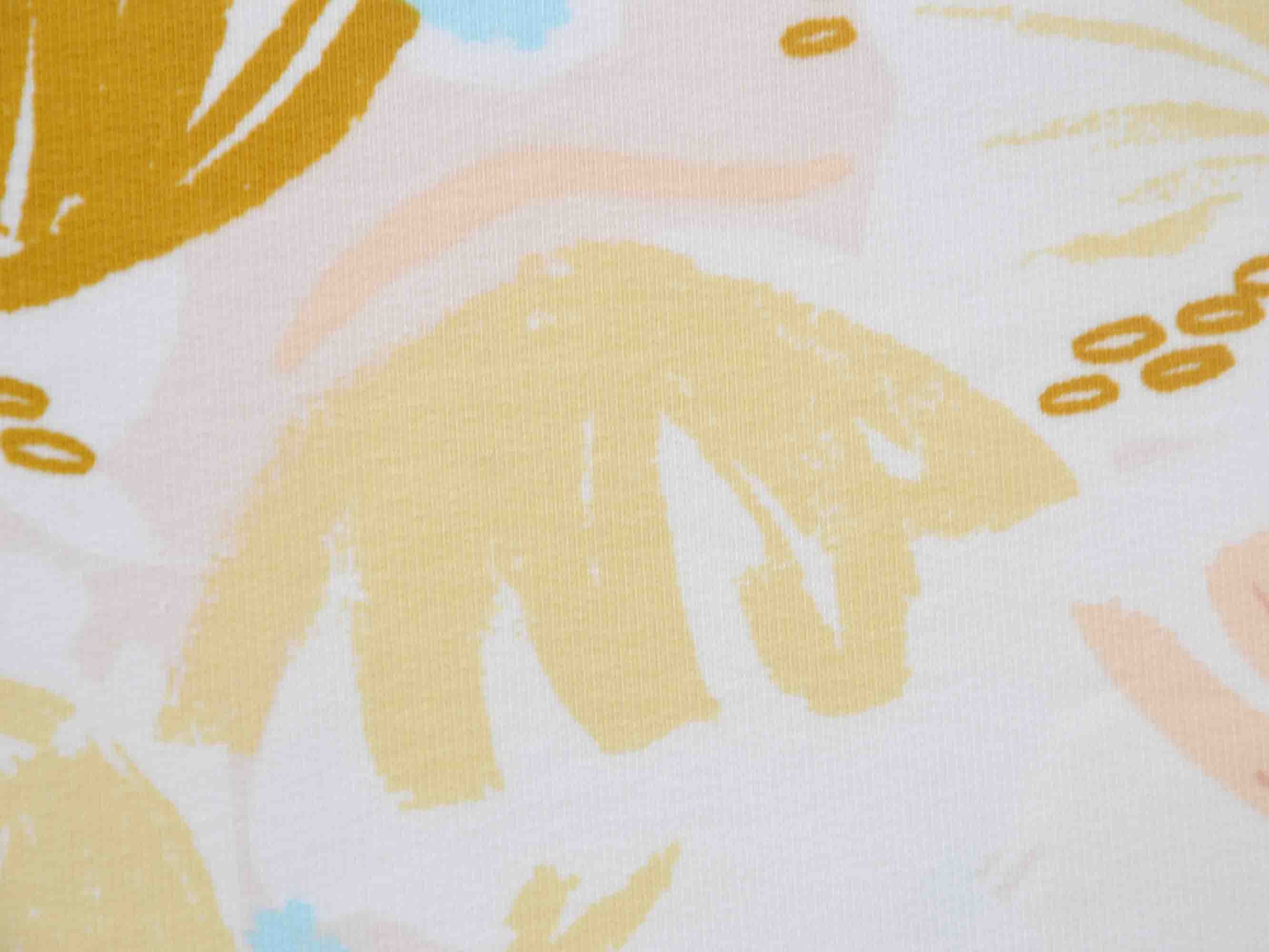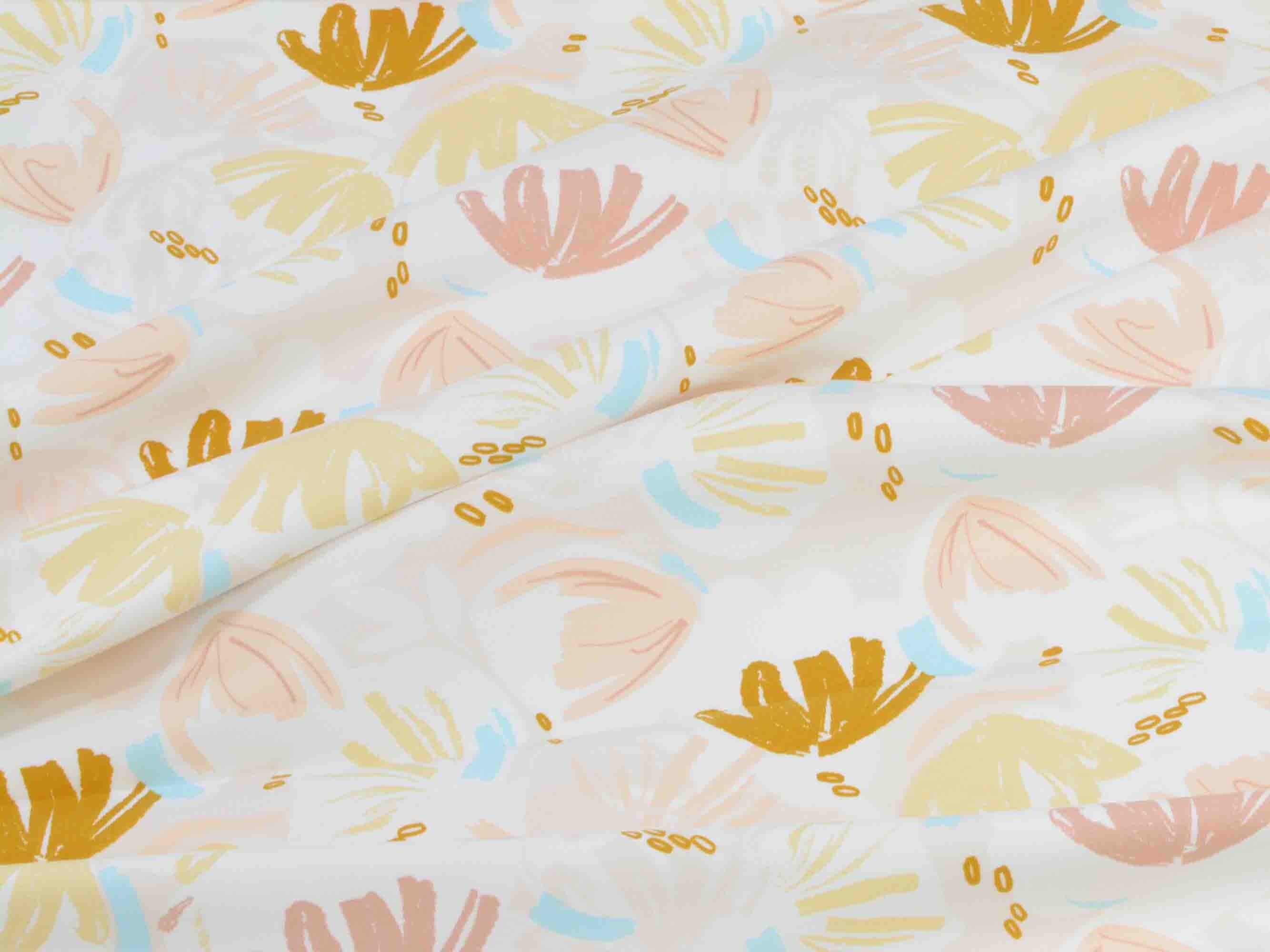 Sweatstoff mit Blumen. Die Innenseite ist weiß. Schöner leichter Sweat für den Übergang.