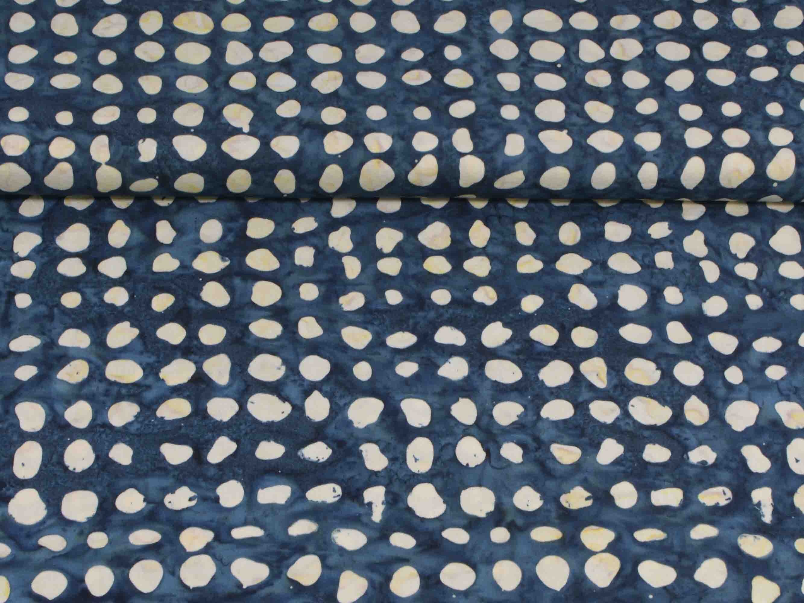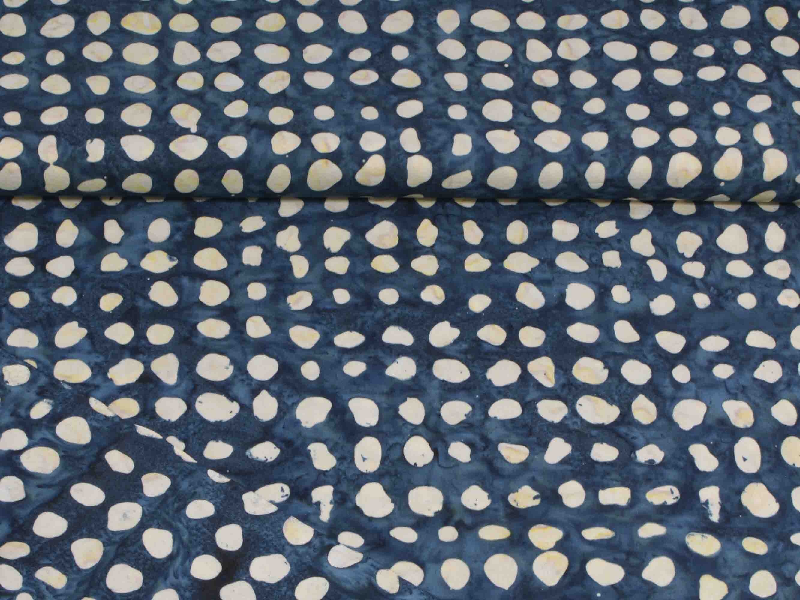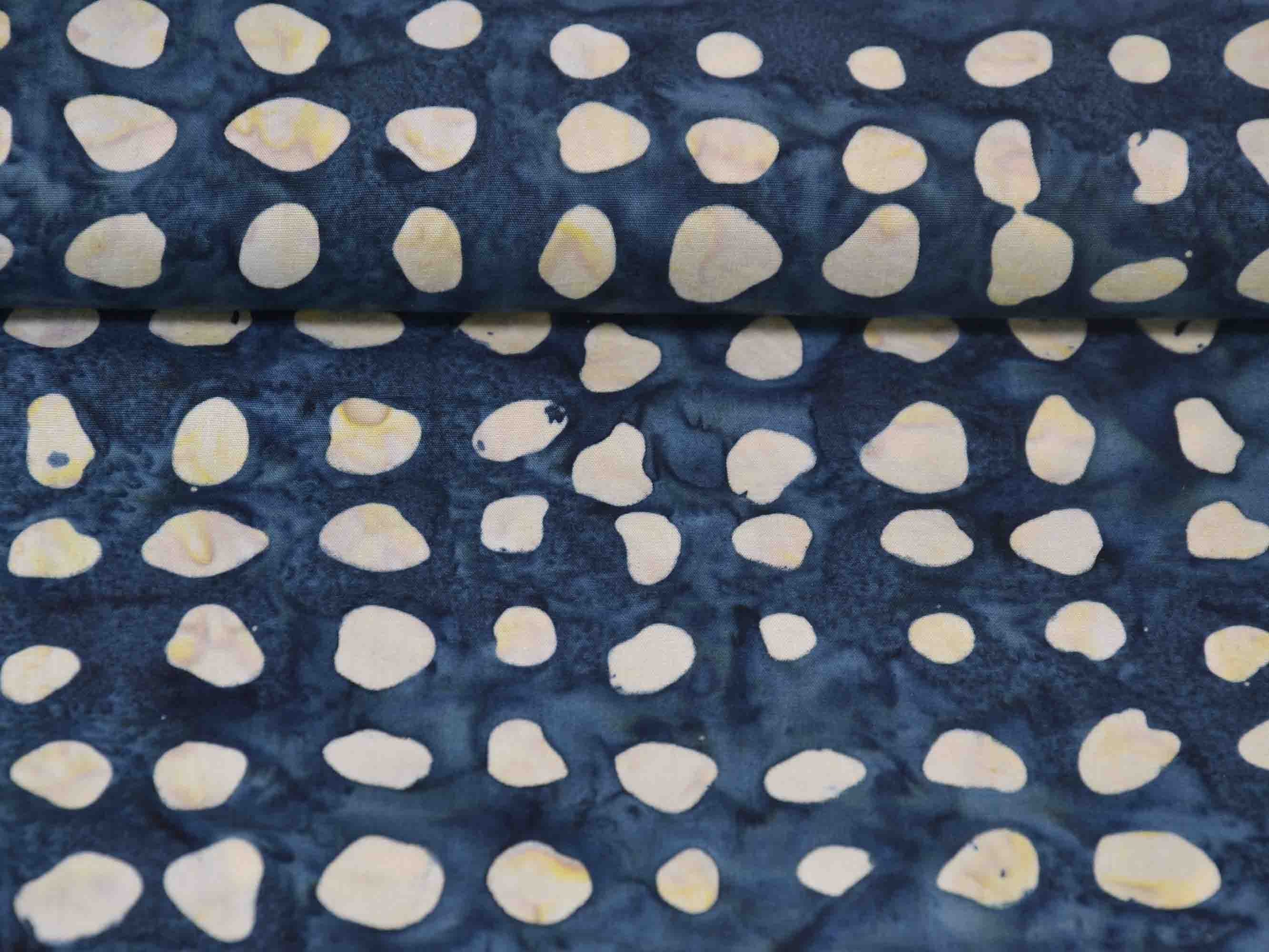 Baumwollstoff Batik blau mit beigen Punkten darauf. Der perfekte Kombistoff Batik mit Blumen: