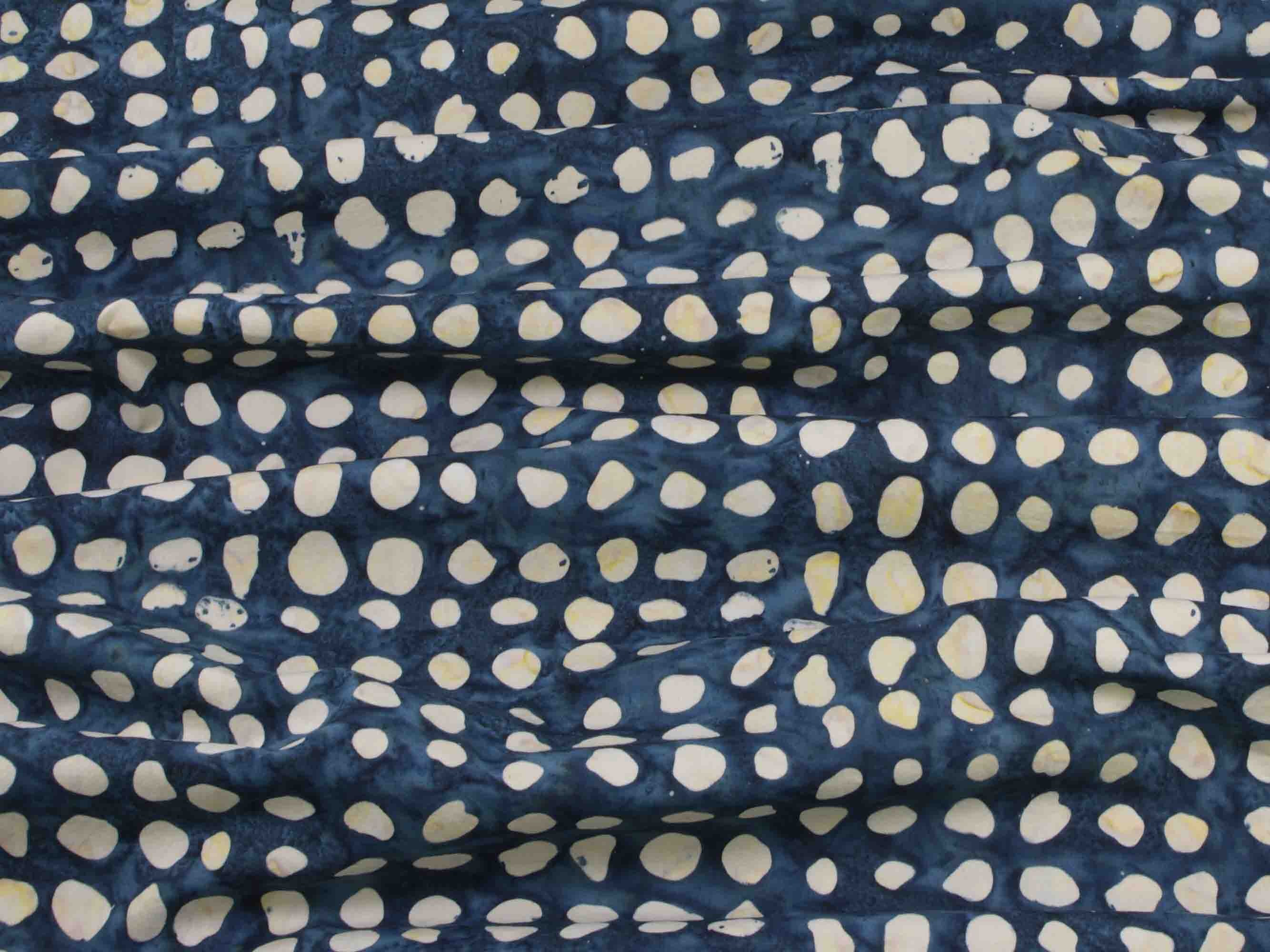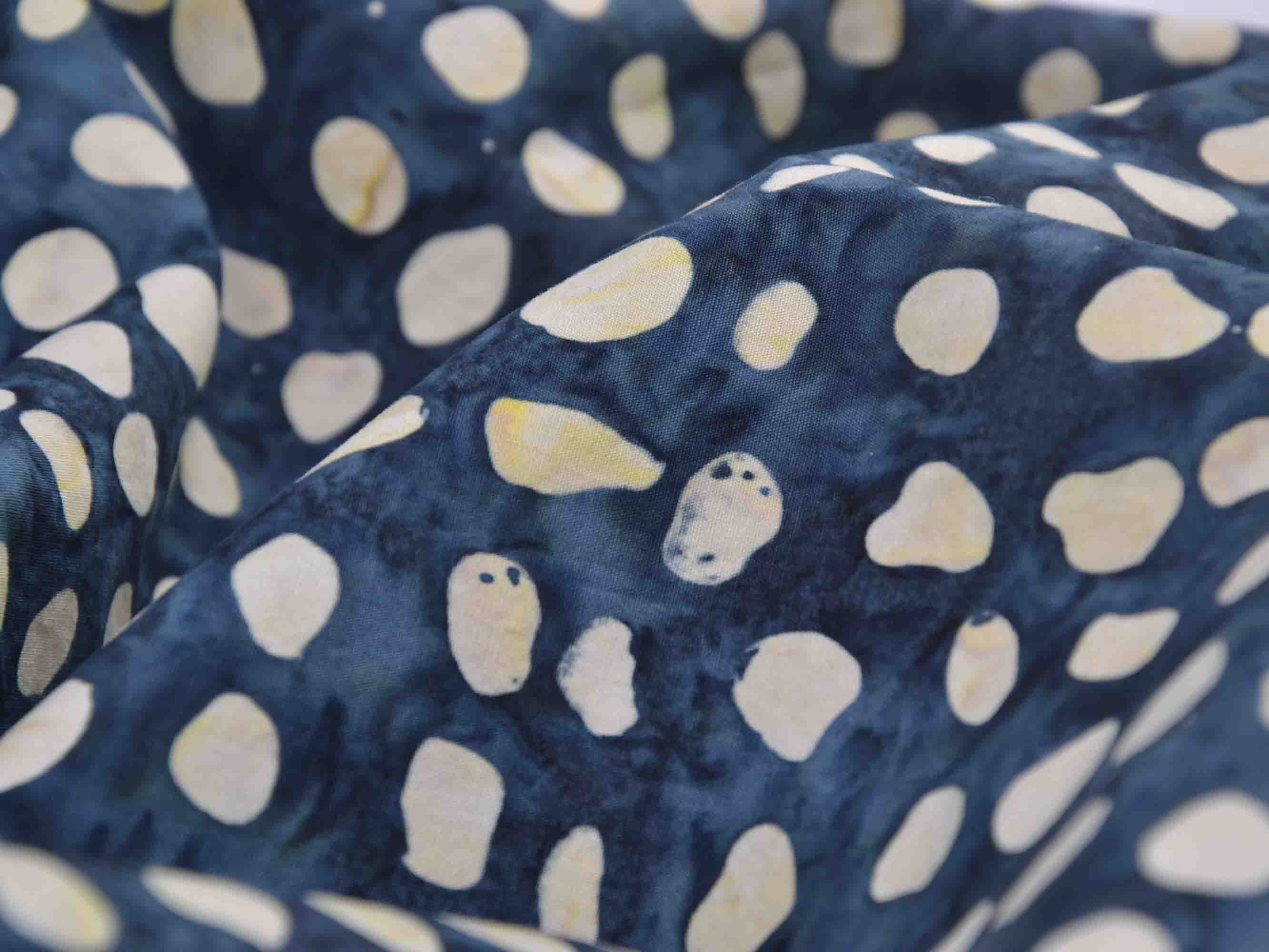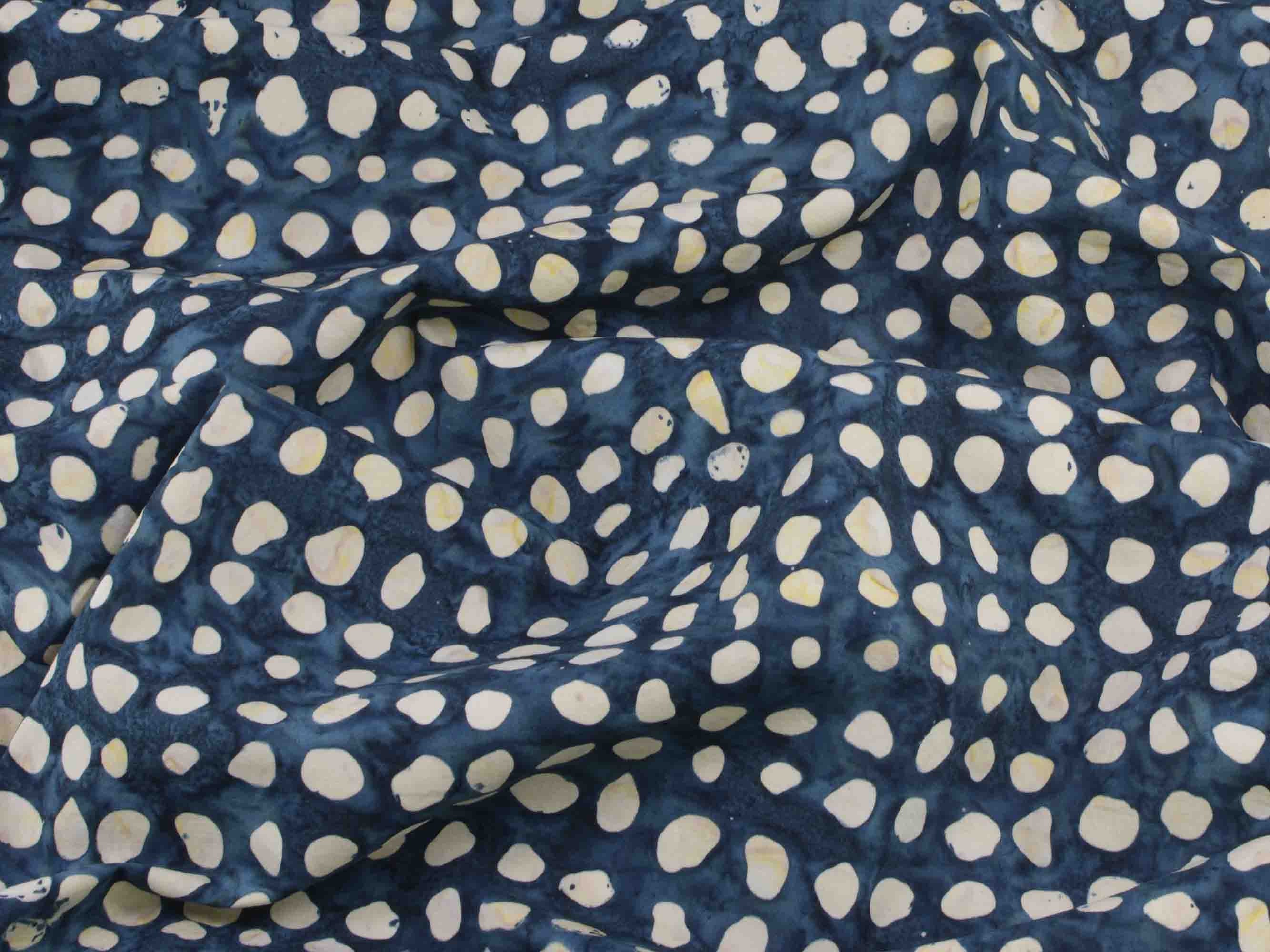Baumwollstoff Batik blau mit beigen Punkten darauf. Der perfekte Kombistoff Batik mit Blumen: