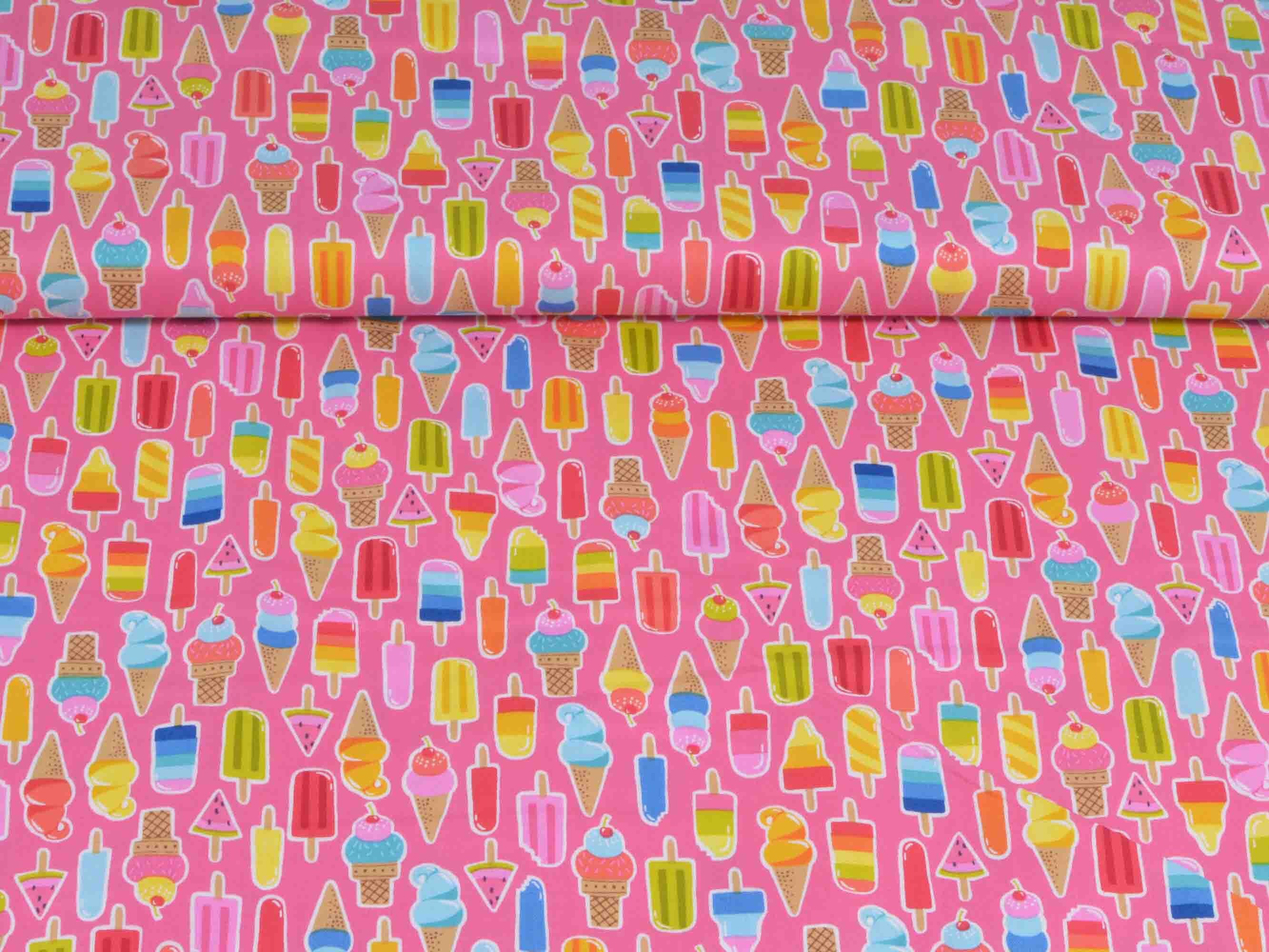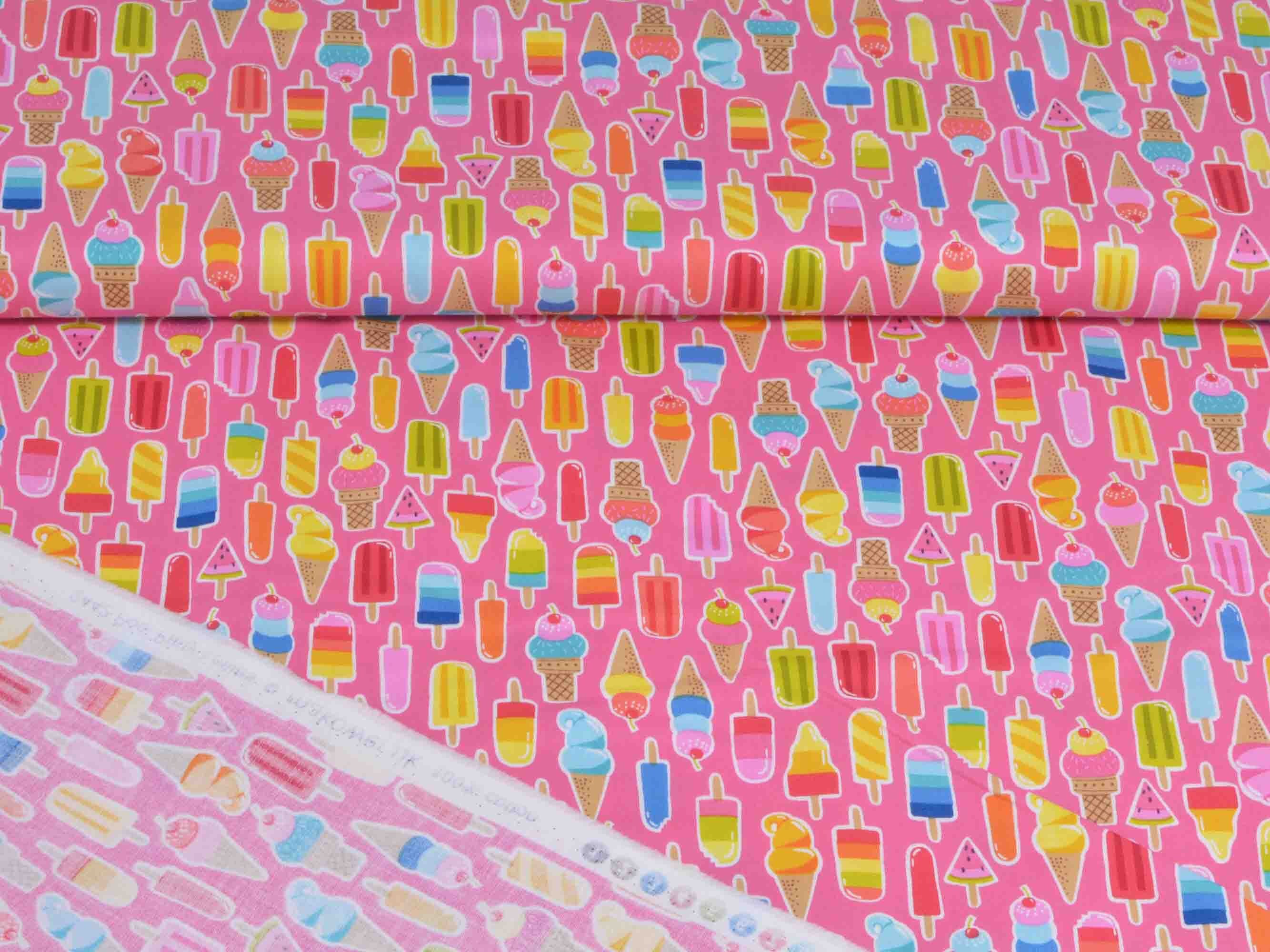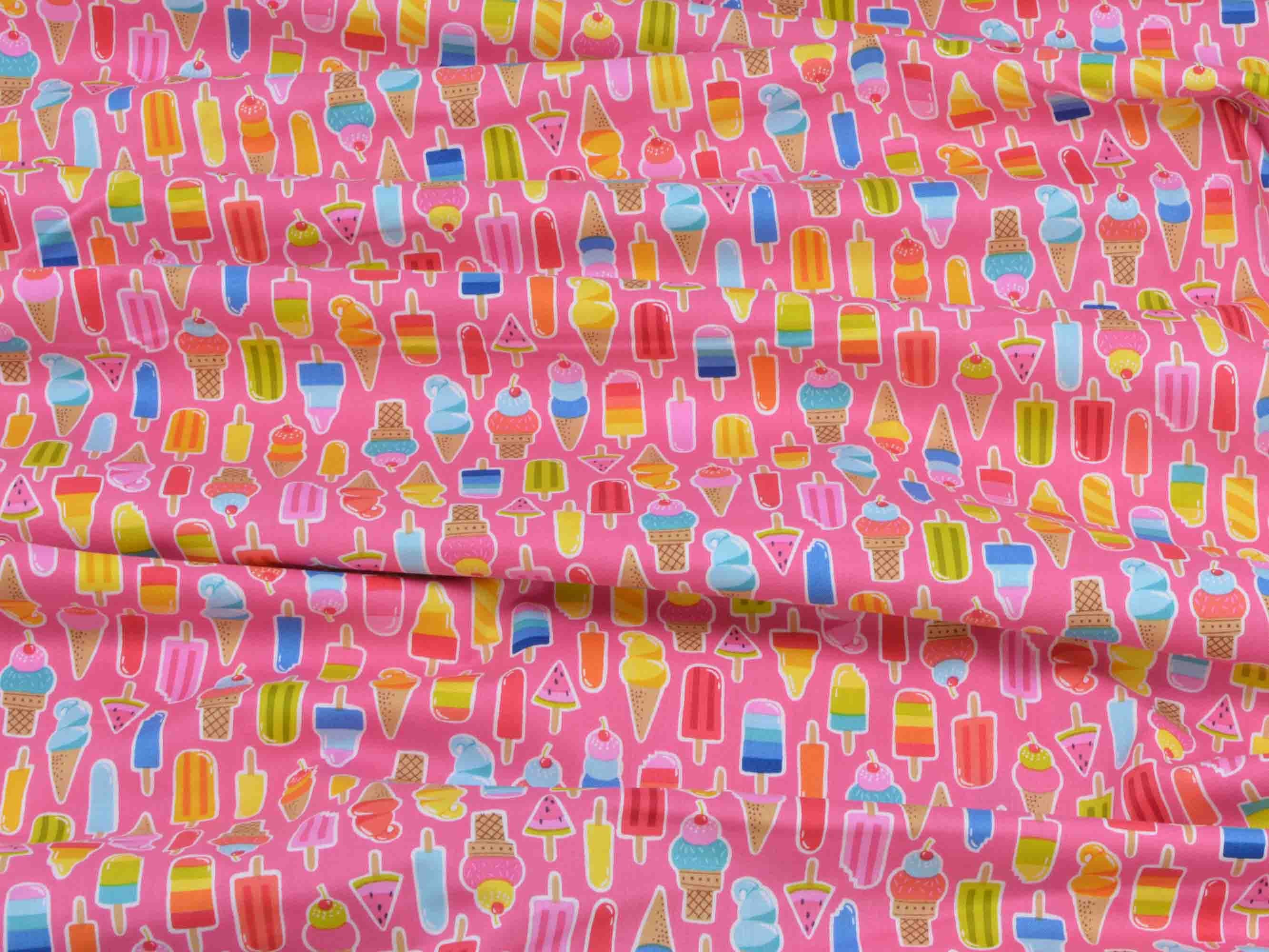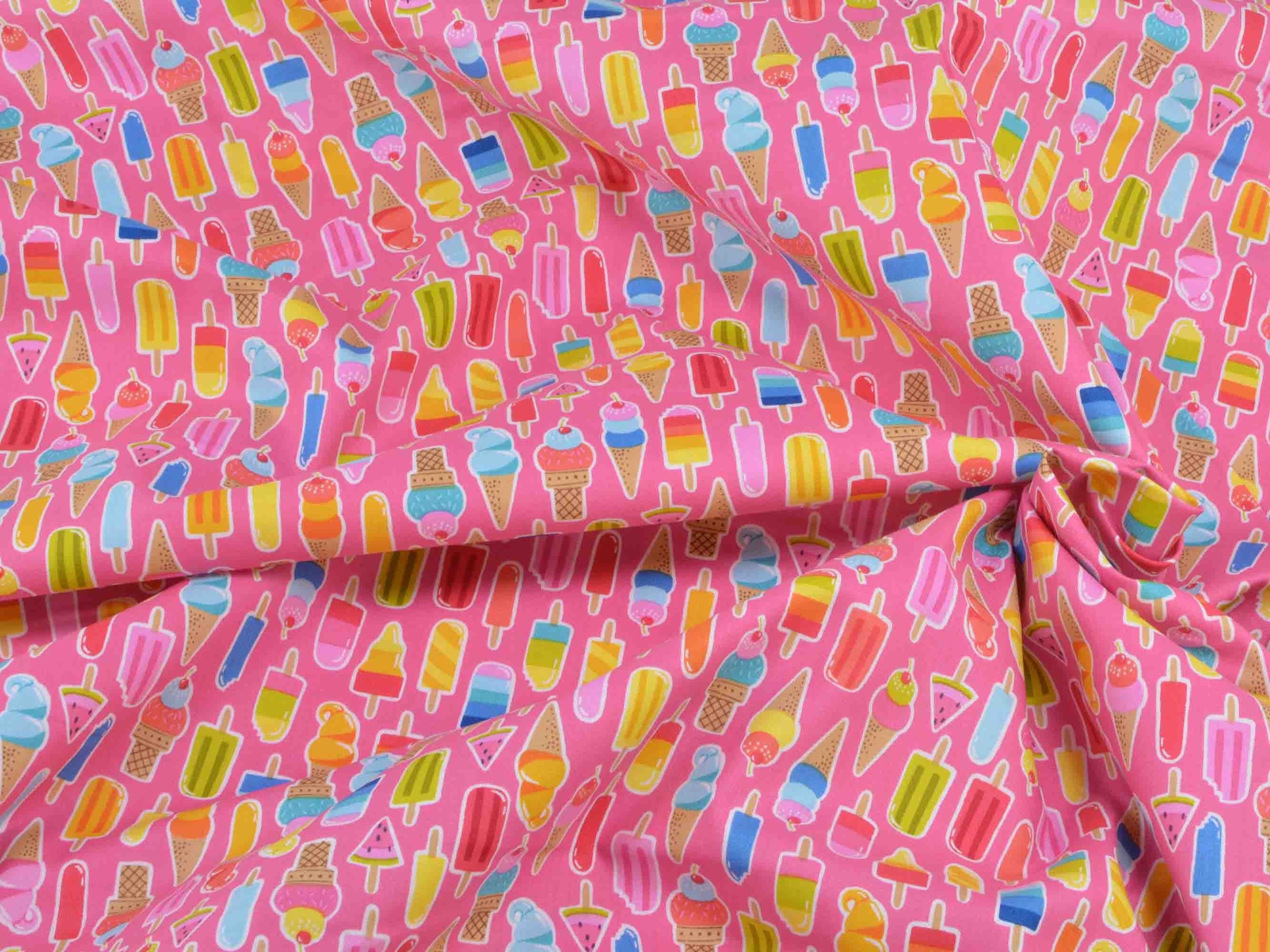 Baumwollstoff mit kleinen Eis / Lollie Icons. Aus der Kollektion "Pool Party" von Makower. Passt wunderbar zu diesem Sommerstoff: