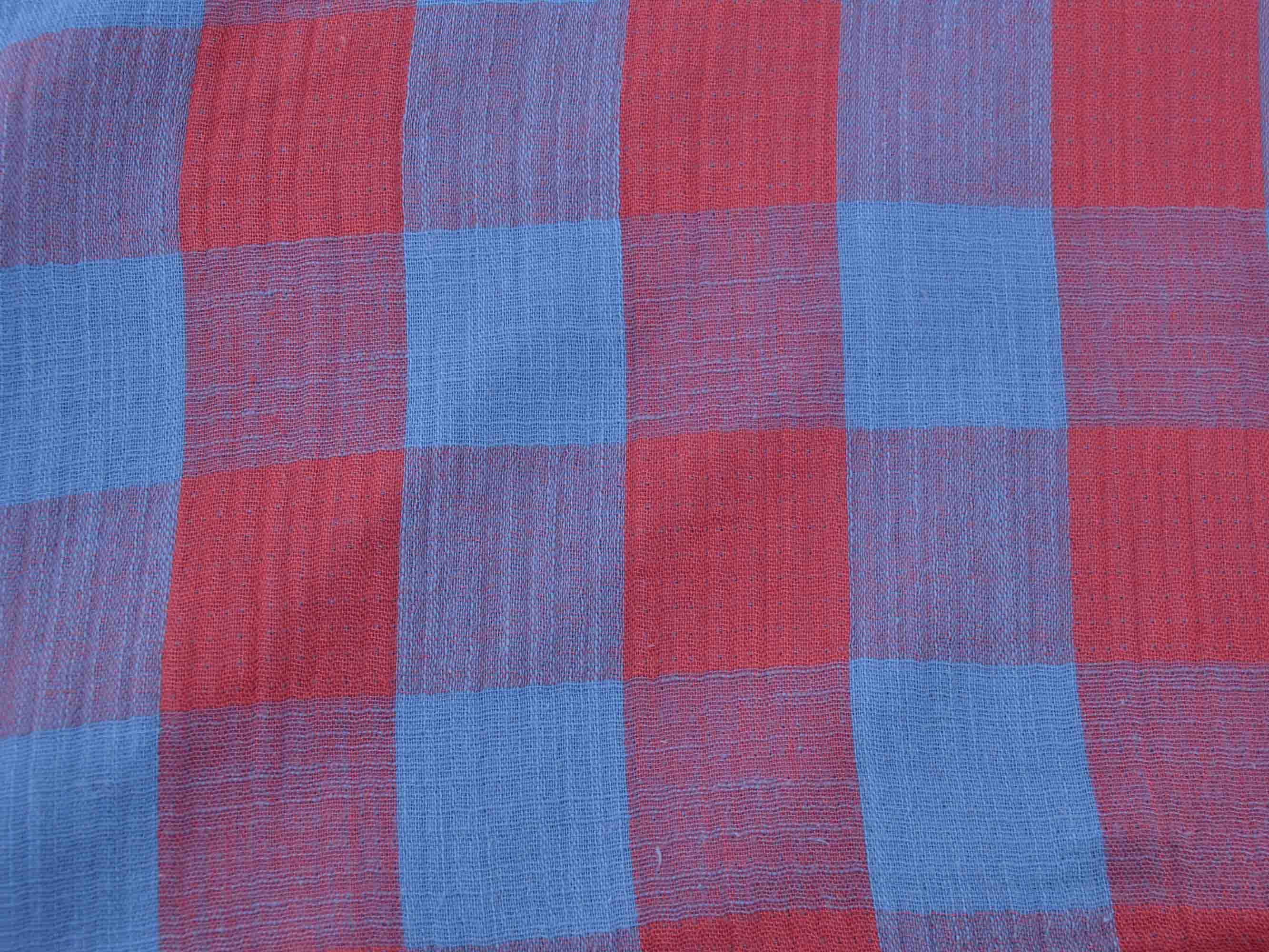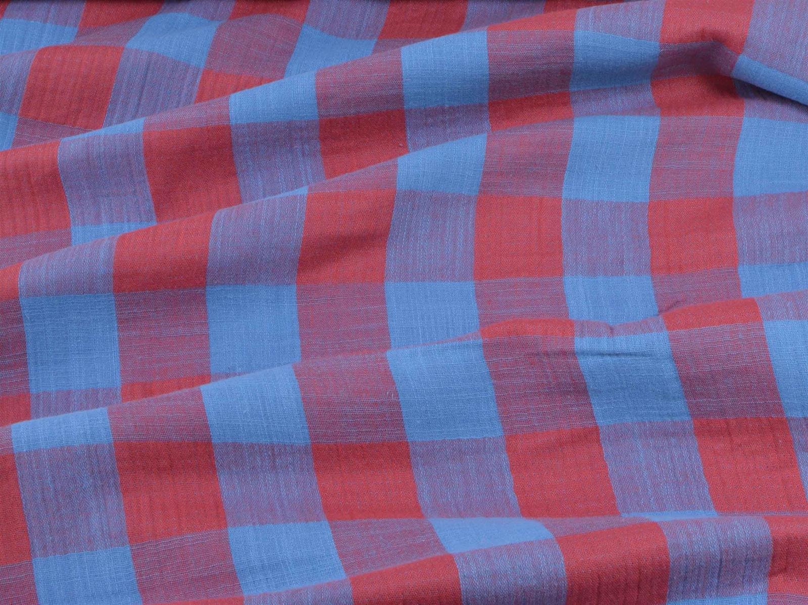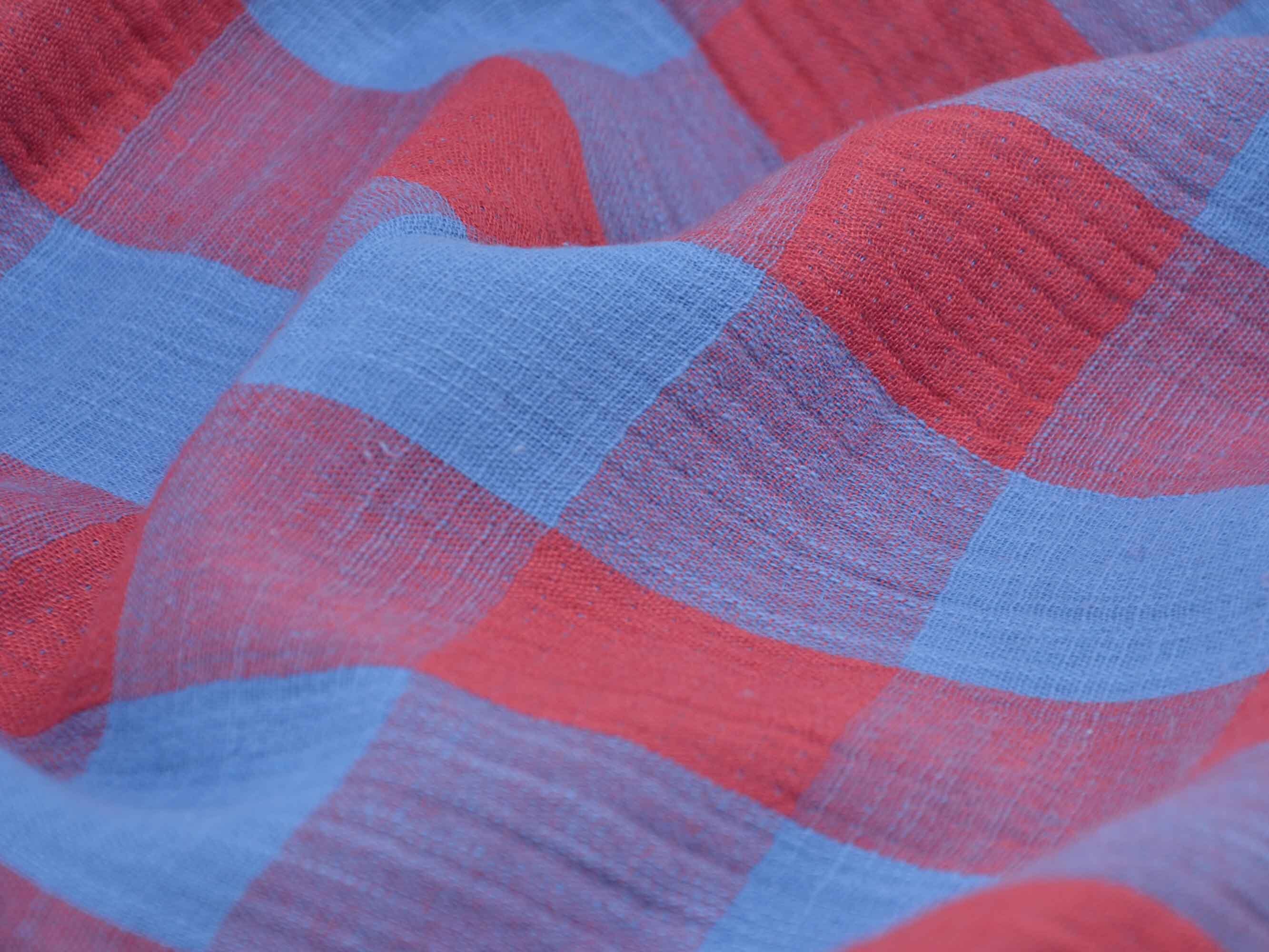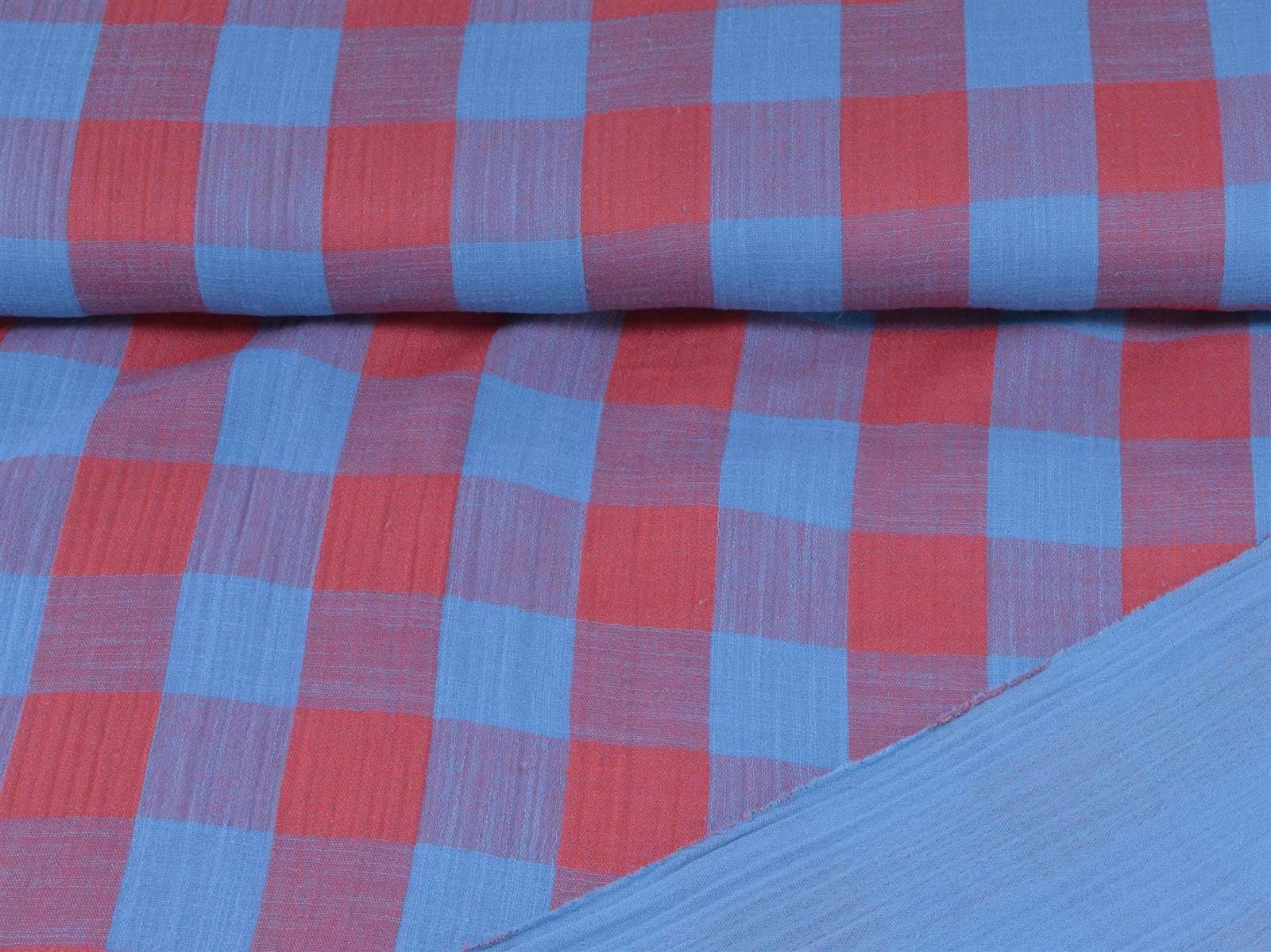 Baumwoll-Musselin für Kinder. Auf dem Stoff große Karos in rot blau die Rückseite ist einfarbig blau. Der hochwertige Musselin kommt aus dem Hause Katia. Er eignet sich perfekt für Kleider, Blusen, Röcke, Kuscheldecken und so vieles mehr.