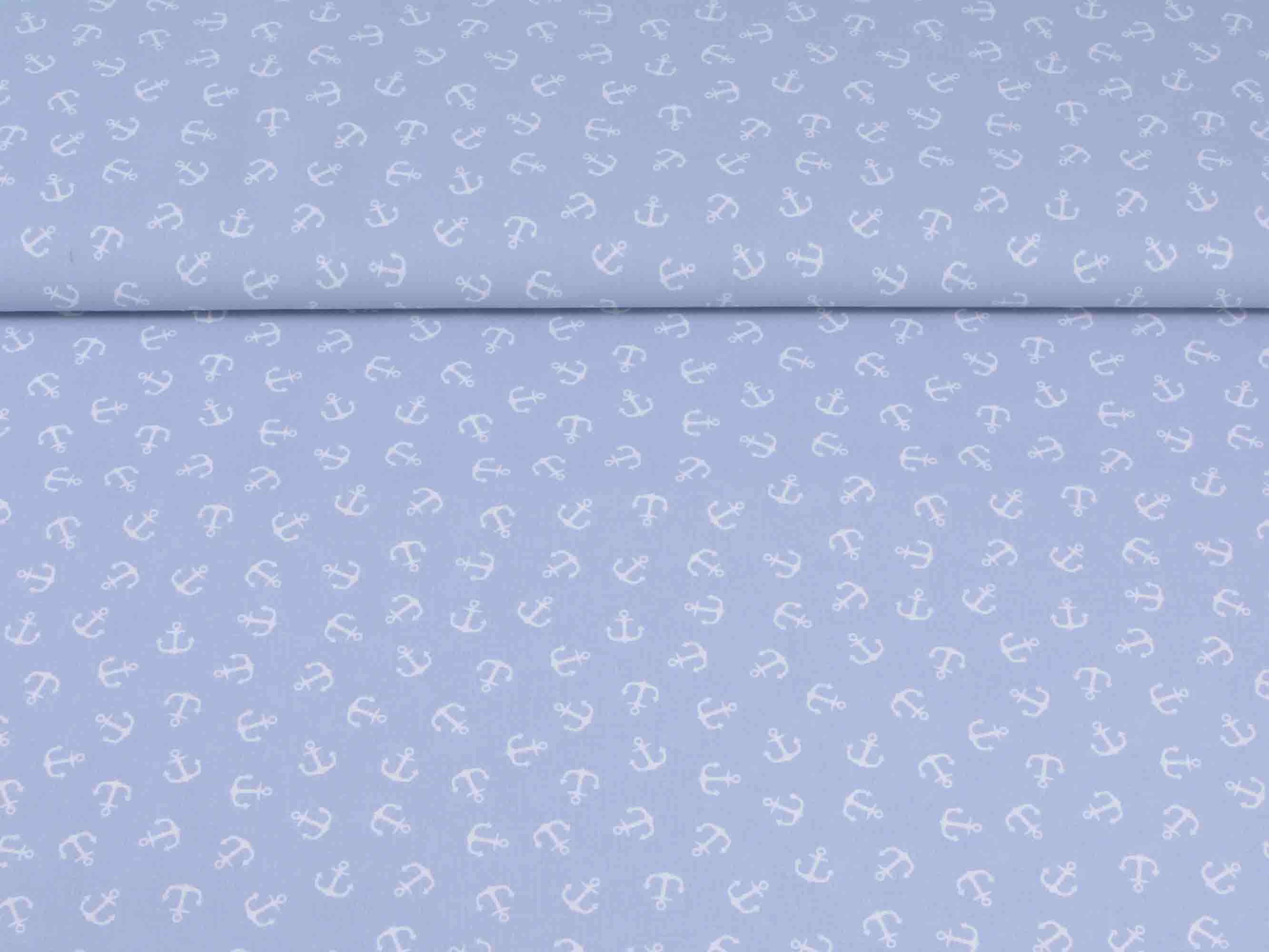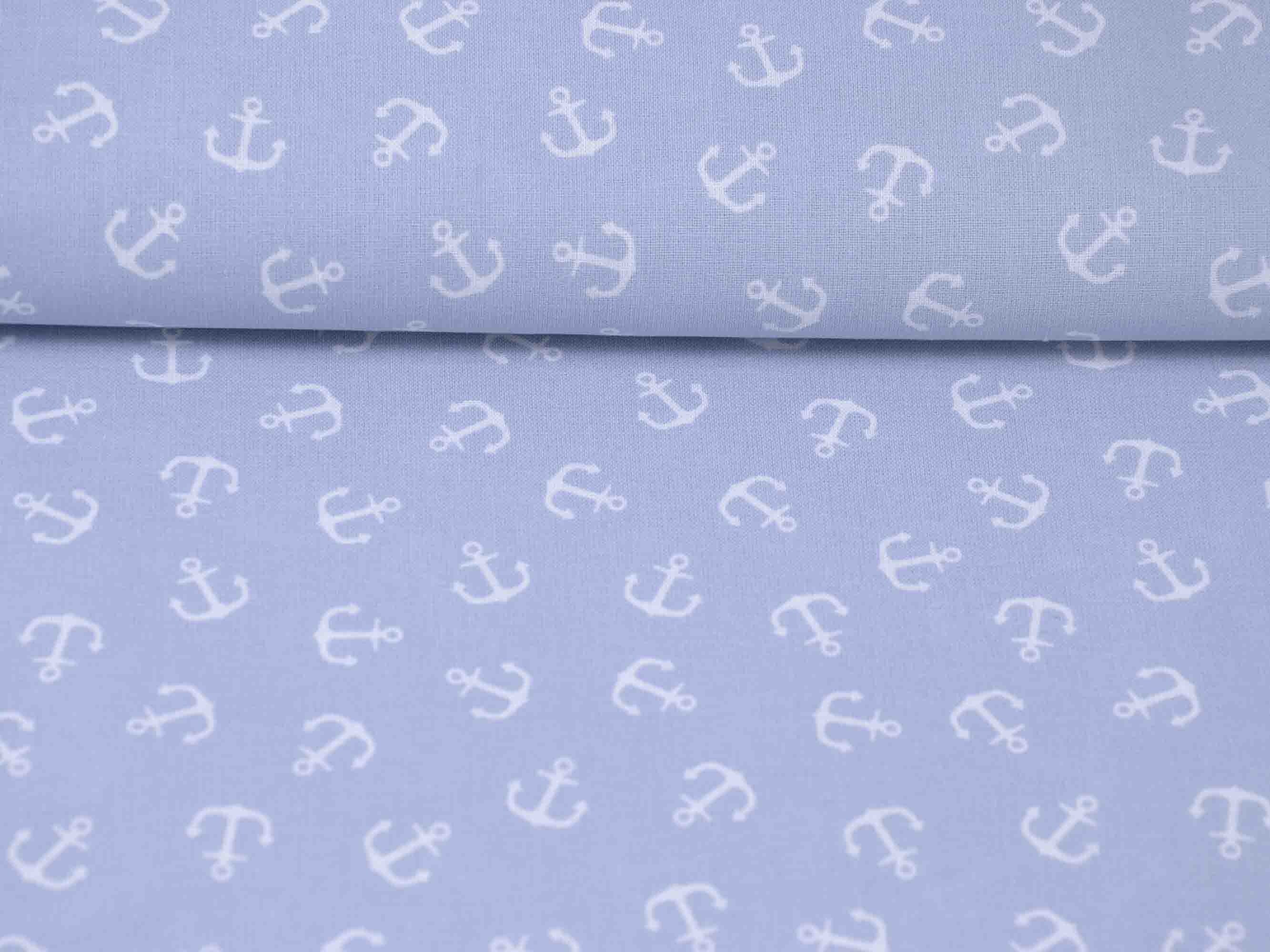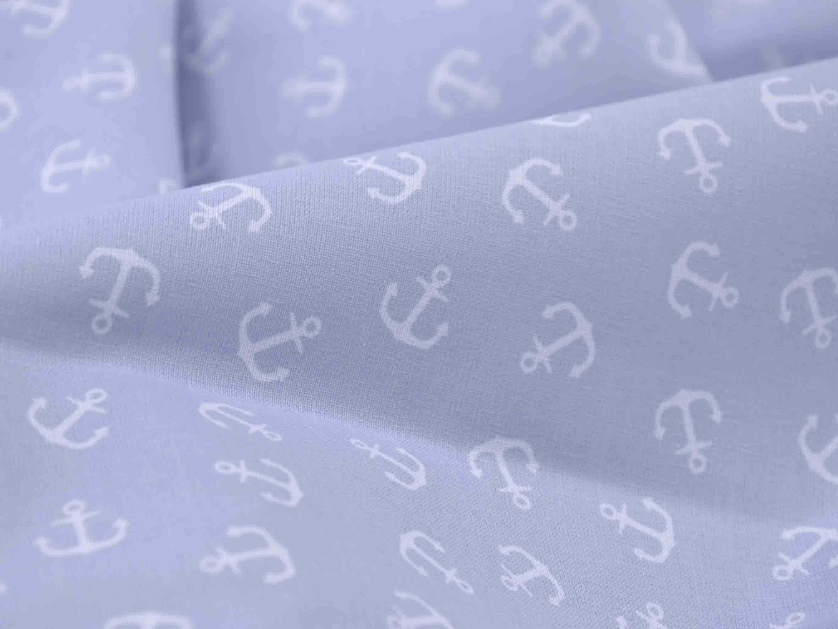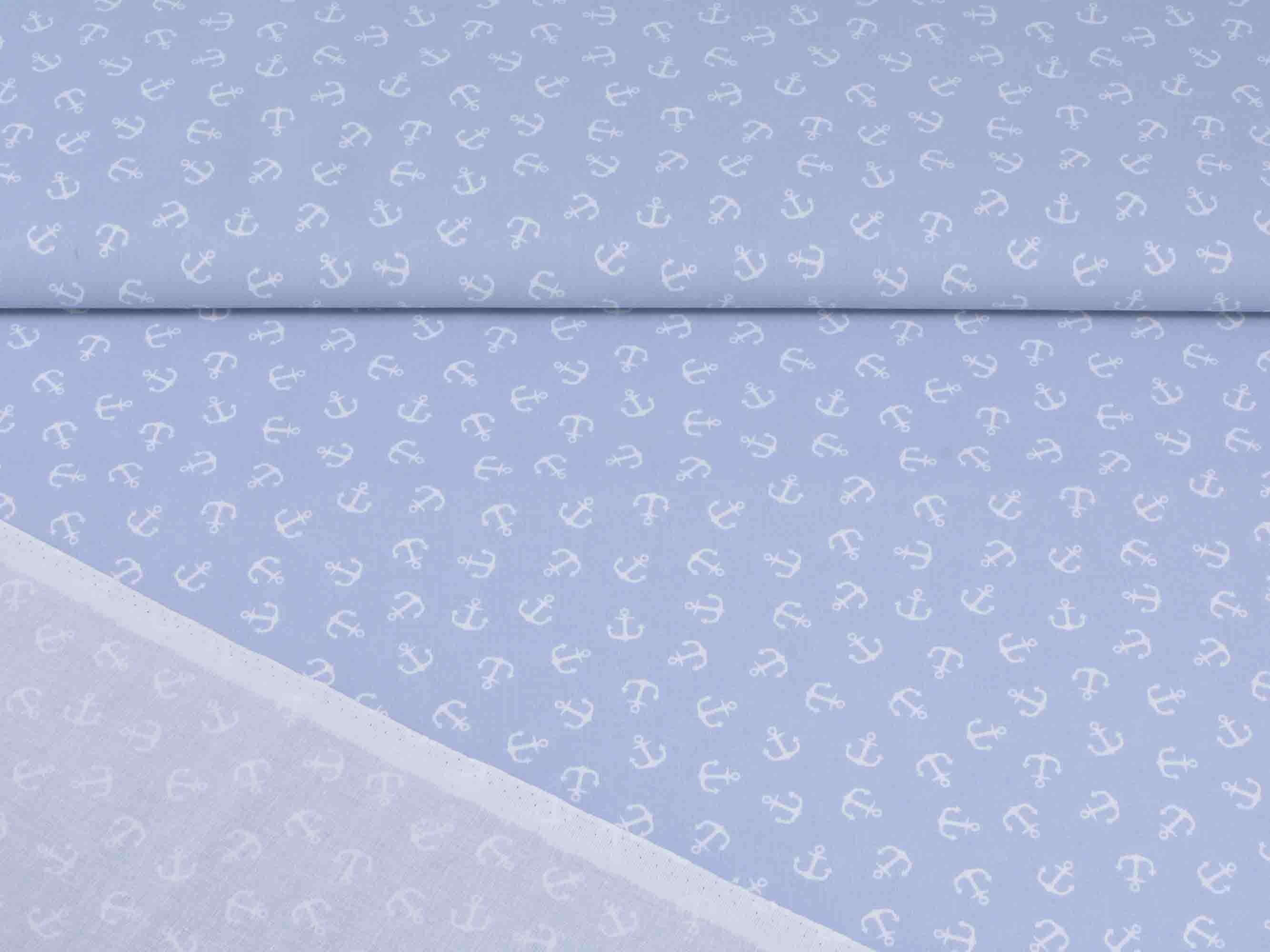 Baumwollstoff mit Ankern von Westfalenstoffe aus der Hamburg Serie. Hochwertiger Baumwollstoff mit weißen Ankern (ca. 1,5cm hoch) auf hellgrauem Stoff.