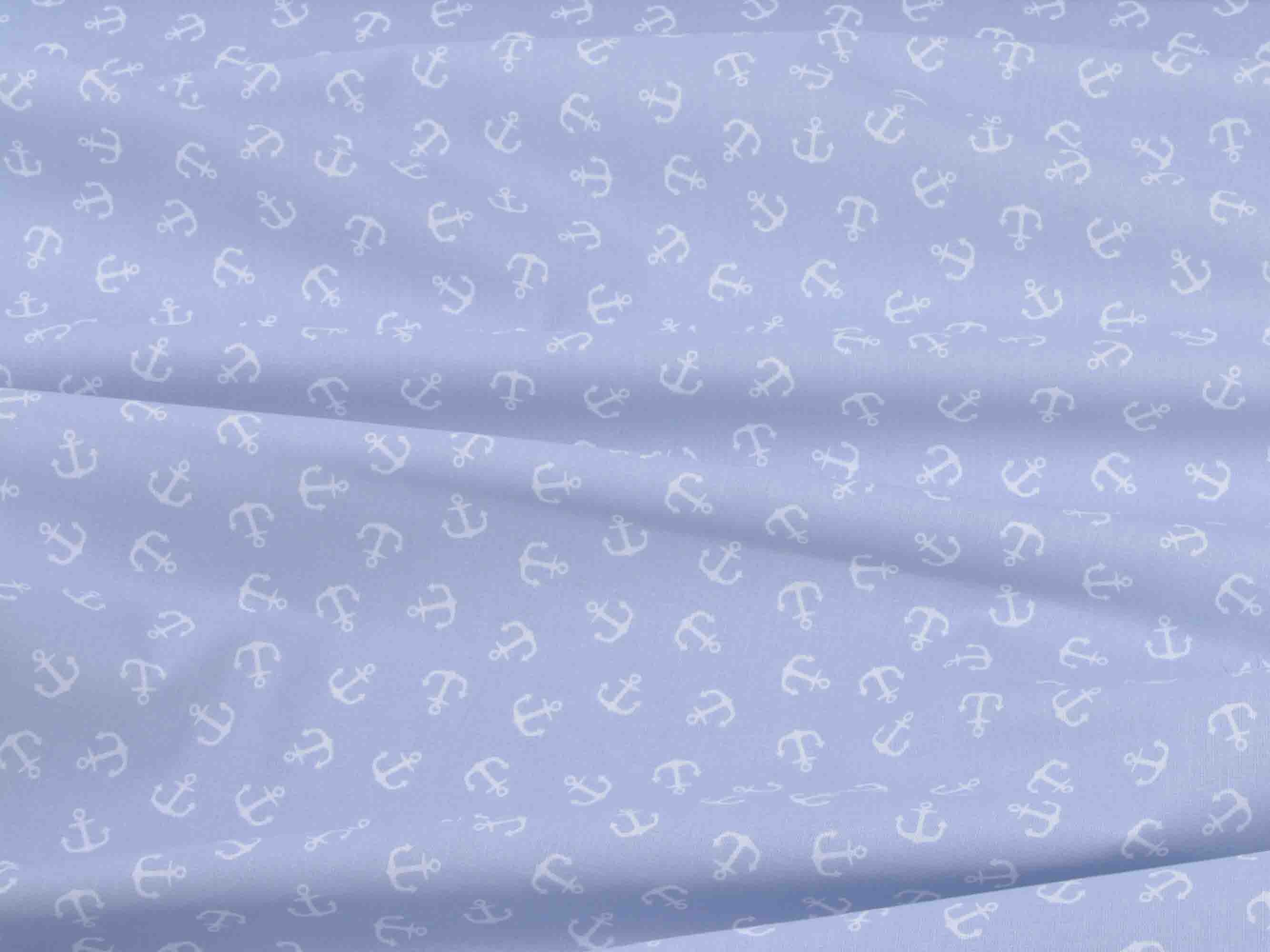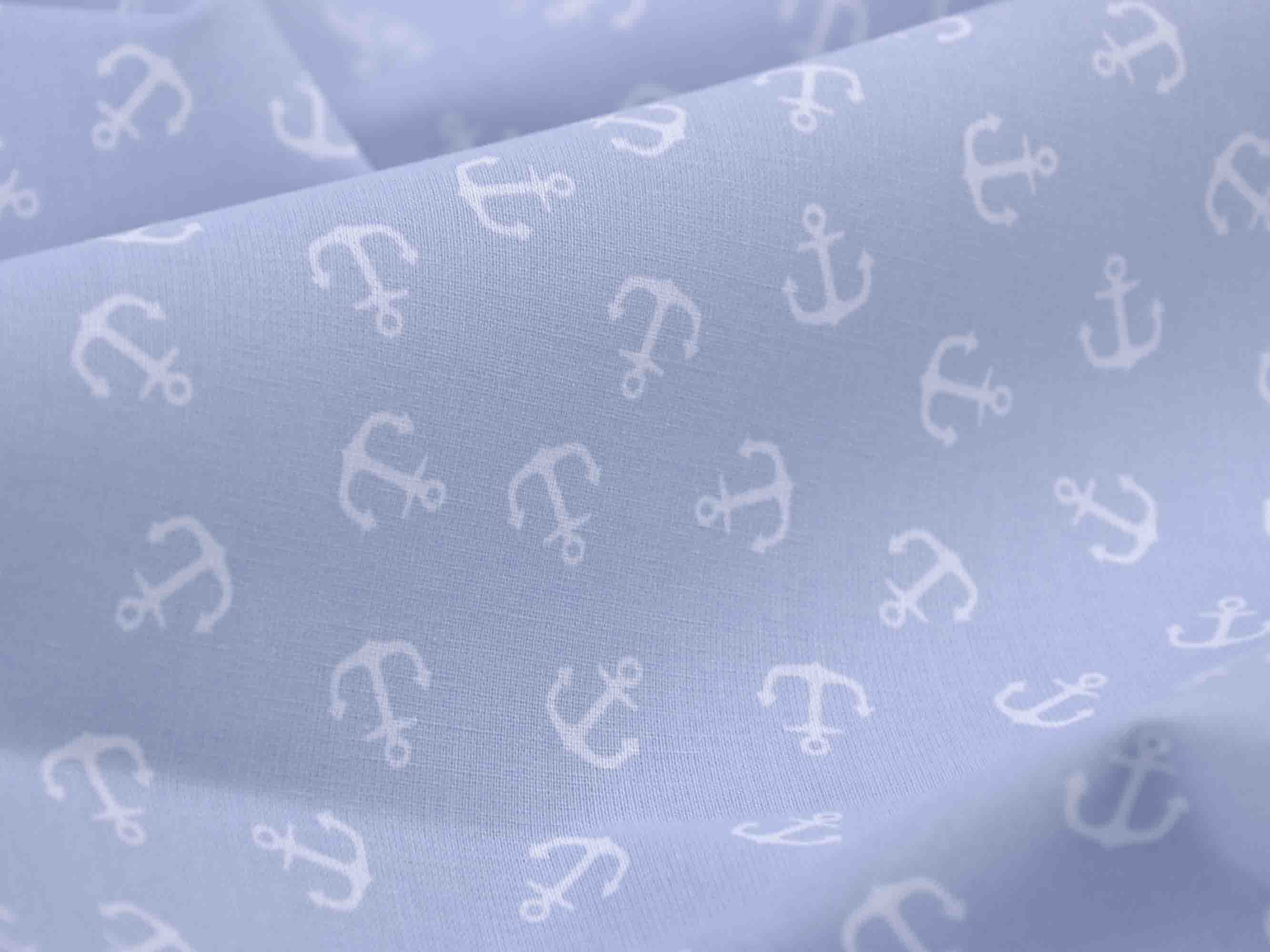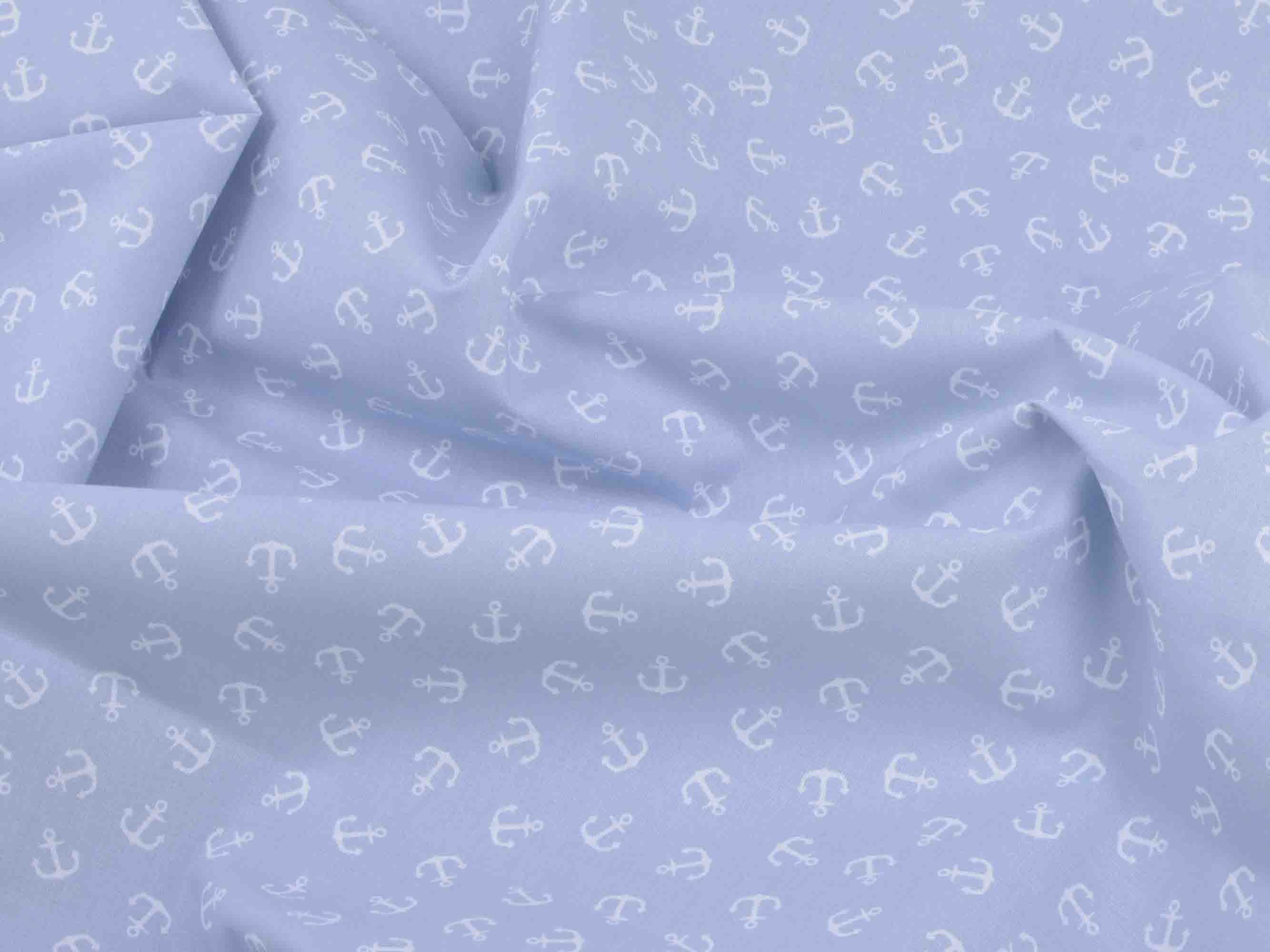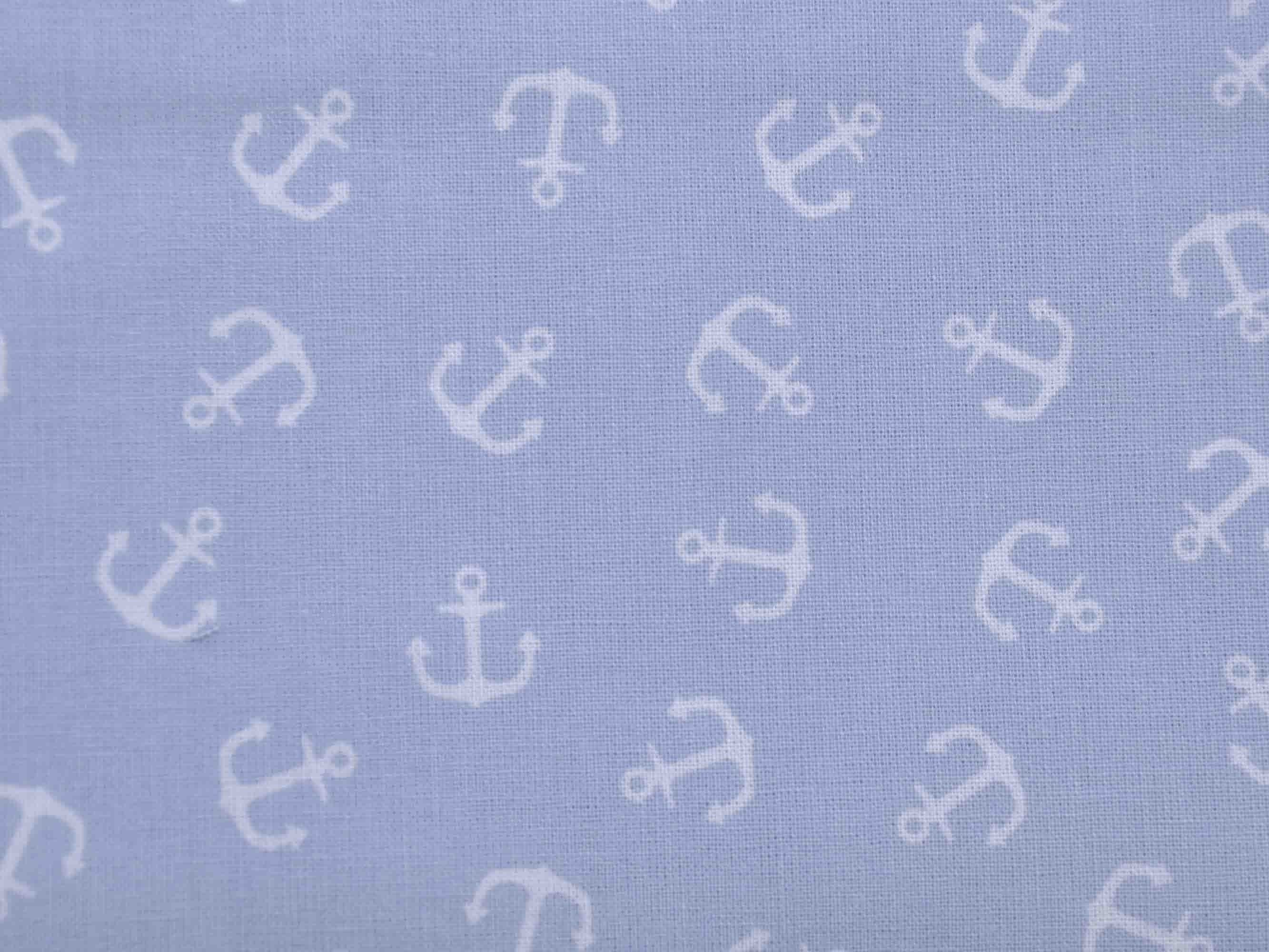 Baumwollstoff mit Ankern von Westfalenstoffe aus der Hamburg Serie. Hochwertiger Baumwollstoff mit weißen Ankern (ca. 1,5cm hoch) auf hellgrauem Stoff.