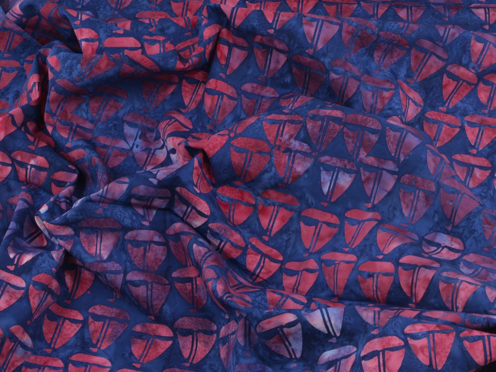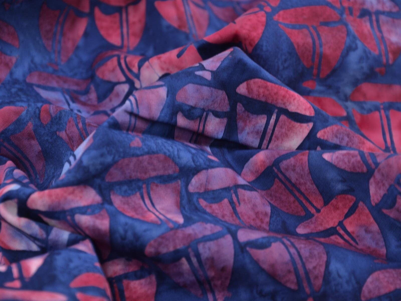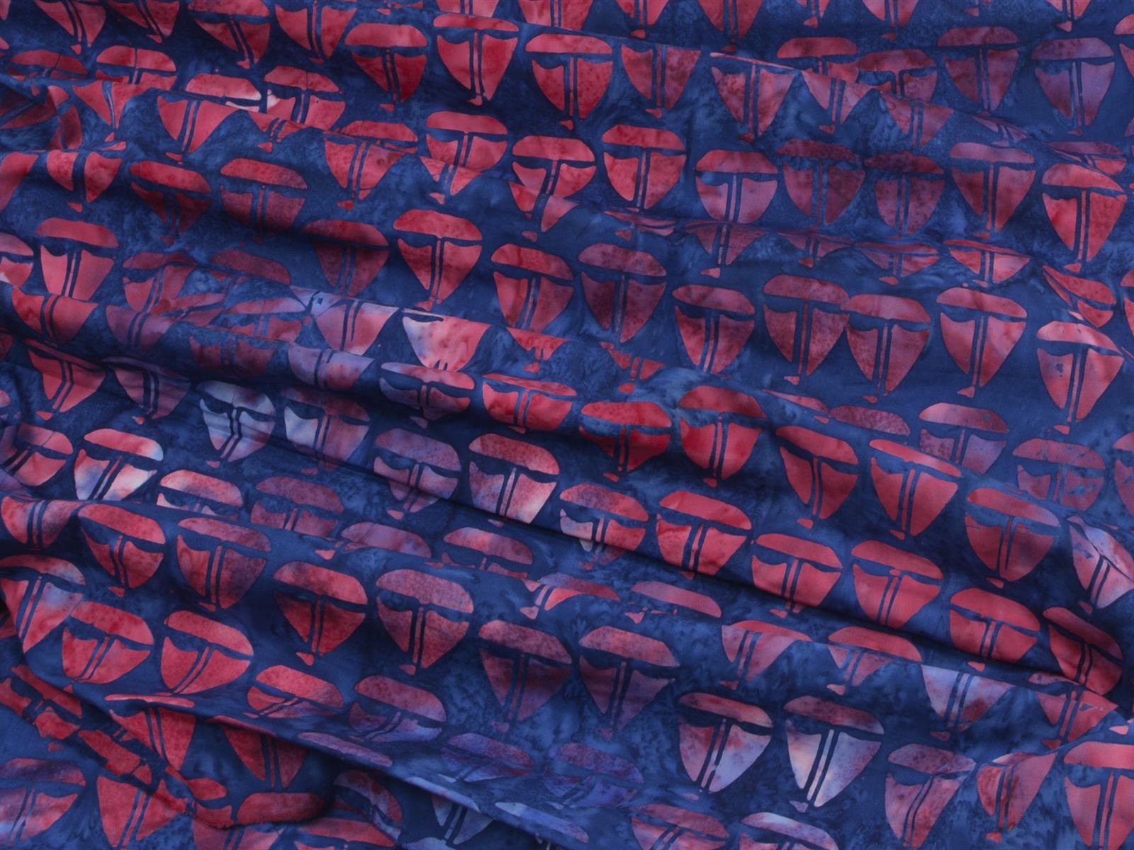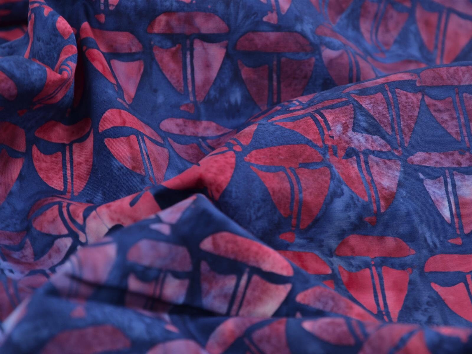 Baumwollstoff der Firma Island Batik zum Patchworken. Der Stoff zeigt rote Batik-Boote. Das Batik-Muster eigent sich wunderbar für Patchwork-Arbeiten, für Decken, Kissen, Taschen, Dekoartikel und andere kreative Arbeiten. Er lässt sich außerdem super mit unseren anderen Maritimen-Baumwollstoffen kombinieren