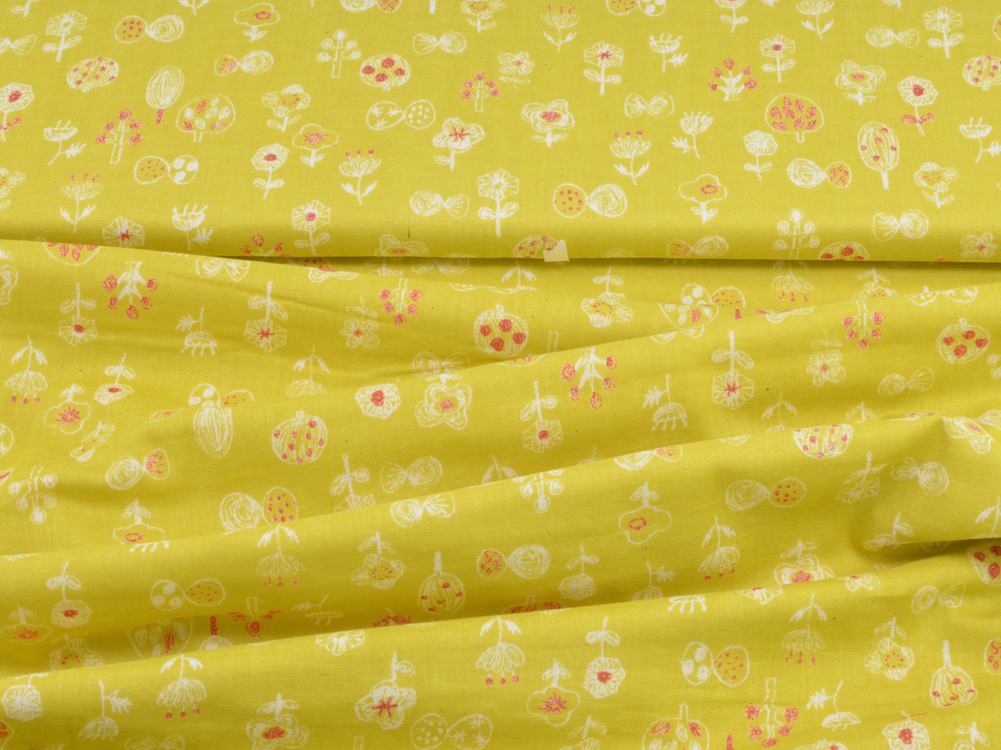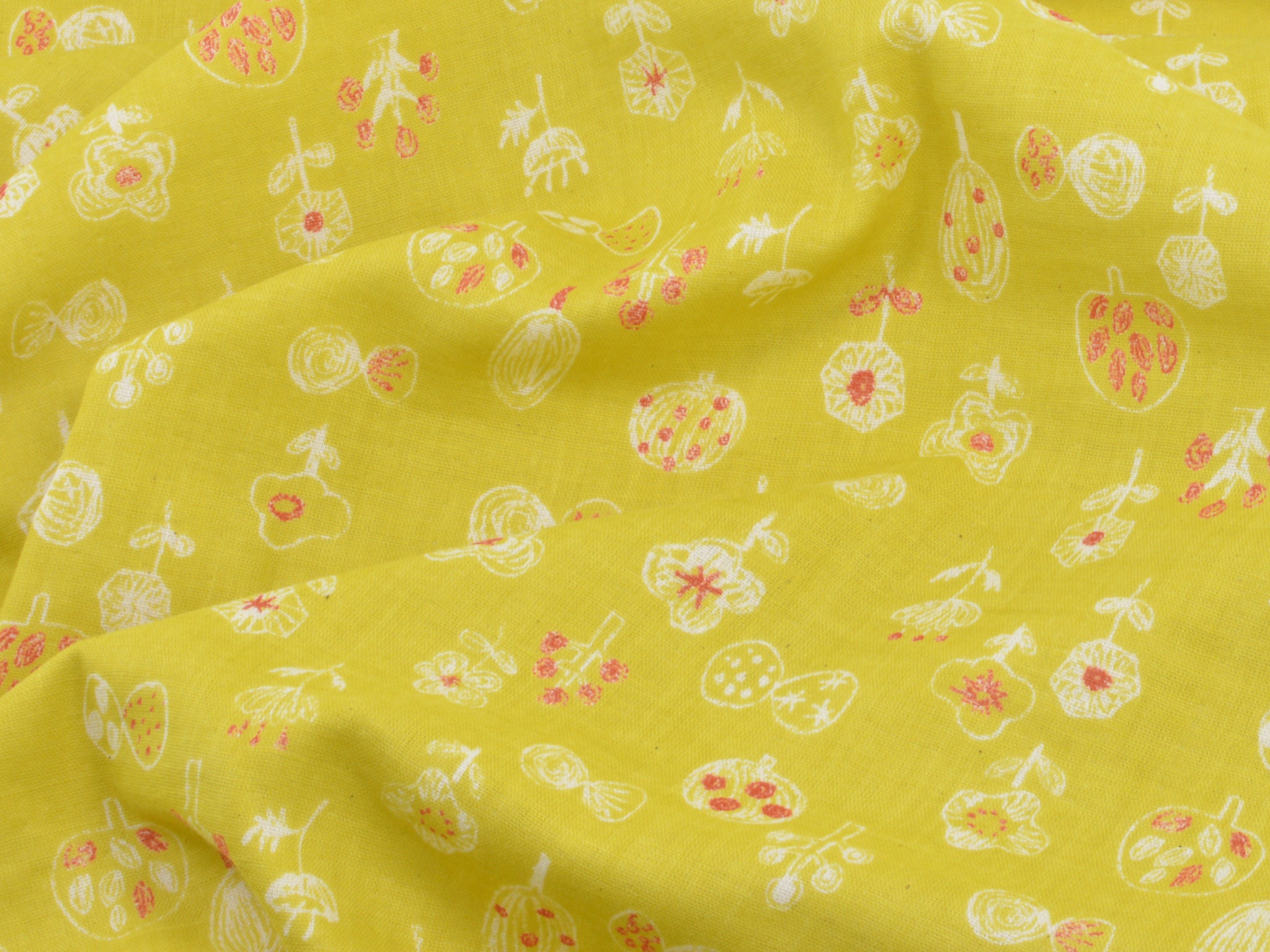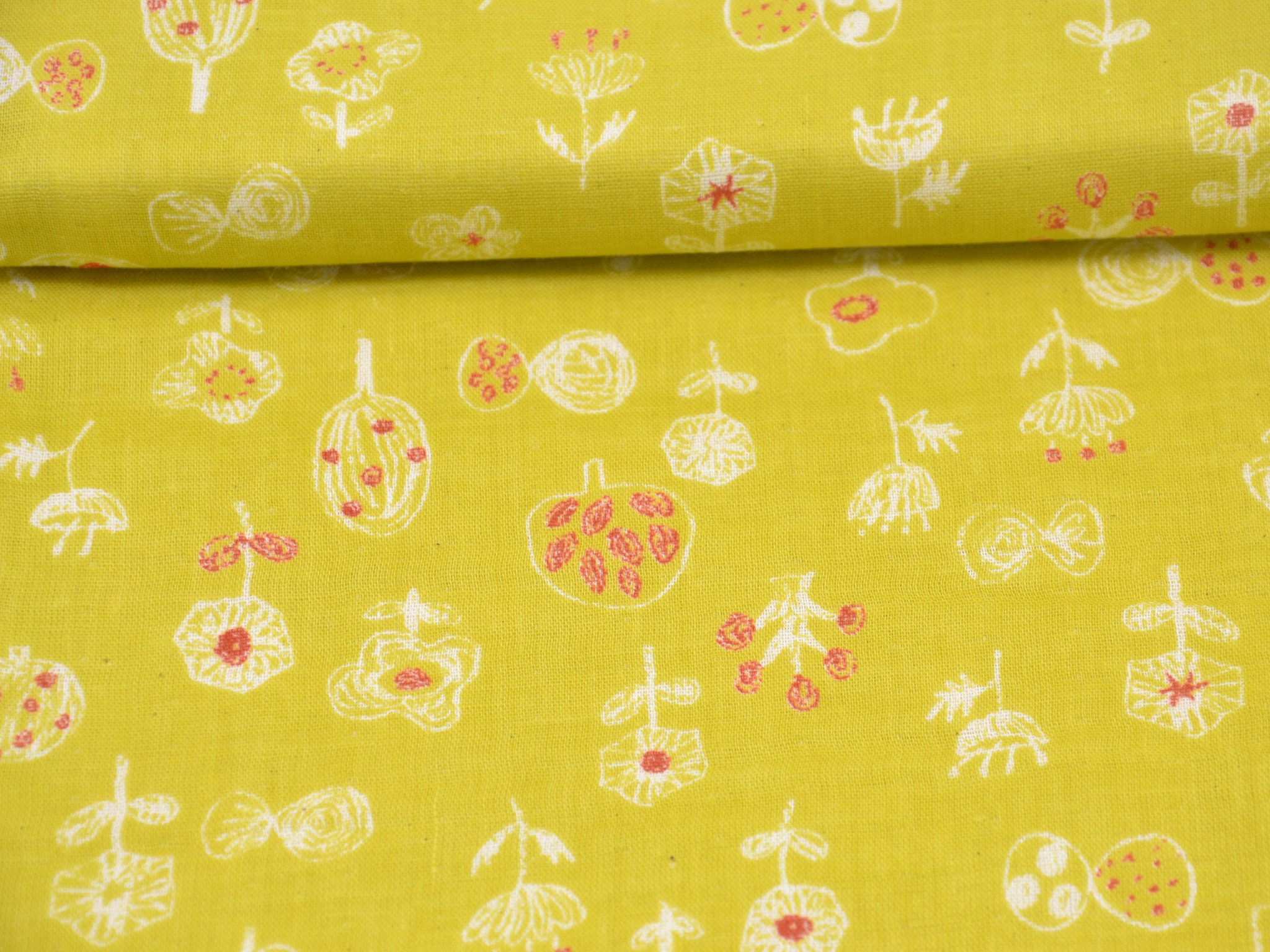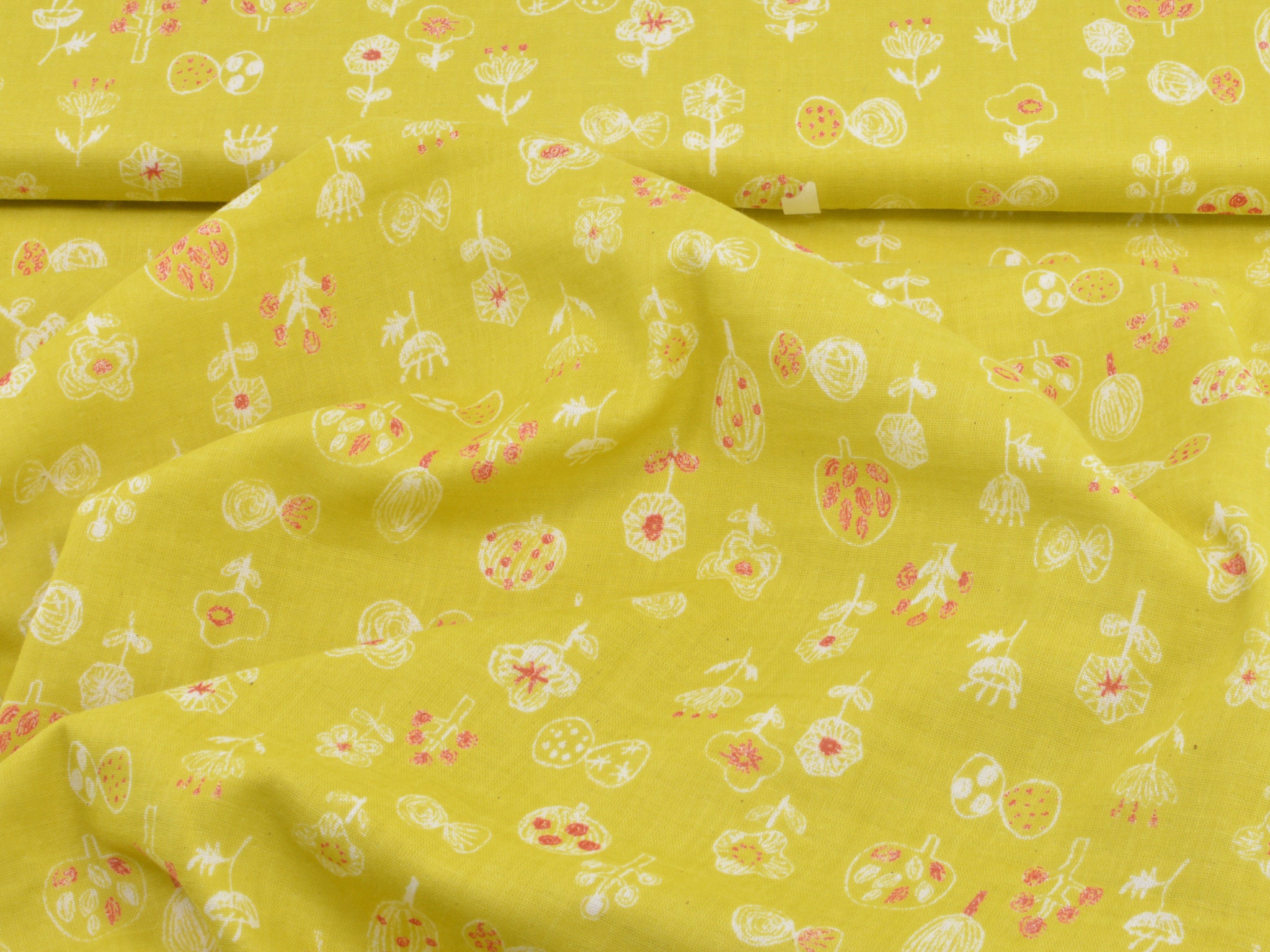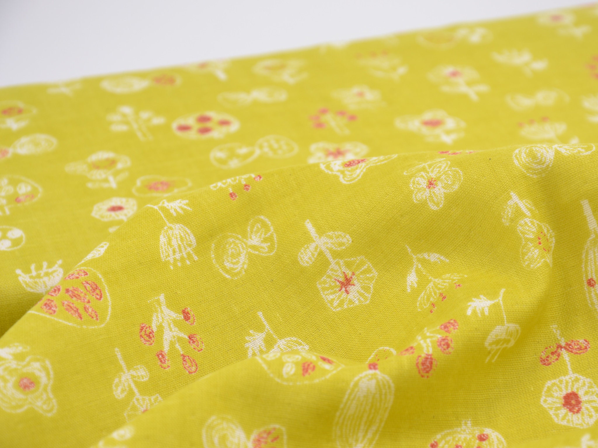 Double gauze made in Japan by Kokka. A uniquely lightweight, double-layered fabric with flowers and trees on a light green background. Ideal for blouses, scarves, skirts, and dresses.