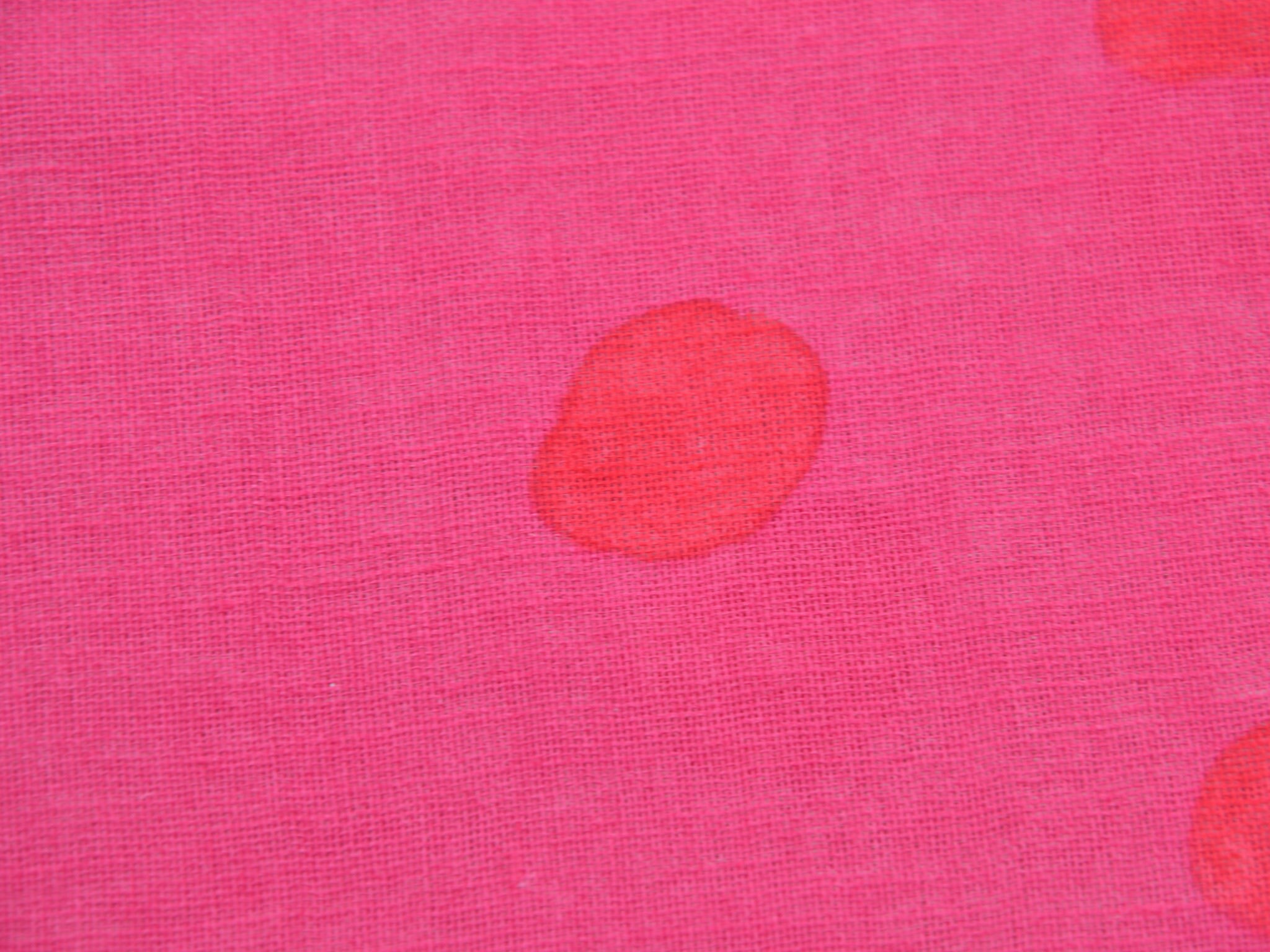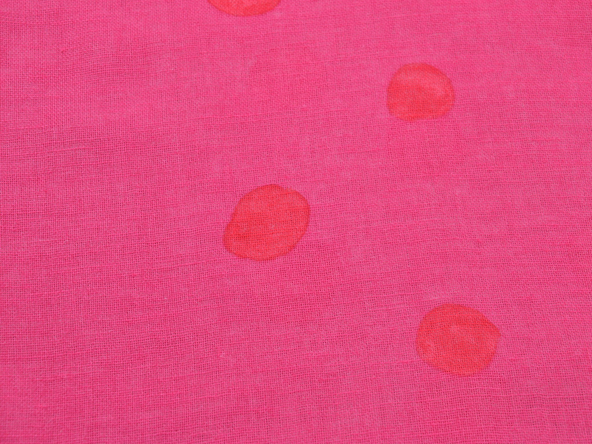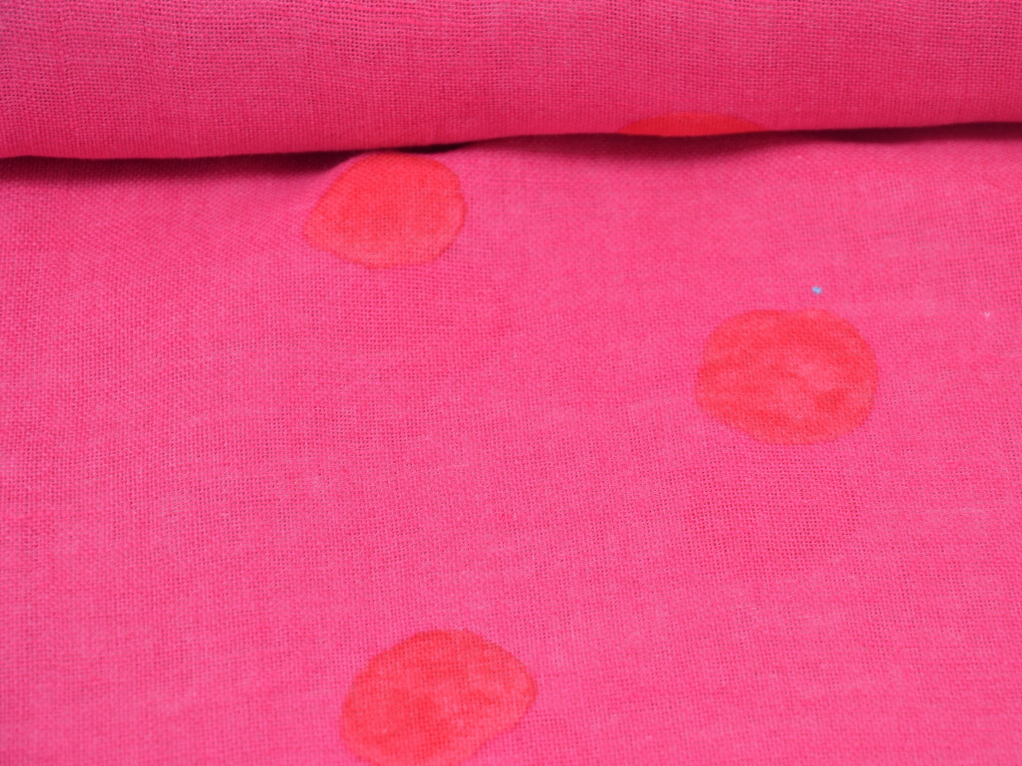 Dünner Stoff aus Leinen und Baumwolle in pink mit roten Punkten. Die Punkte sind unregelmäßig und ca 3 cm groß. Der Stoff ist leicht und etwas transparent. Er eigent sich für Blusen, Jacken, Kleider, Röcke und Schals. Für Bekleidung empfehlen wir einen Futterstoff zu nutzen, da der Stoff sonst durchscheinend ist.