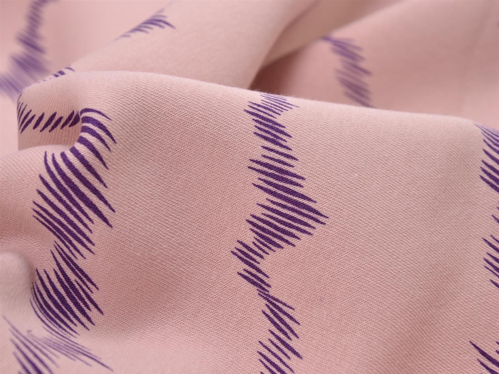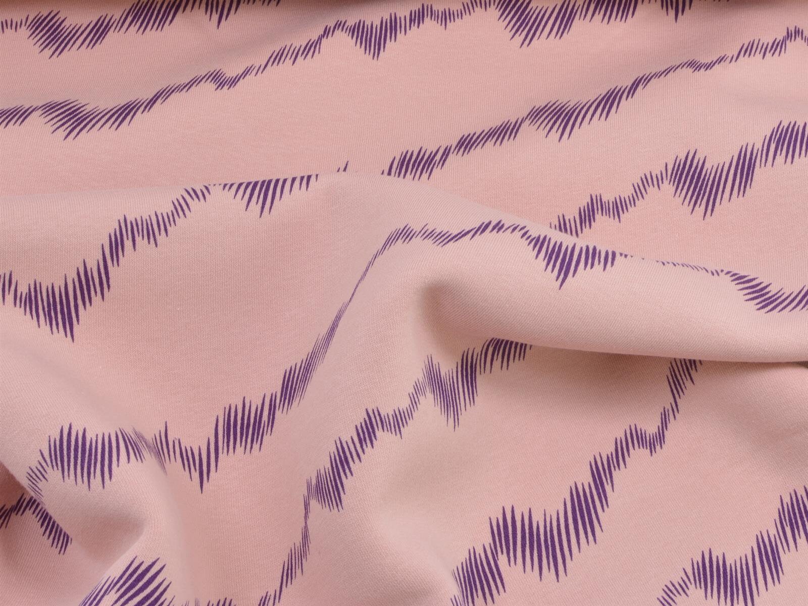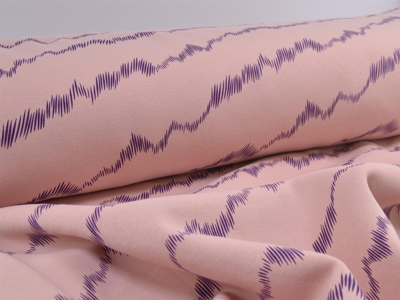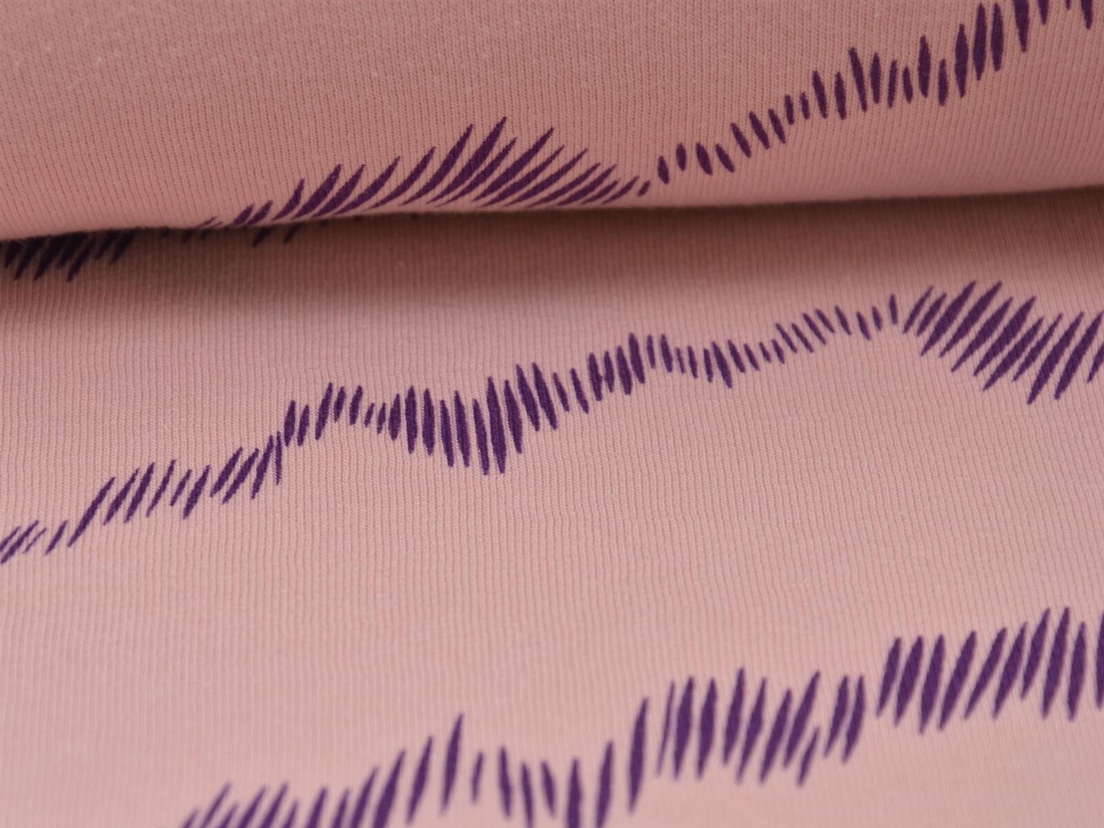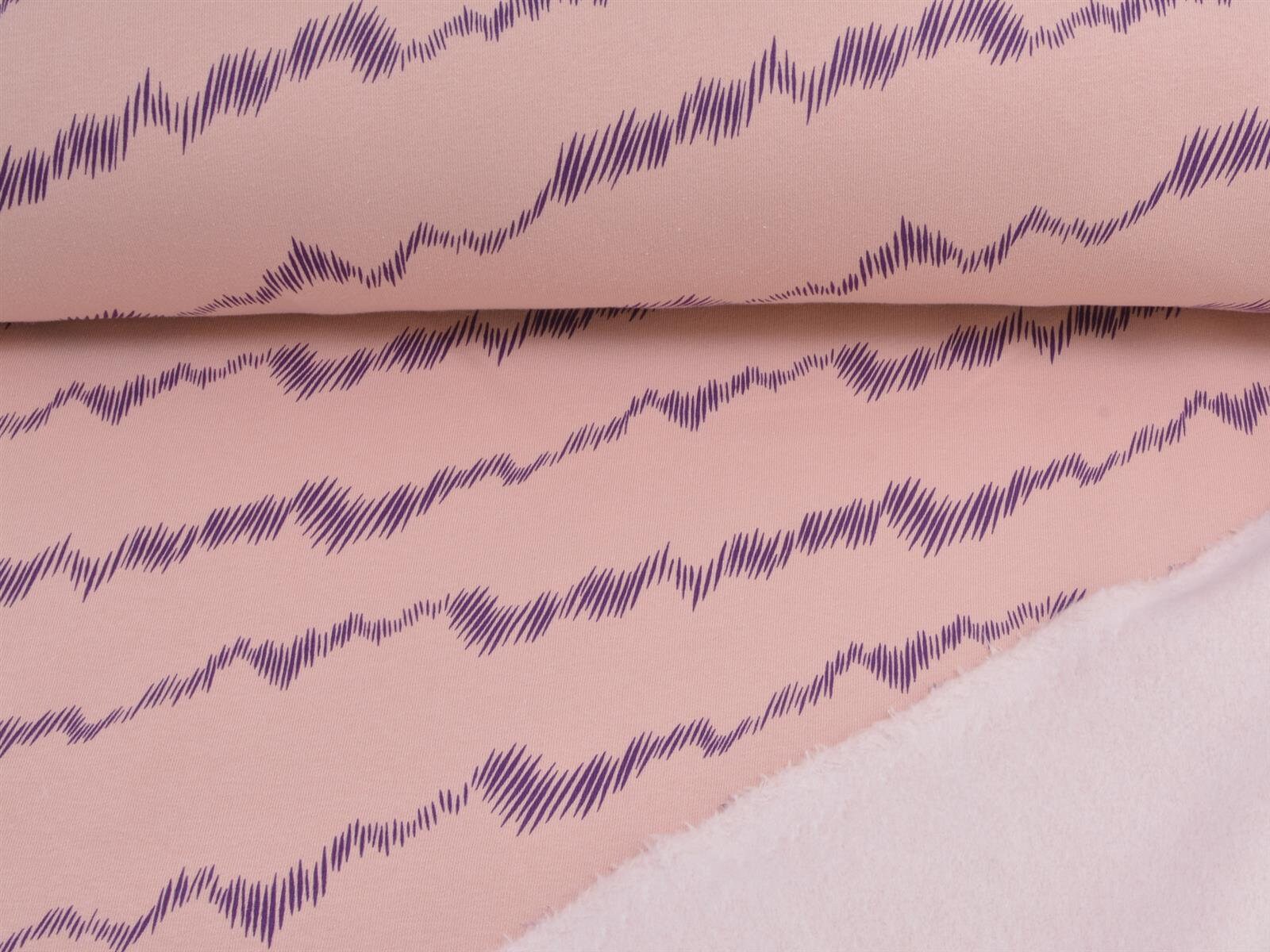 Dieser schwere, aber weiche Sweatstoff aus Baumwolle und recyceltem Polyester ist von Fibre Mood. Die glatte Vordeseite hat ein lilanes Muster, die aufgeraute Rückseite fühlt sich sehr weich und flauschig an. Weil er recht warm ist, eignet er sich wunderbar für Homewear, kuschelige Pyjamas, Jogginganzüge, weite Pullover und Hoodies, etc.