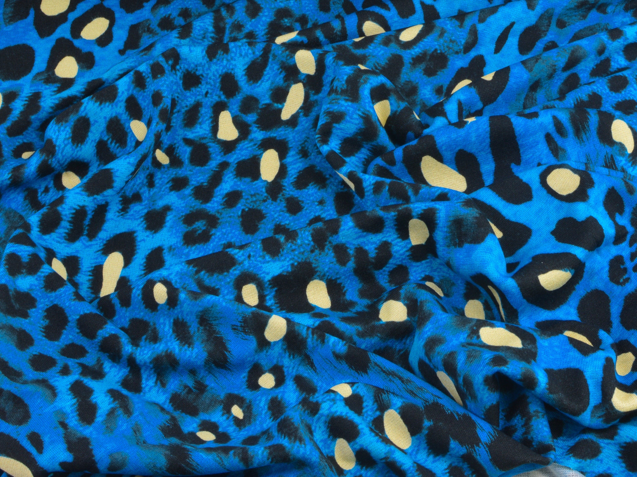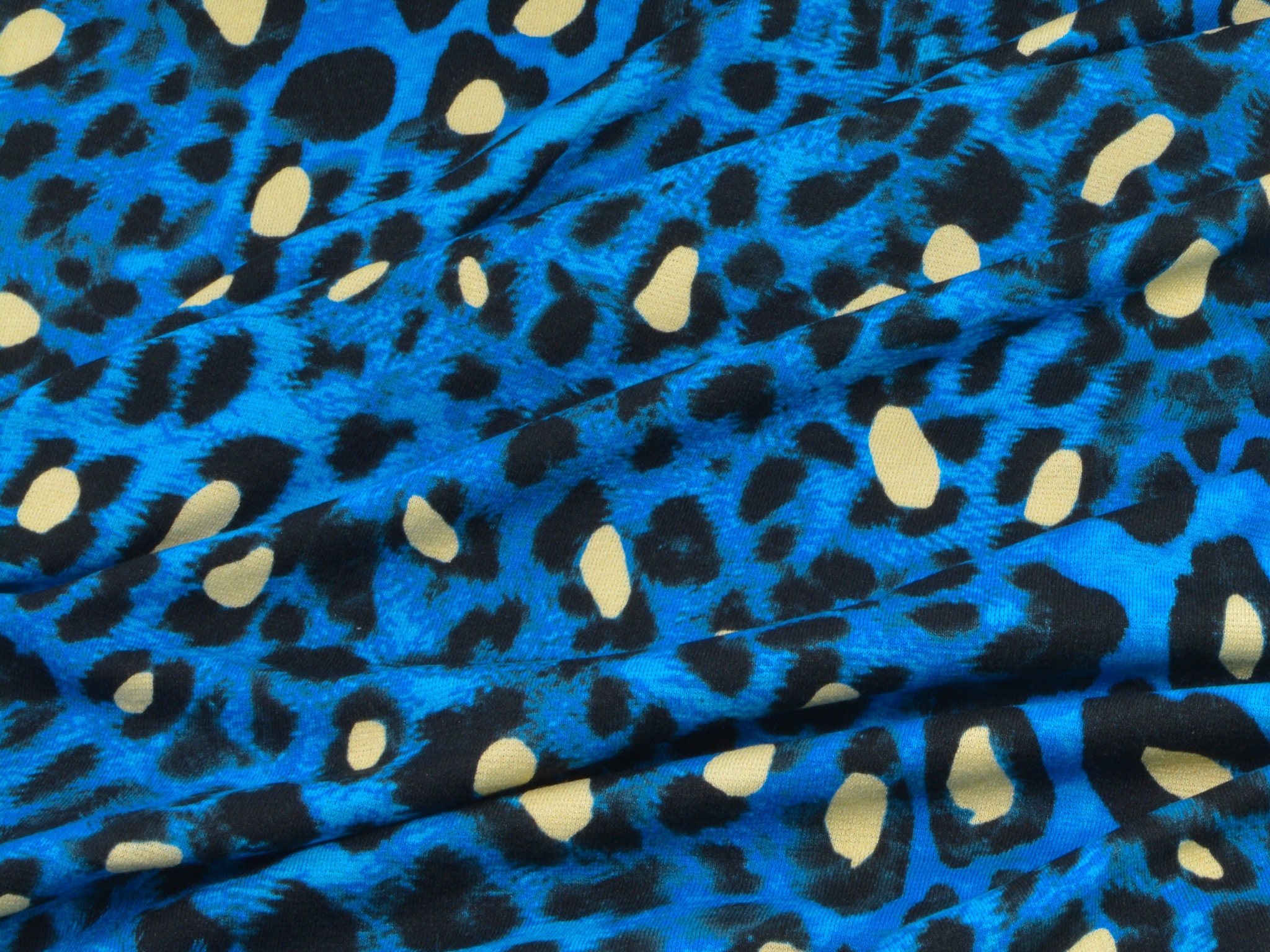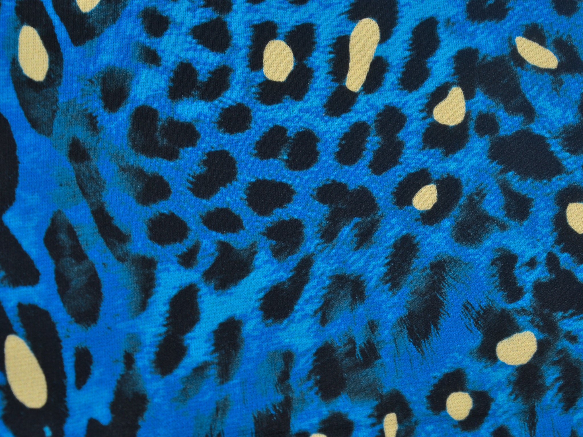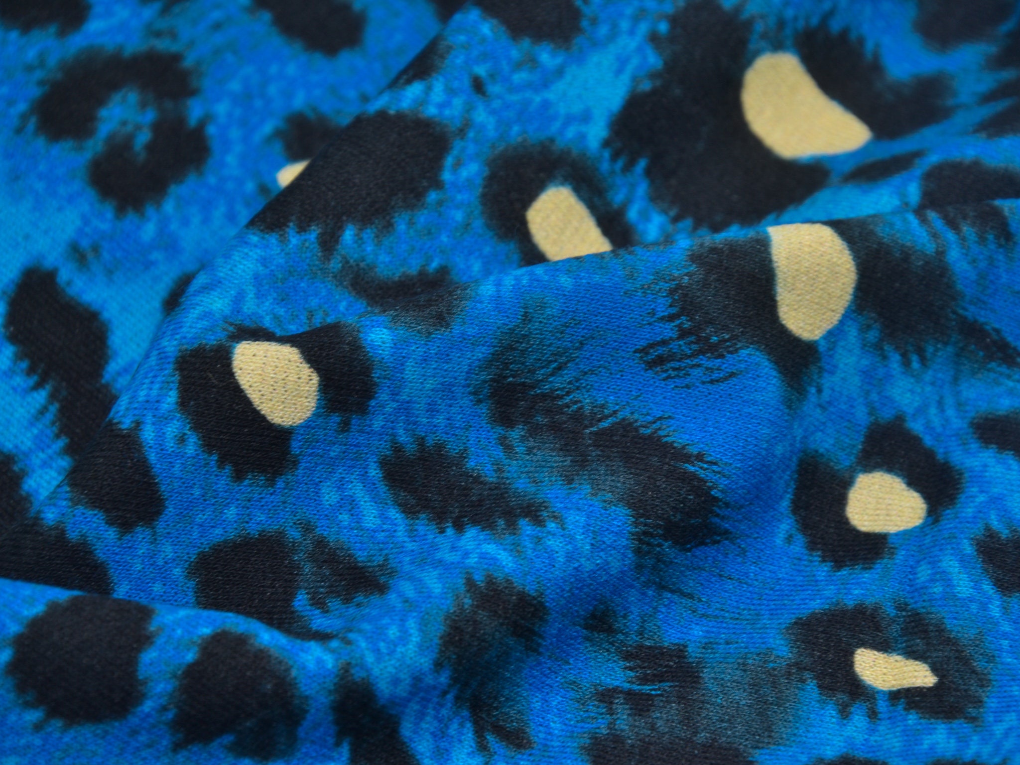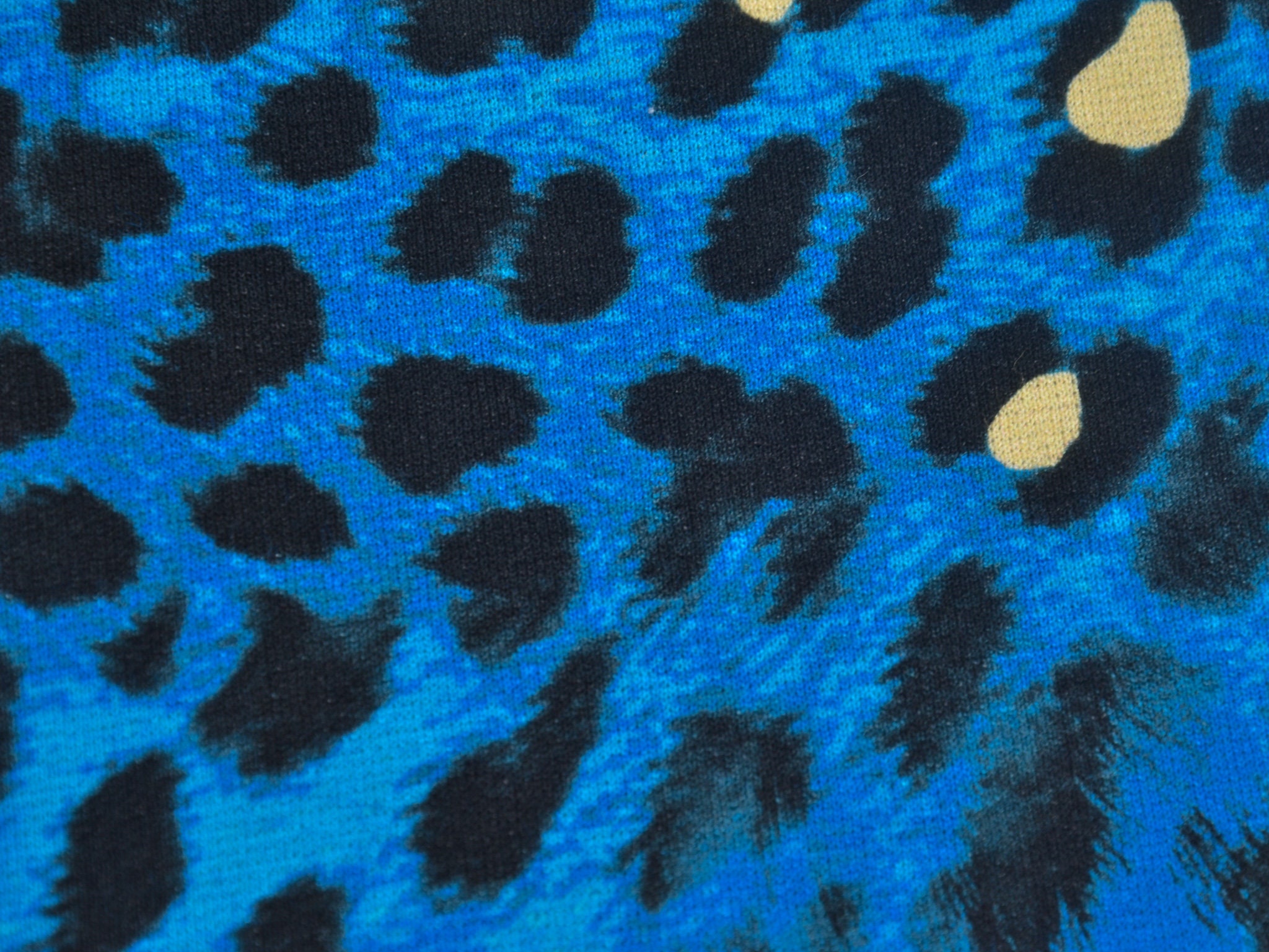 "Conny" ist ein Strickstoff mit Leo-Muster. Der Untergrund ist blau meliert, das Leo-Muster ist schwarz mit gelben Akzenten. Der hochwertige Viskose-Strick kommt aus dem Hause Hilco. Er eignet sich perfekt für Kleider, T-Shirts und Langarmshirts.
