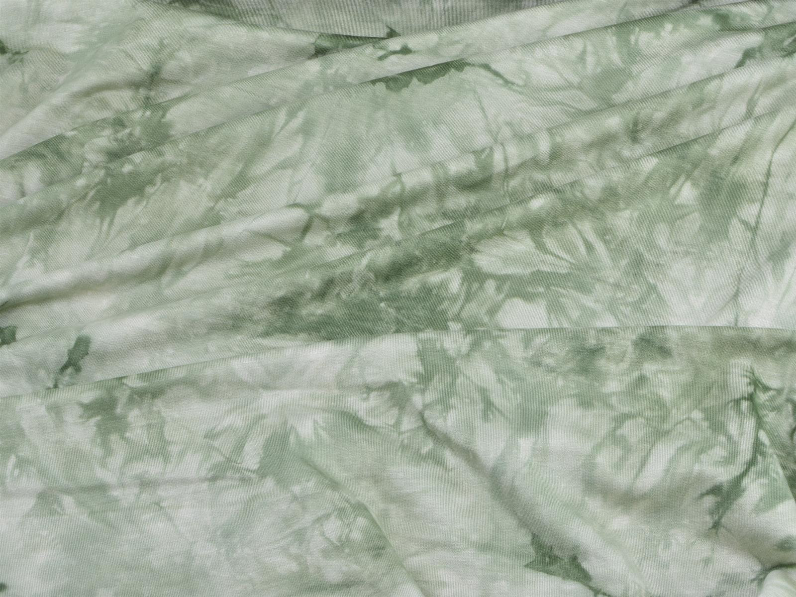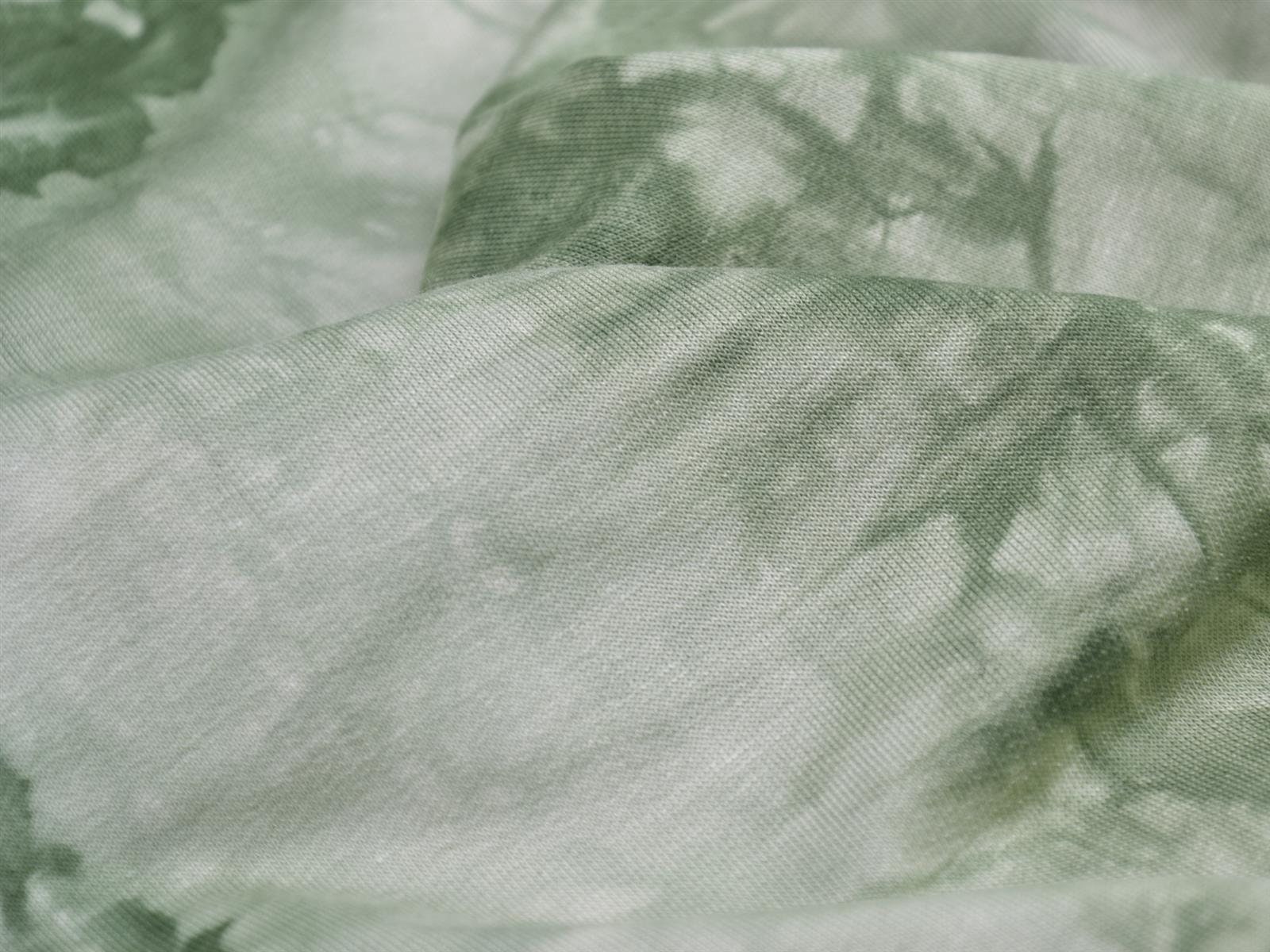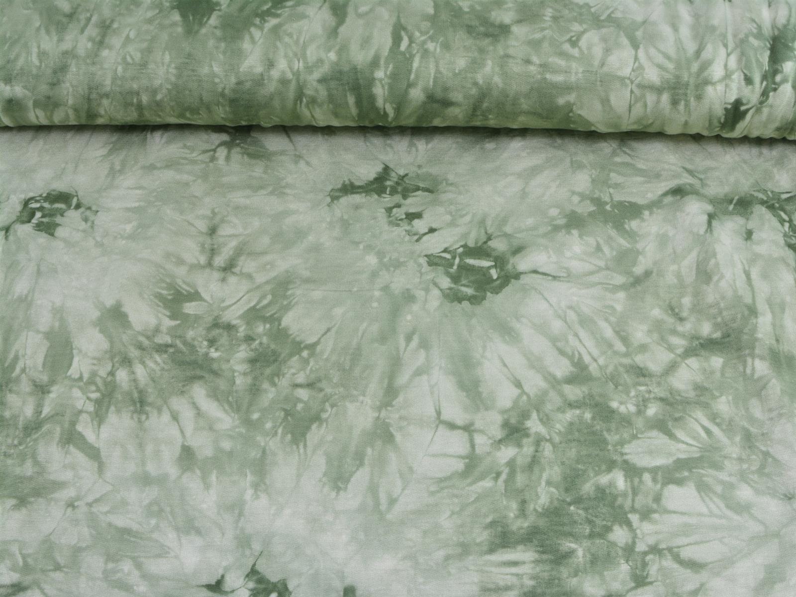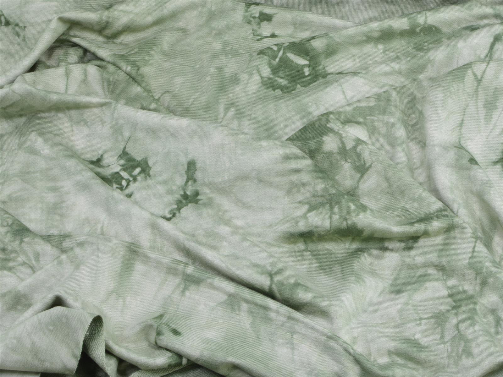 Jersey aus Baumwolle und Elasthan mit grünem Batikmuster. Ganz weicher, fließender Viskose Jersey mit angerauter linken Seite. Der Stoff hat eine matte Optik, einen weichen Griff. Er eignet sich wunderbar für Shirts, Kleider, Röcke, als Futter für warme Mäntel, etc.