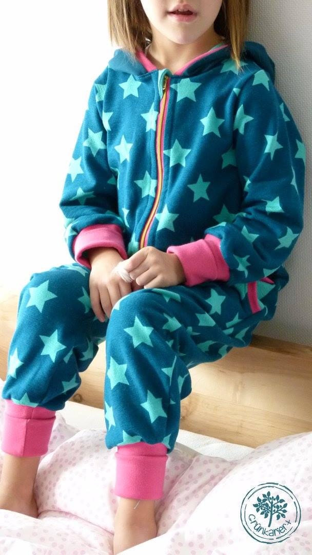 The cuddly suit for the little ones. The Jolly Jumper can be sewn with or without a hood. Use it as pajamas, a house suit or to put on when you go out. Choose between the version with a zip, with a button placket or a reversible jumper.