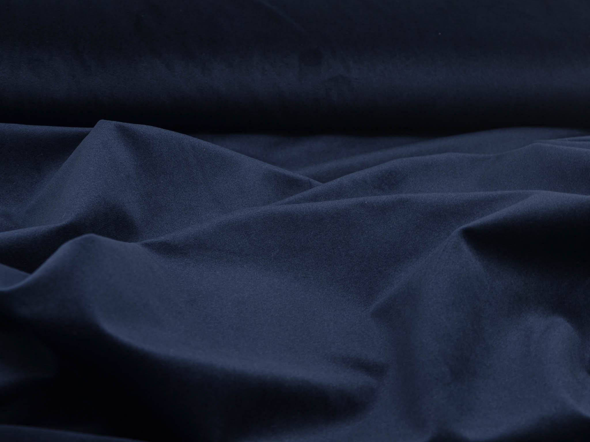 Soft velour fabric in dark blue. Super soft and flowing fabric for blankets, cushions, dresses, sweaters and much more. The fabric is stretchy.