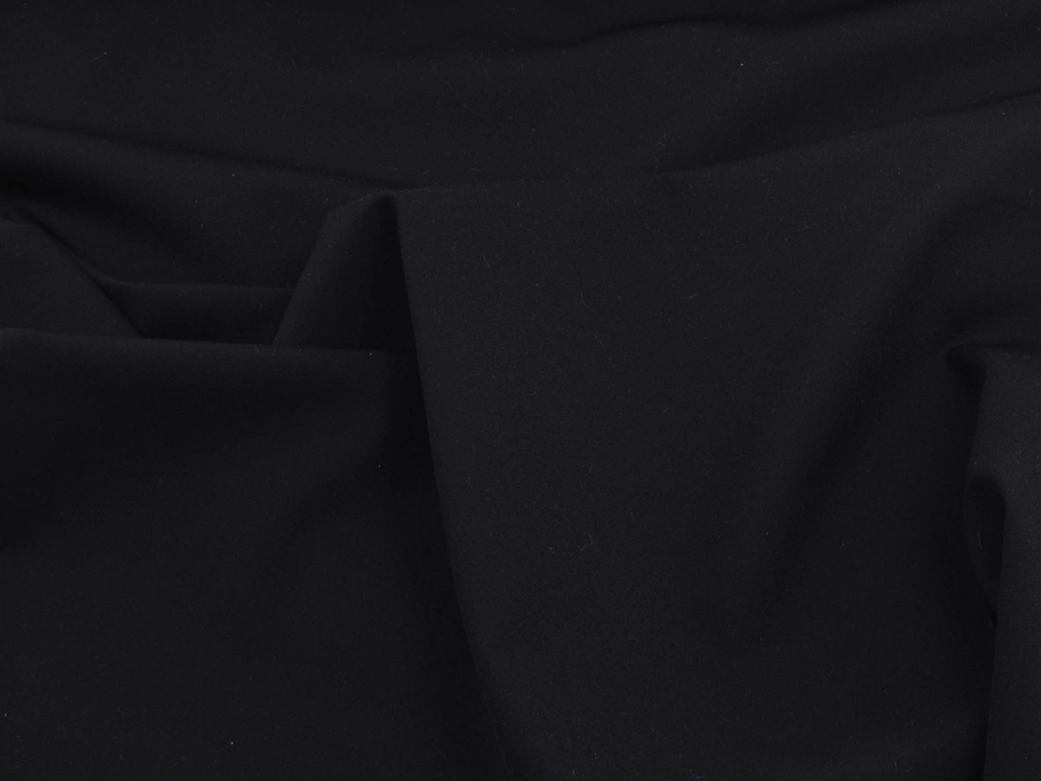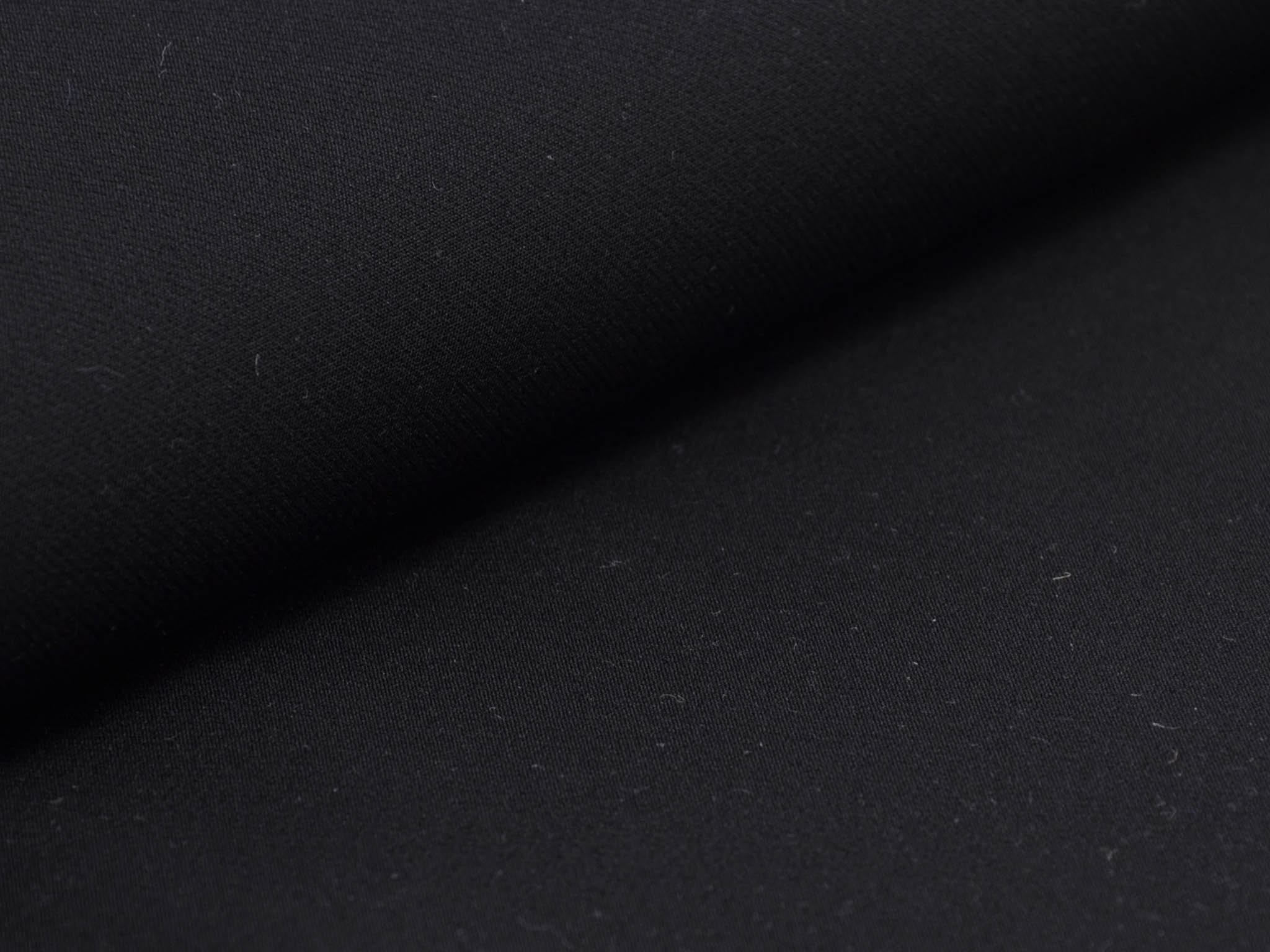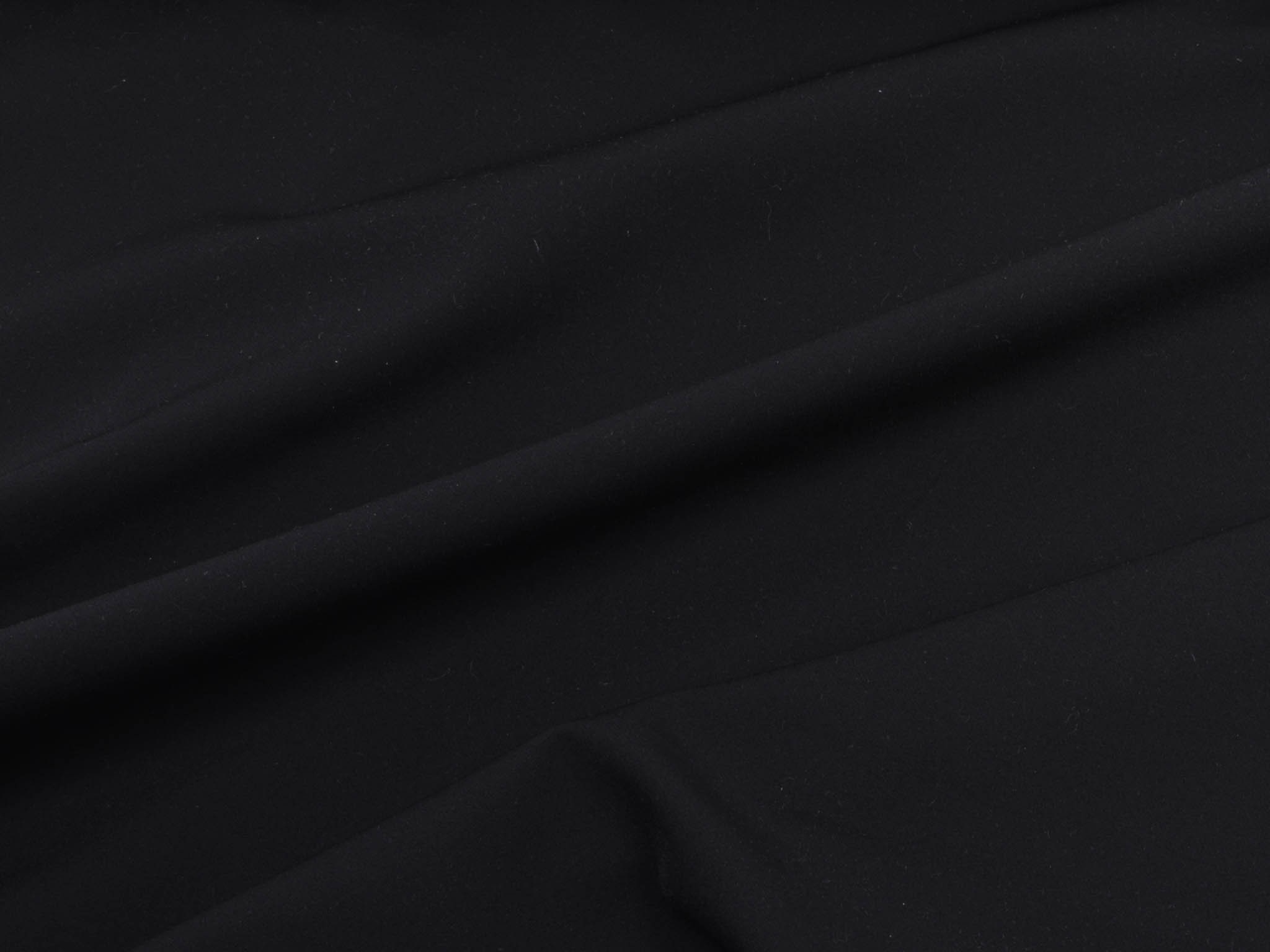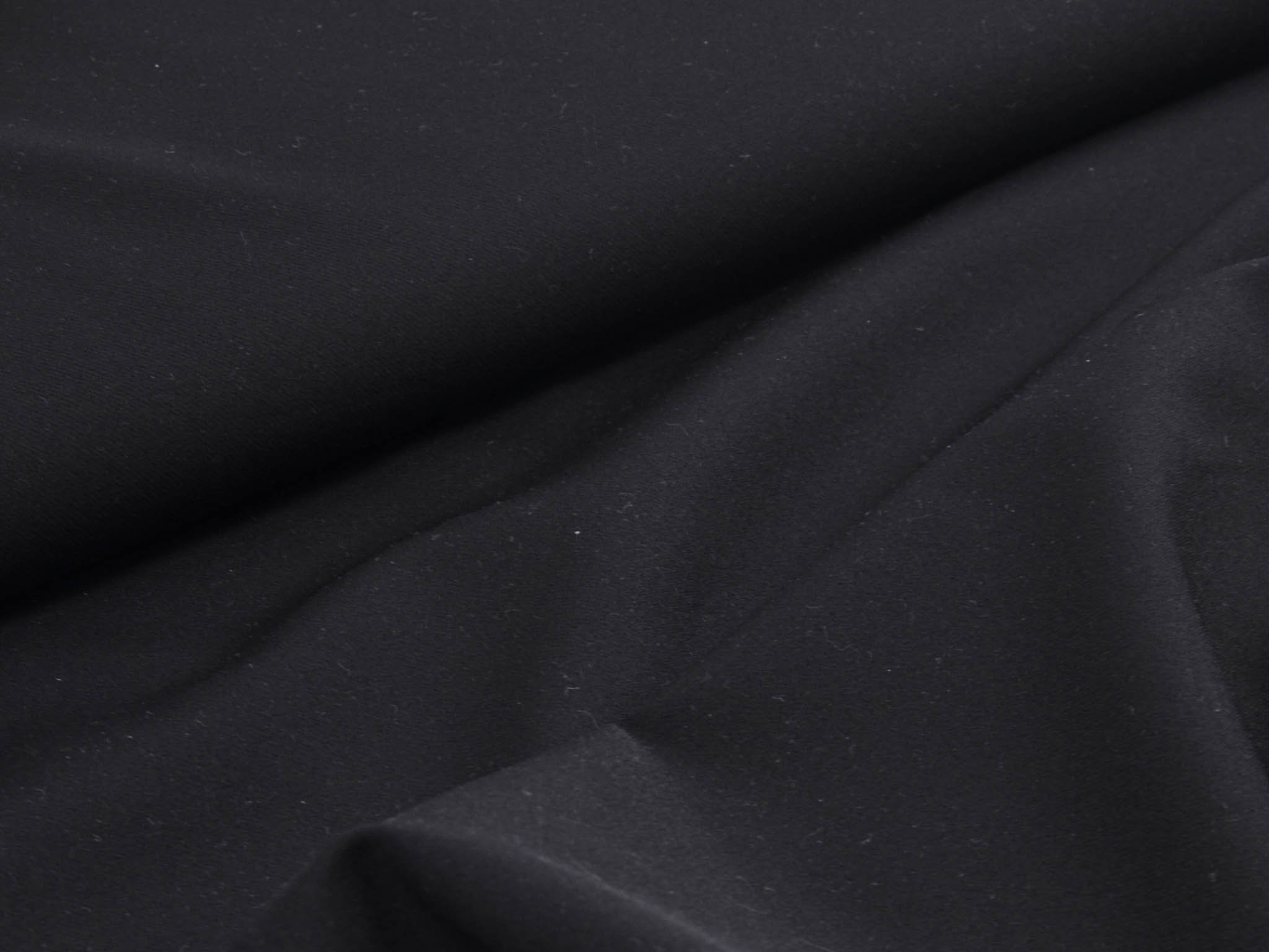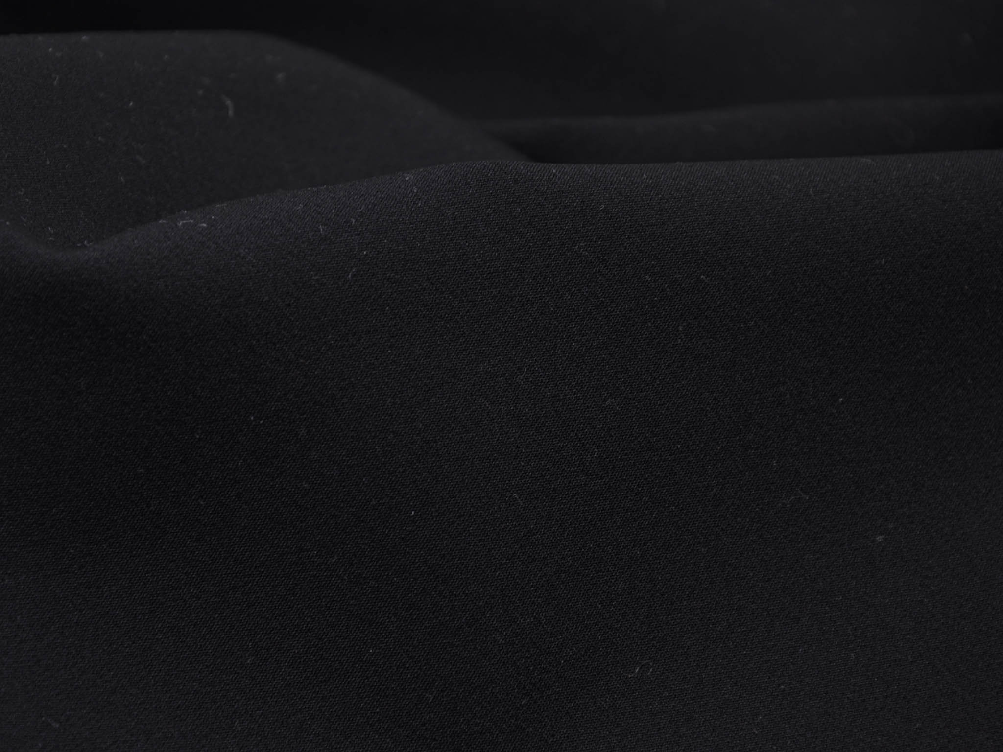 Black polyester fabric. Suitable for skirts, trousers, and dresses.