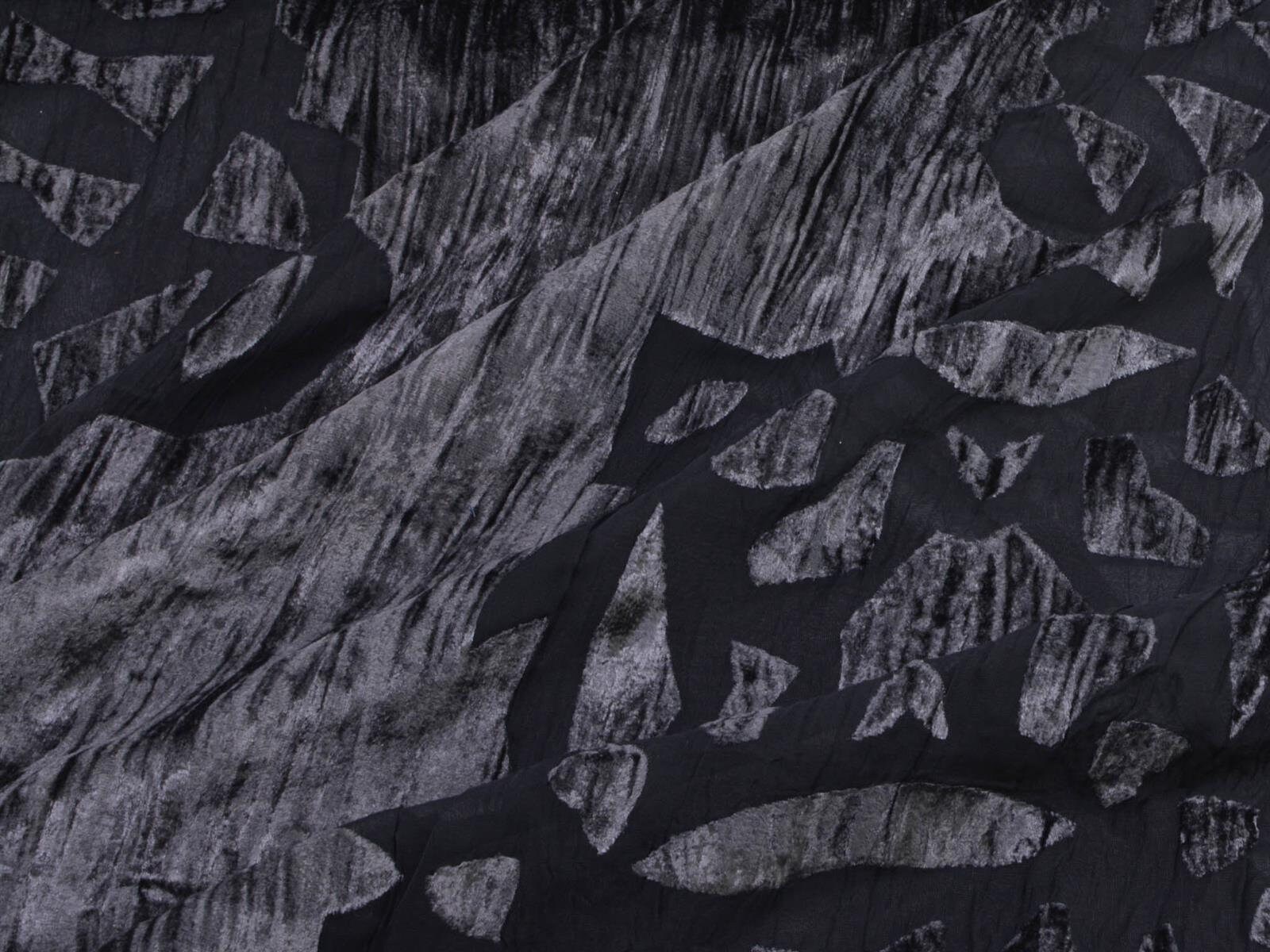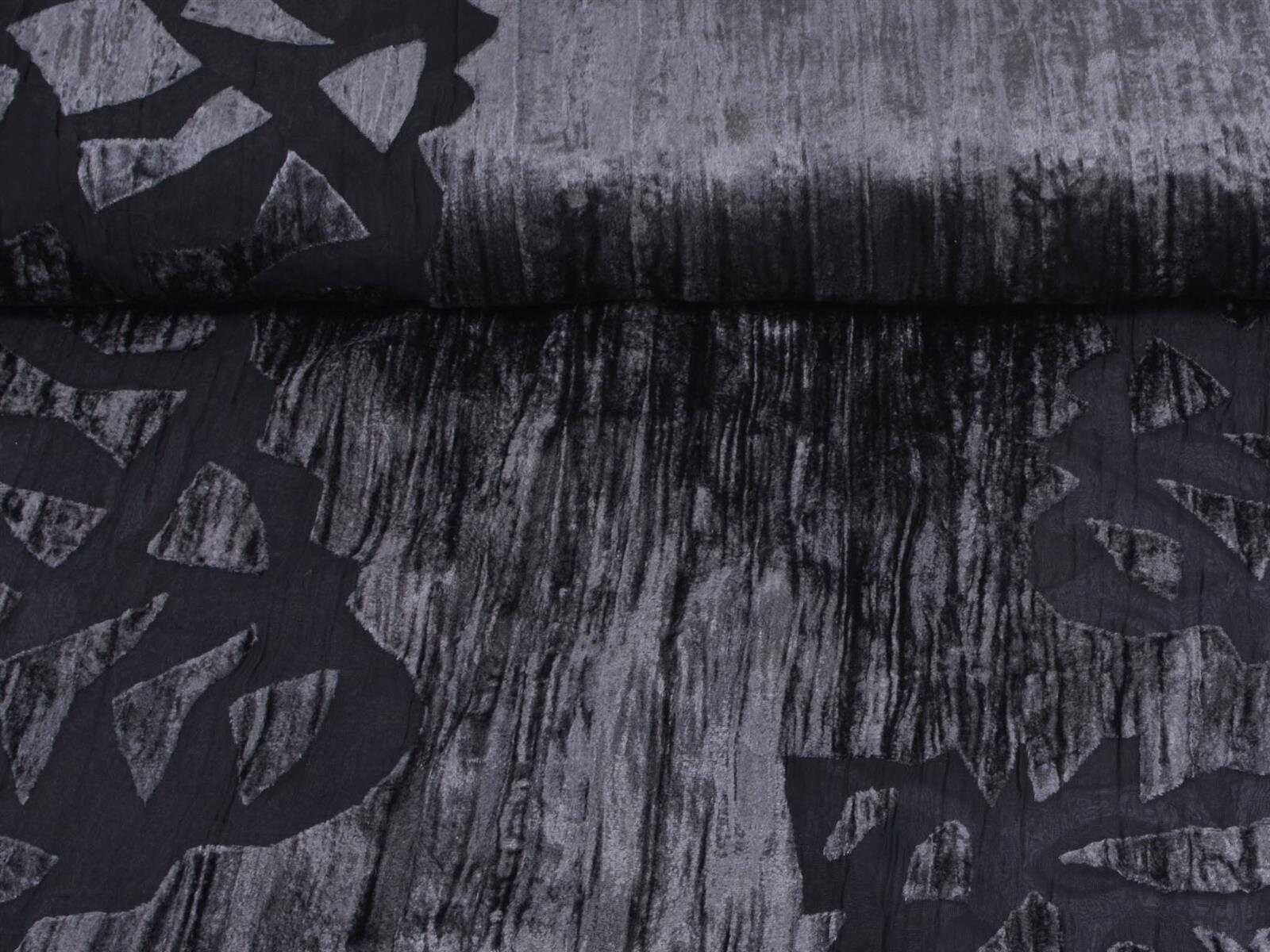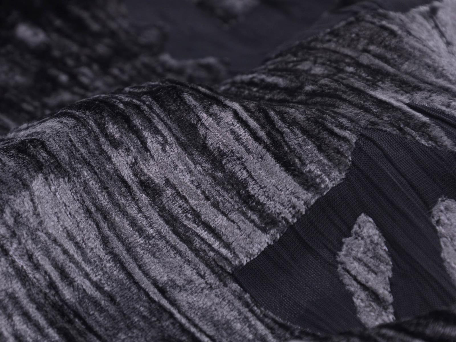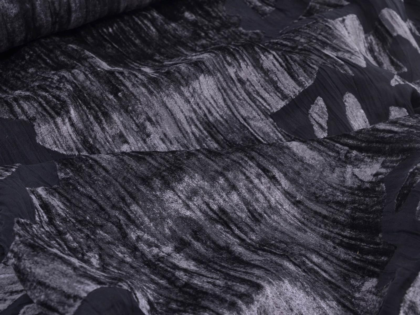 Einzigartiger Designer Stoff Ausbrenner mit Samt Oberseite. Der transparente, top modische, gecrashte Stoff ist toll für Abendmode. Als ausgefallen Jacke über ein Kleid. Oder Long-Cardigan für das gewisse Extra.
