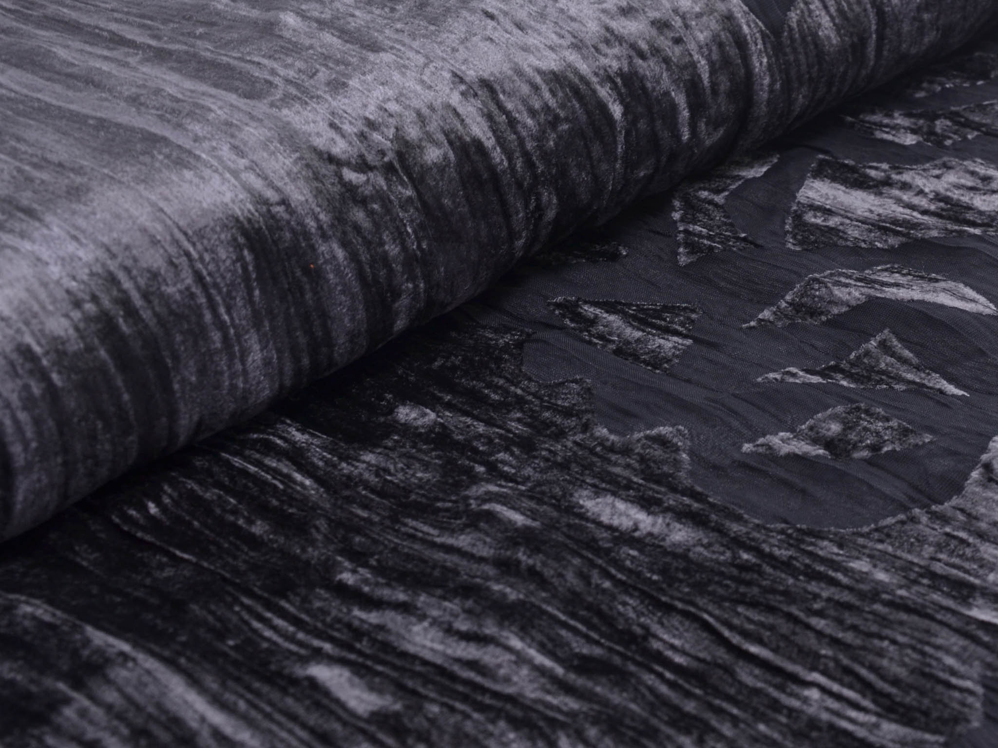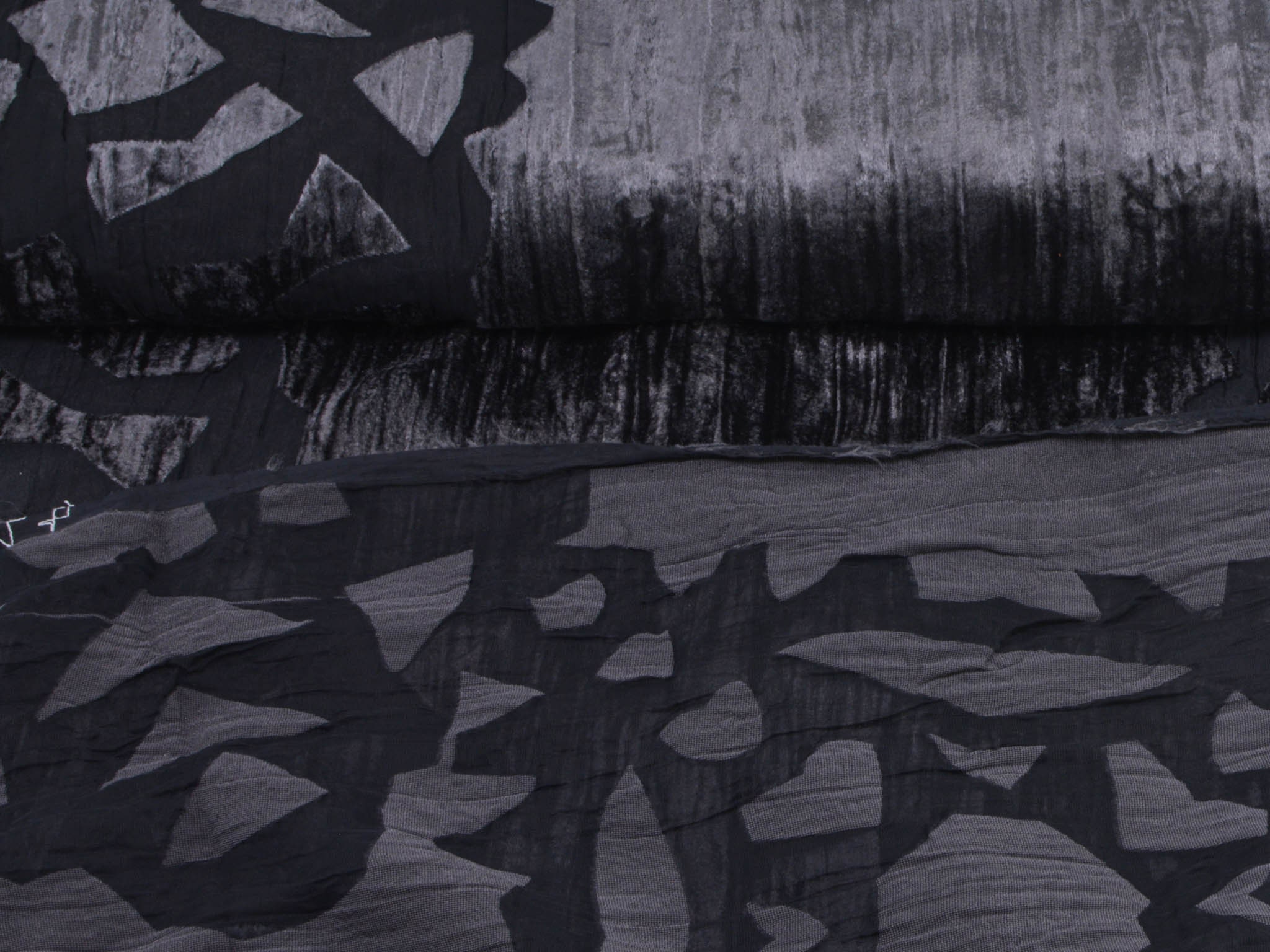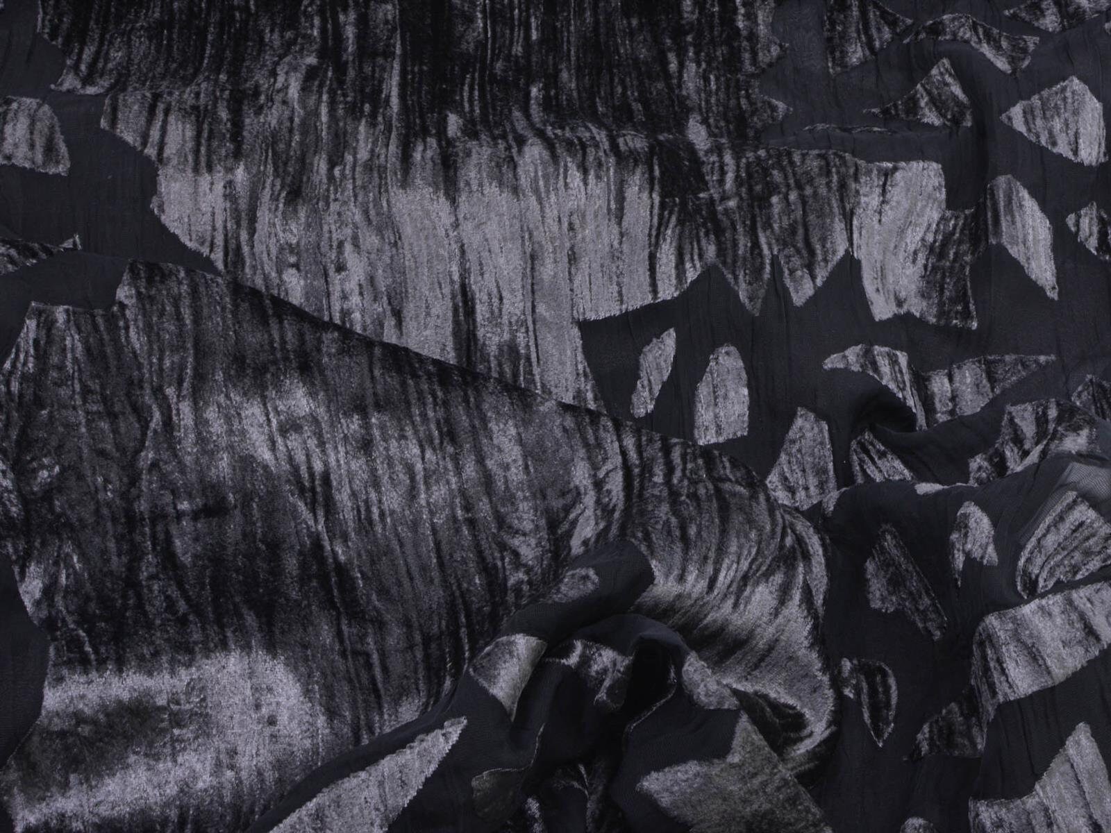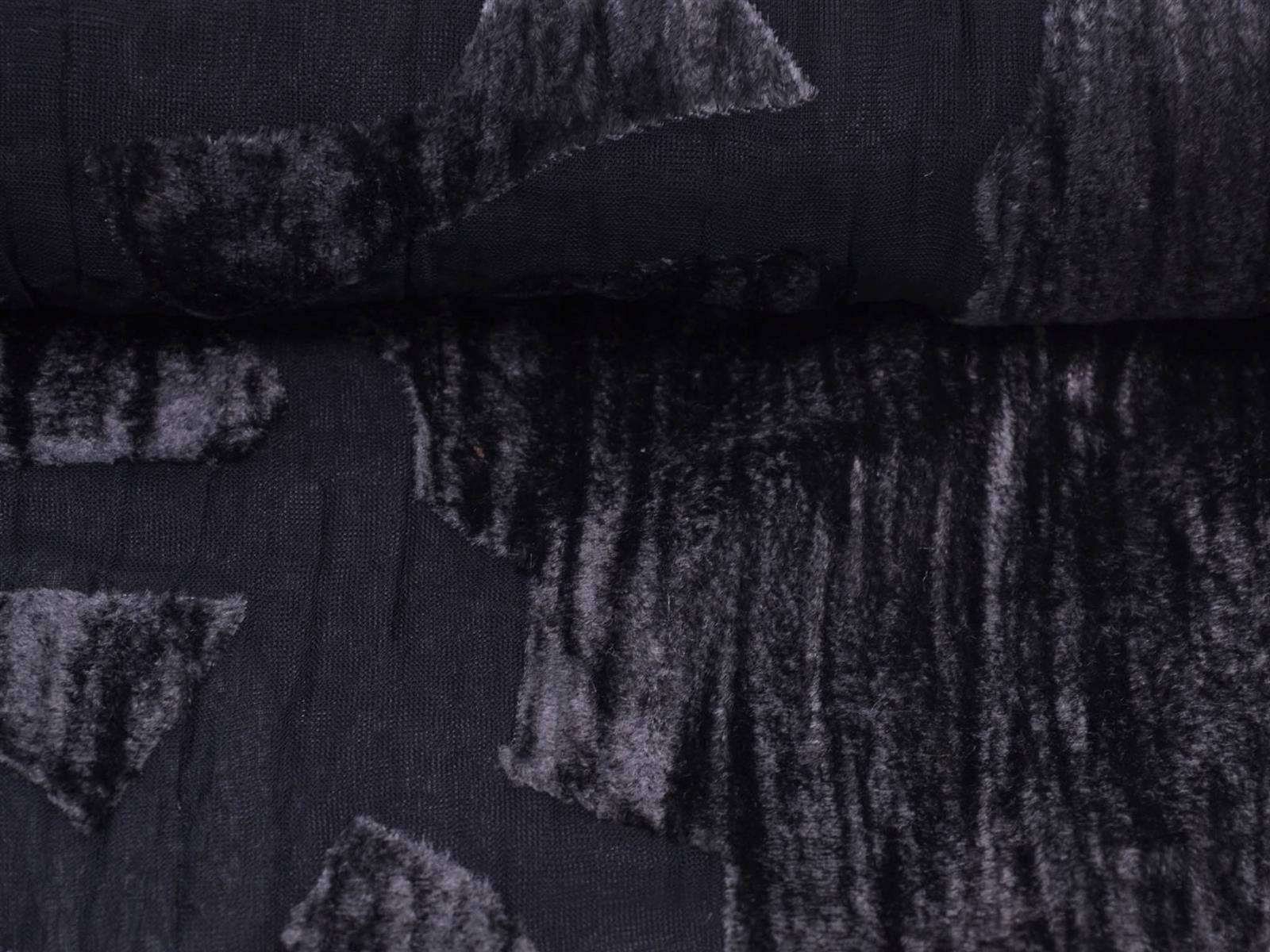 Einzigartiger Designer Stoff Ausbrenner mit Samt Oberseite. Der transparente, top modische, gecrashte Stoff ist toll für Abendmode. Als ausgefallen Jacke über ein Kleid. Oder Long-Cardigan für das gewisse Extra.