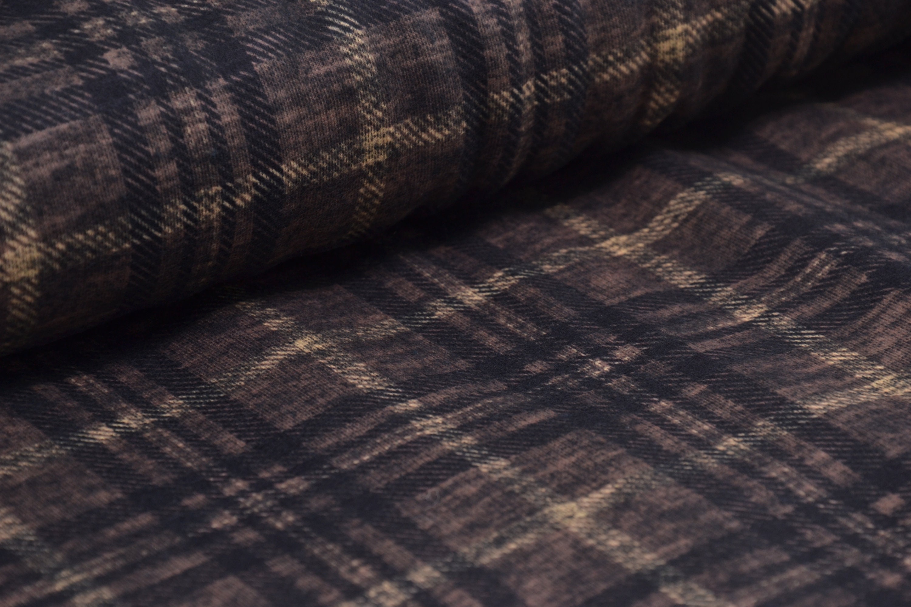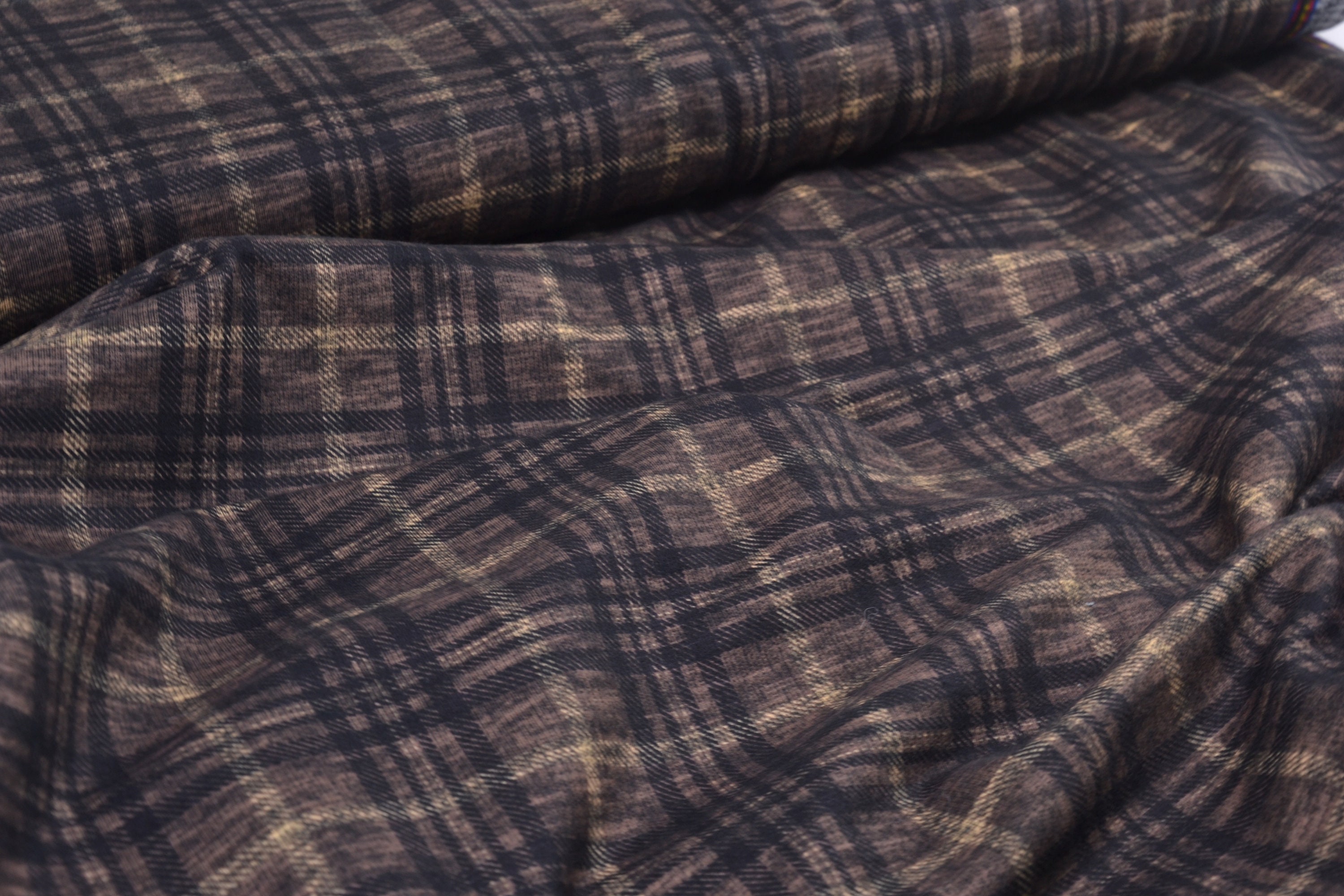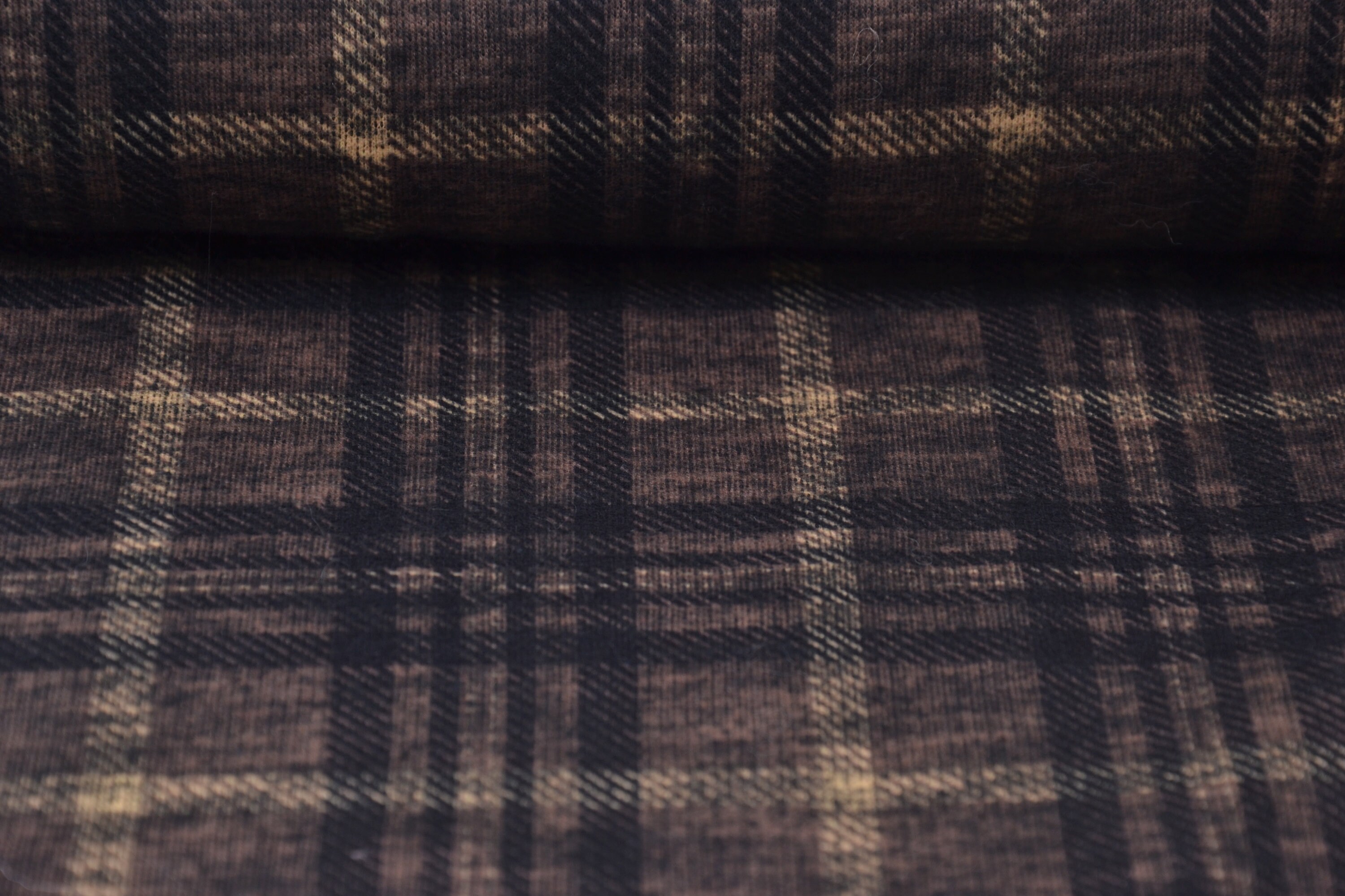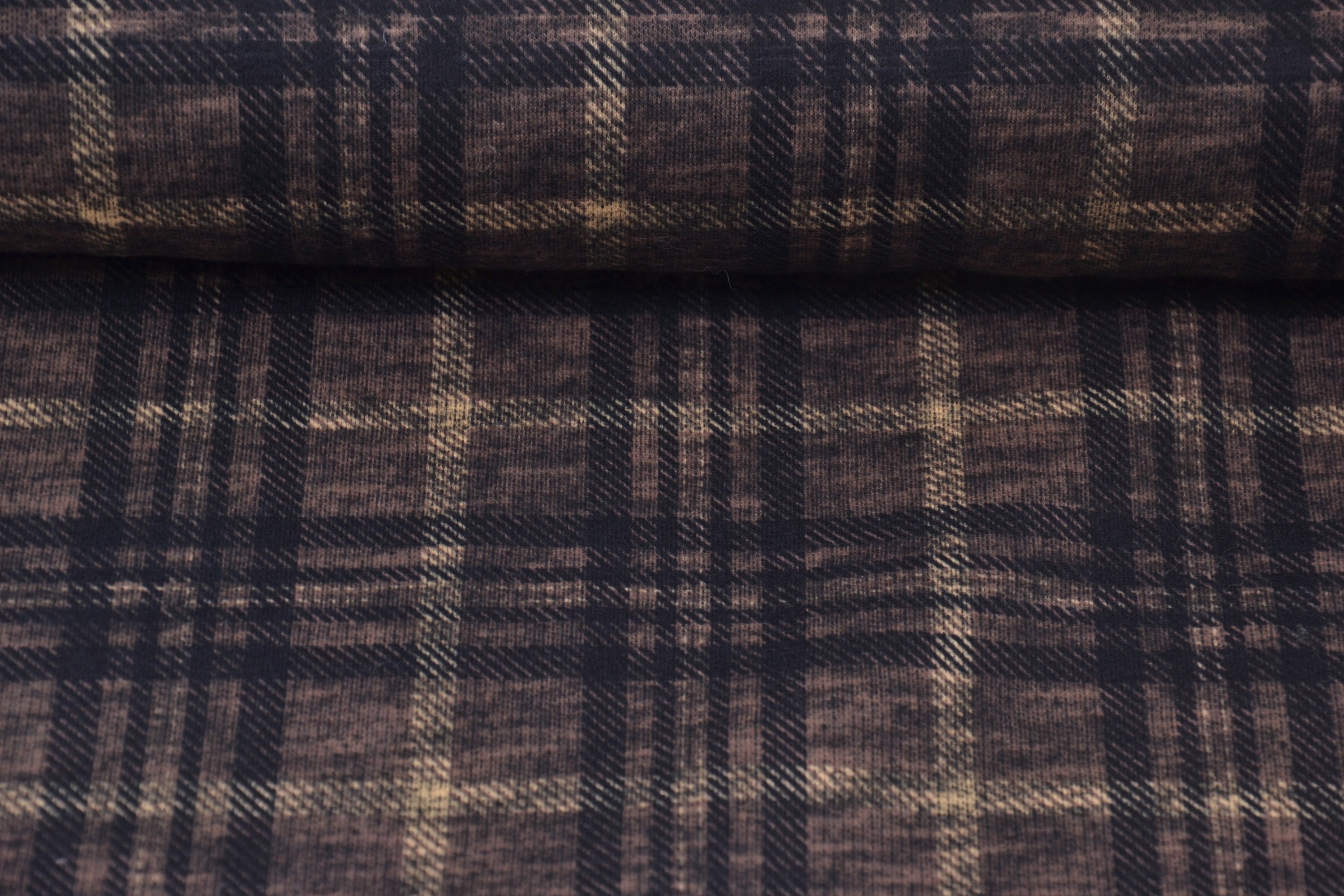 Strick Stoff in braun mit Karo-Muster. Der Strick eignet sich wunderbar zum Nähen von Oberteilen, Kleidern und Röcken.