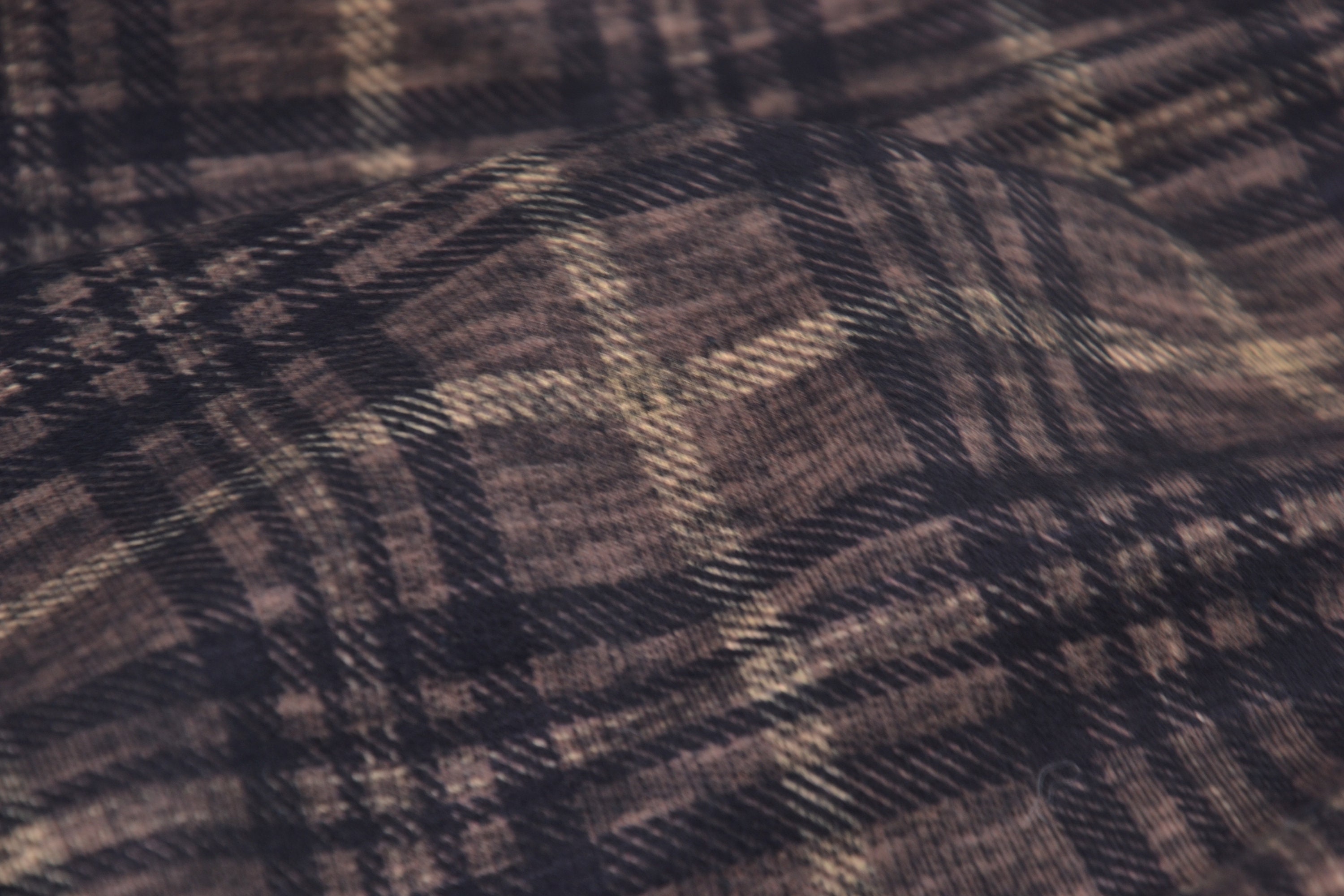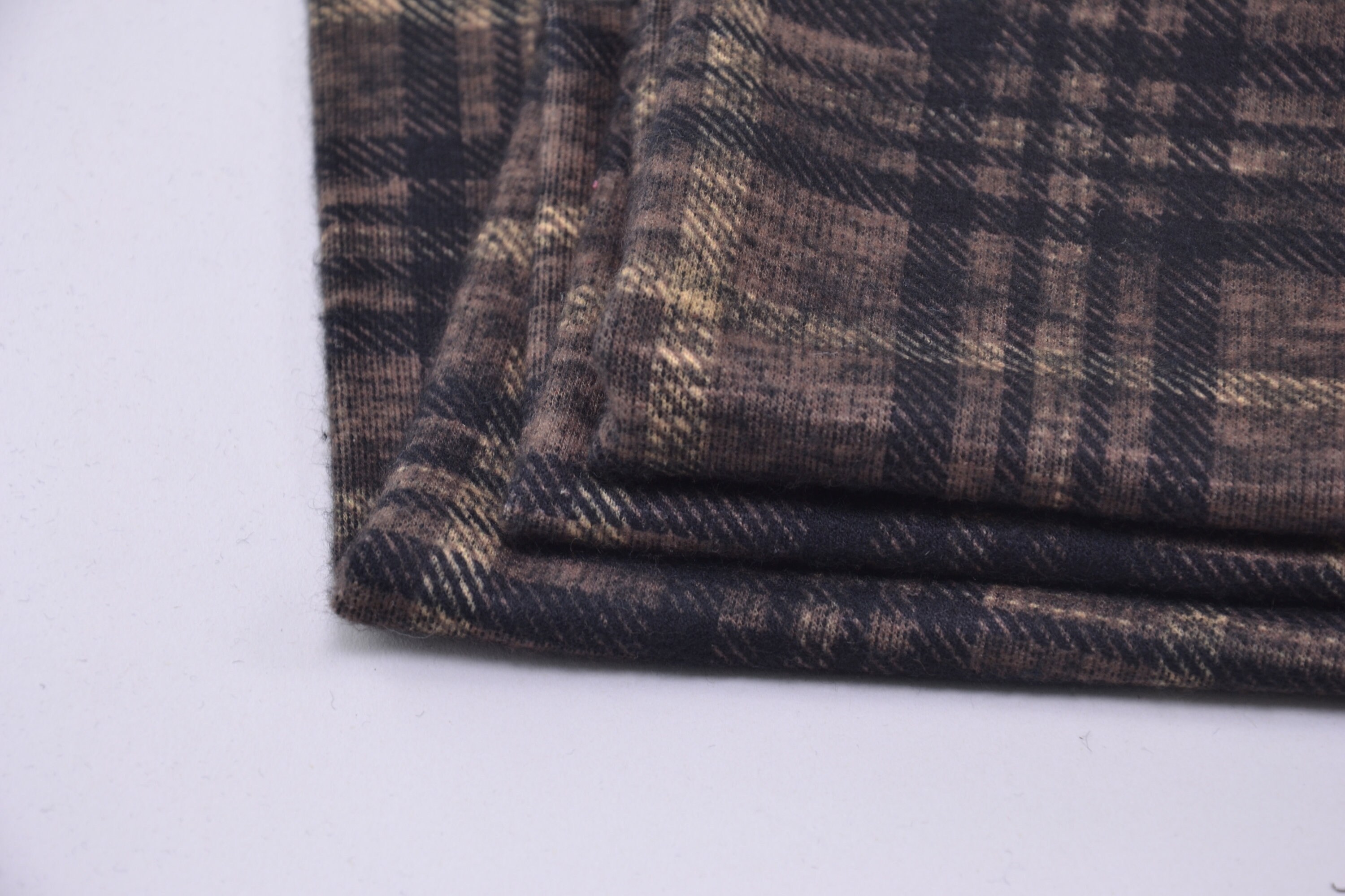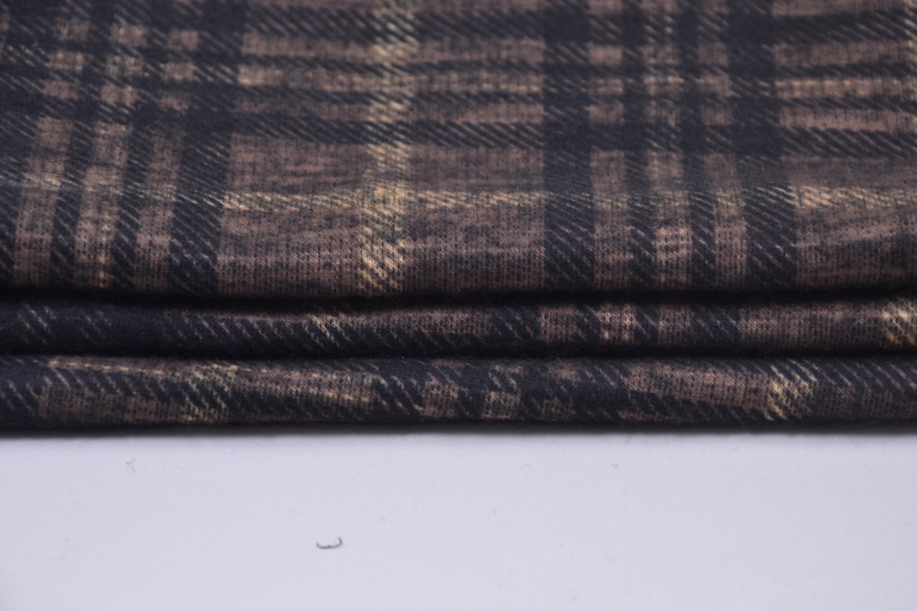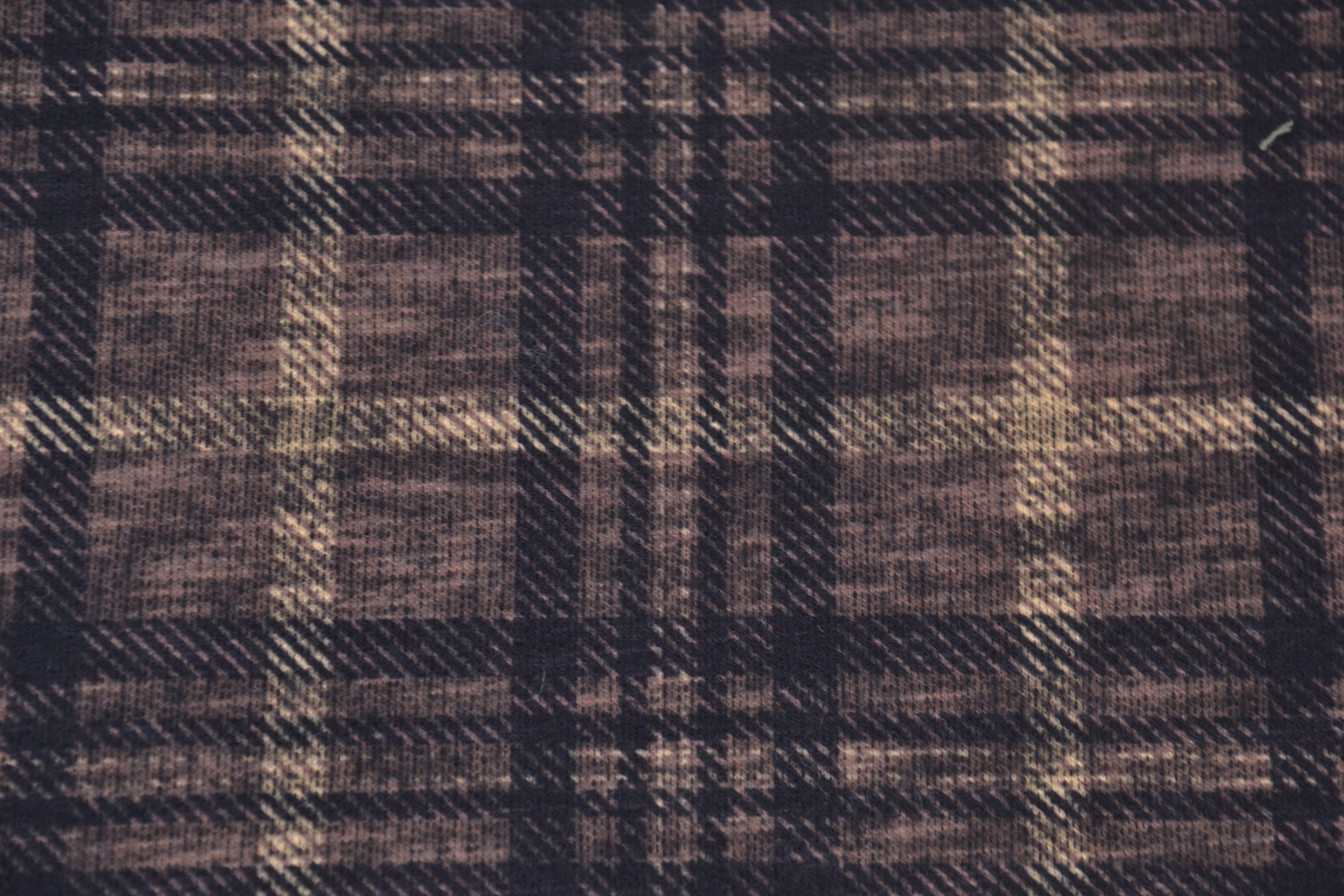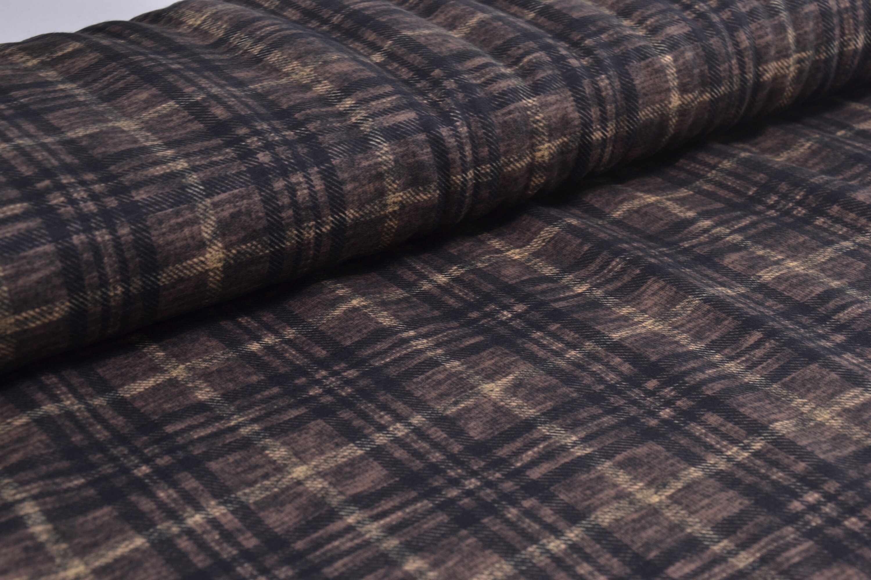 Strick Stoff in braun mit Karo-Muster. Der Strick eignet sich wunderbar zum Nähen von Oberteilen, Kleidern und Röcken.