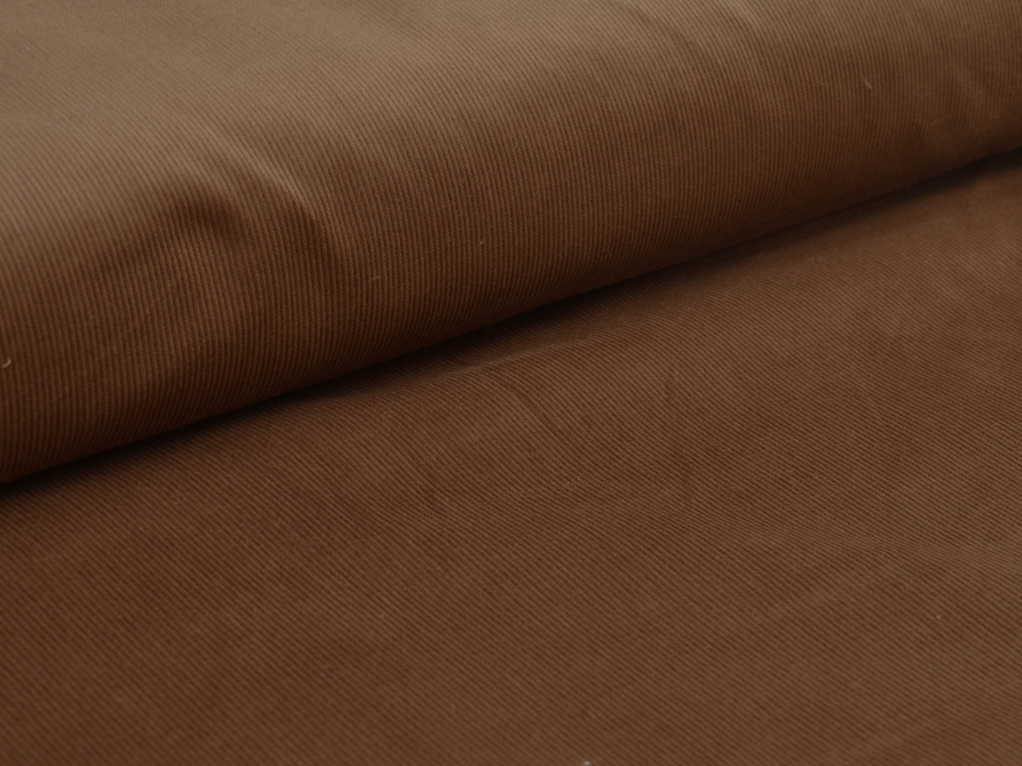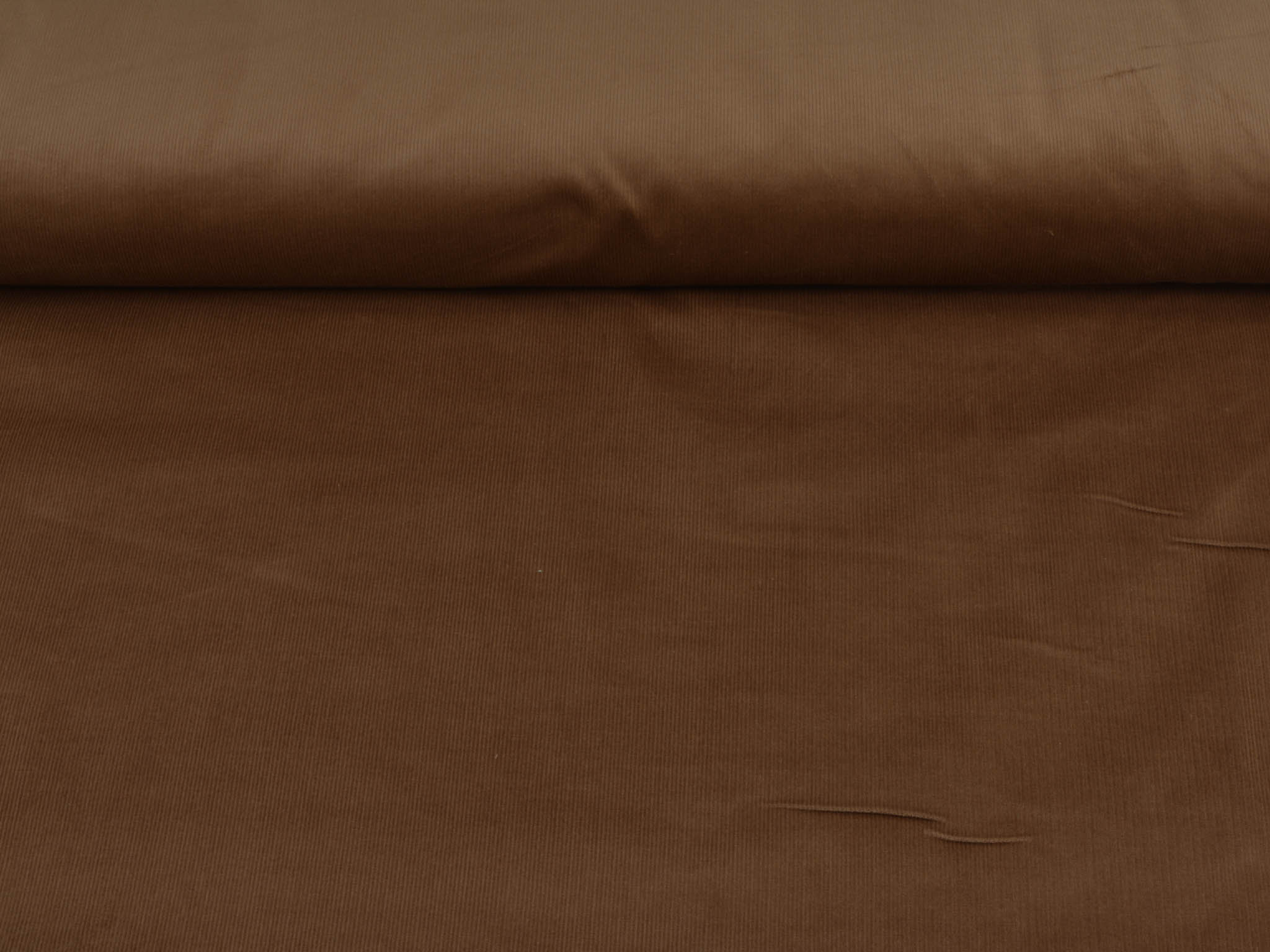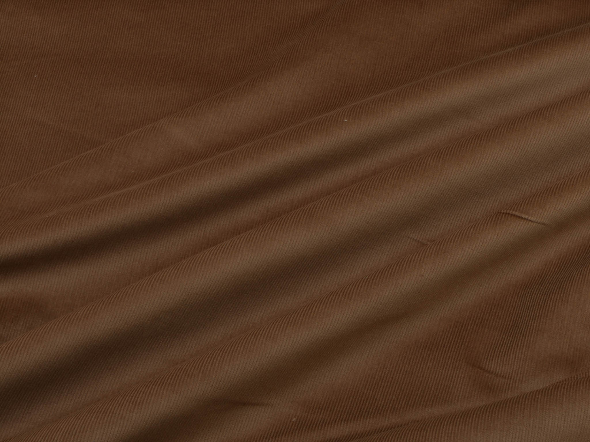 Solid brown corduroy fabric. This narrow corduroy fabric is perfect for sewing pants, skirts, and dresses. The stretch content provides a great feel.