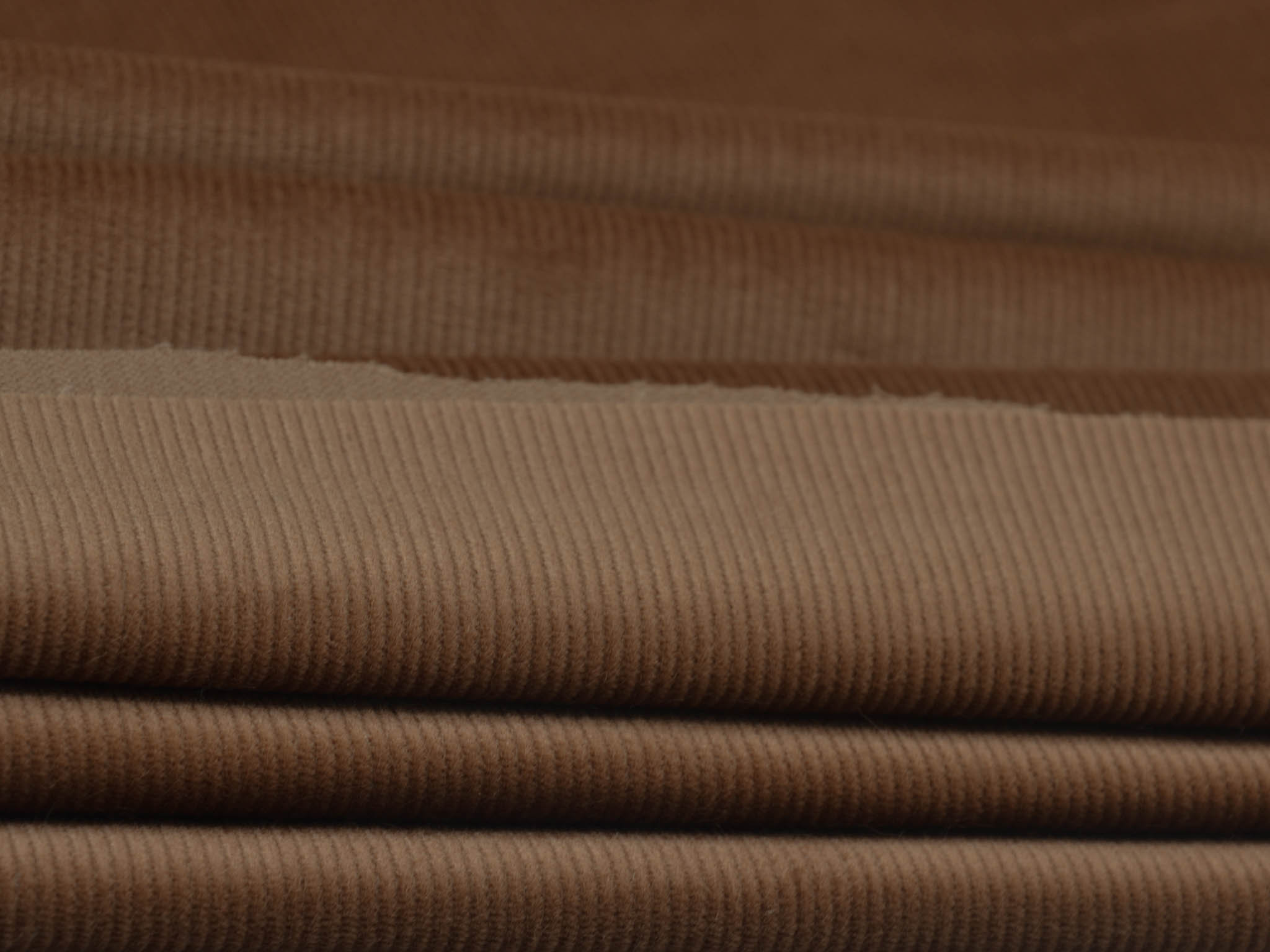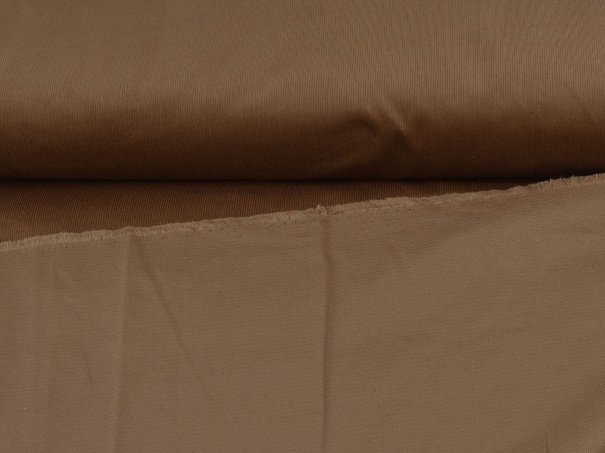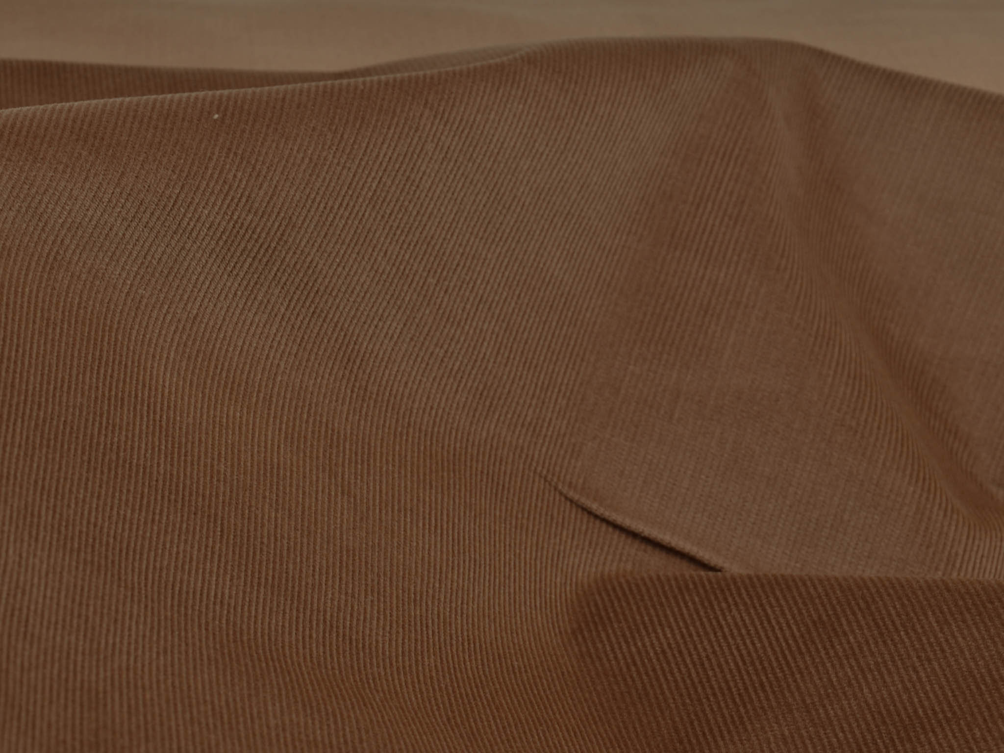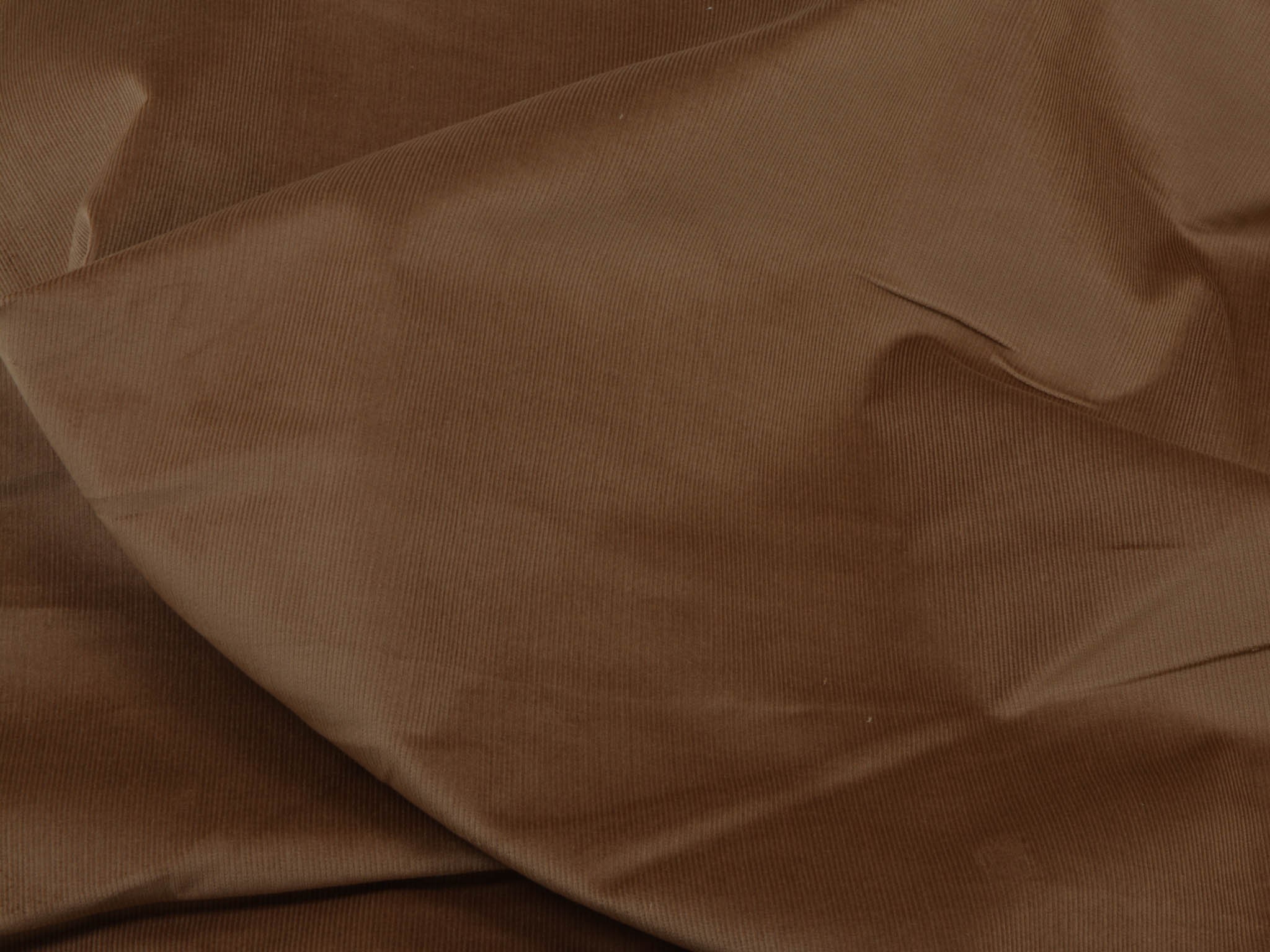 Solid brown corduroy fabric. This narrow corduroy fabric is perfect for sewing pants, skirts, and dresses. The stretch content provides a great feel.