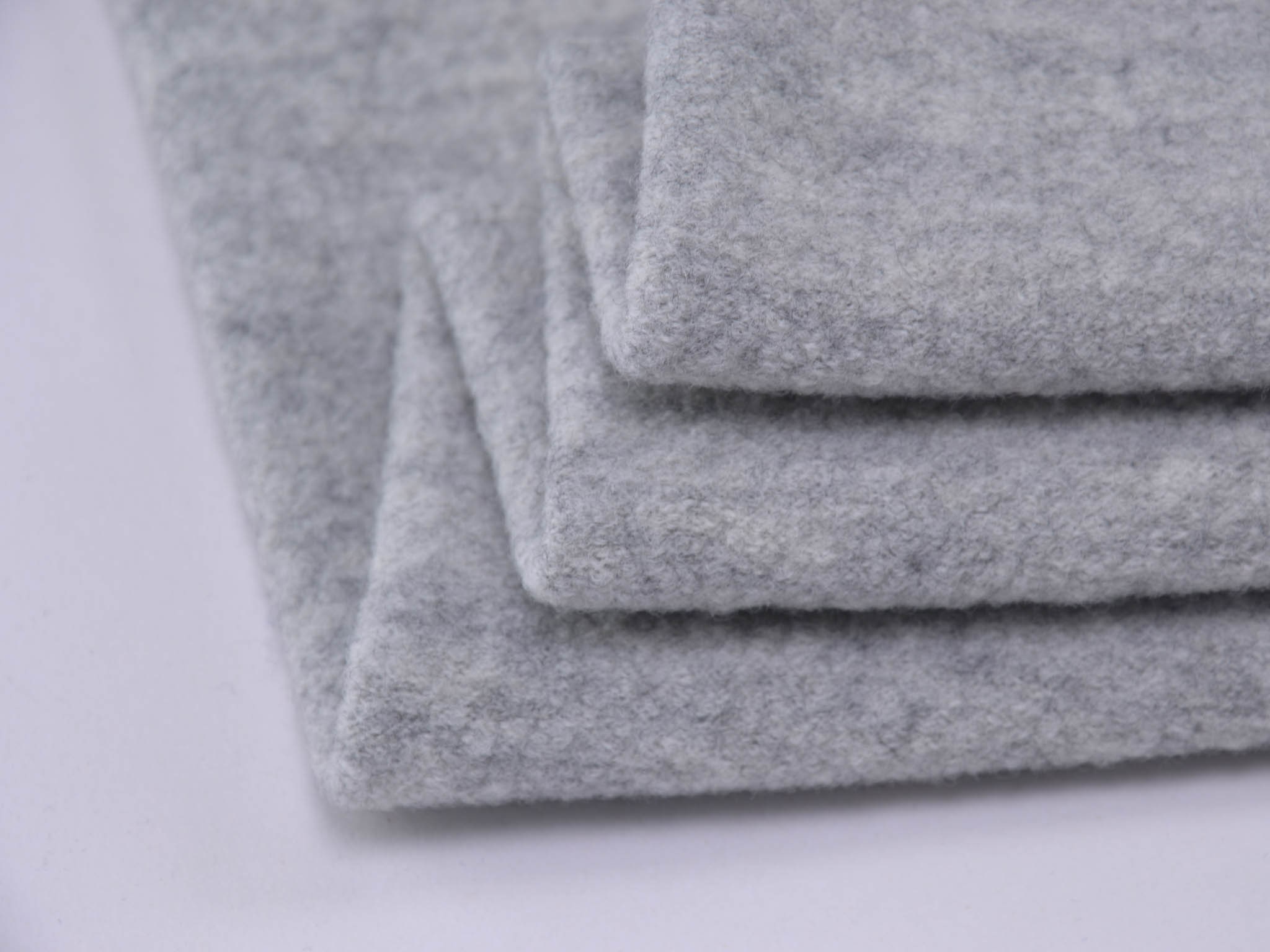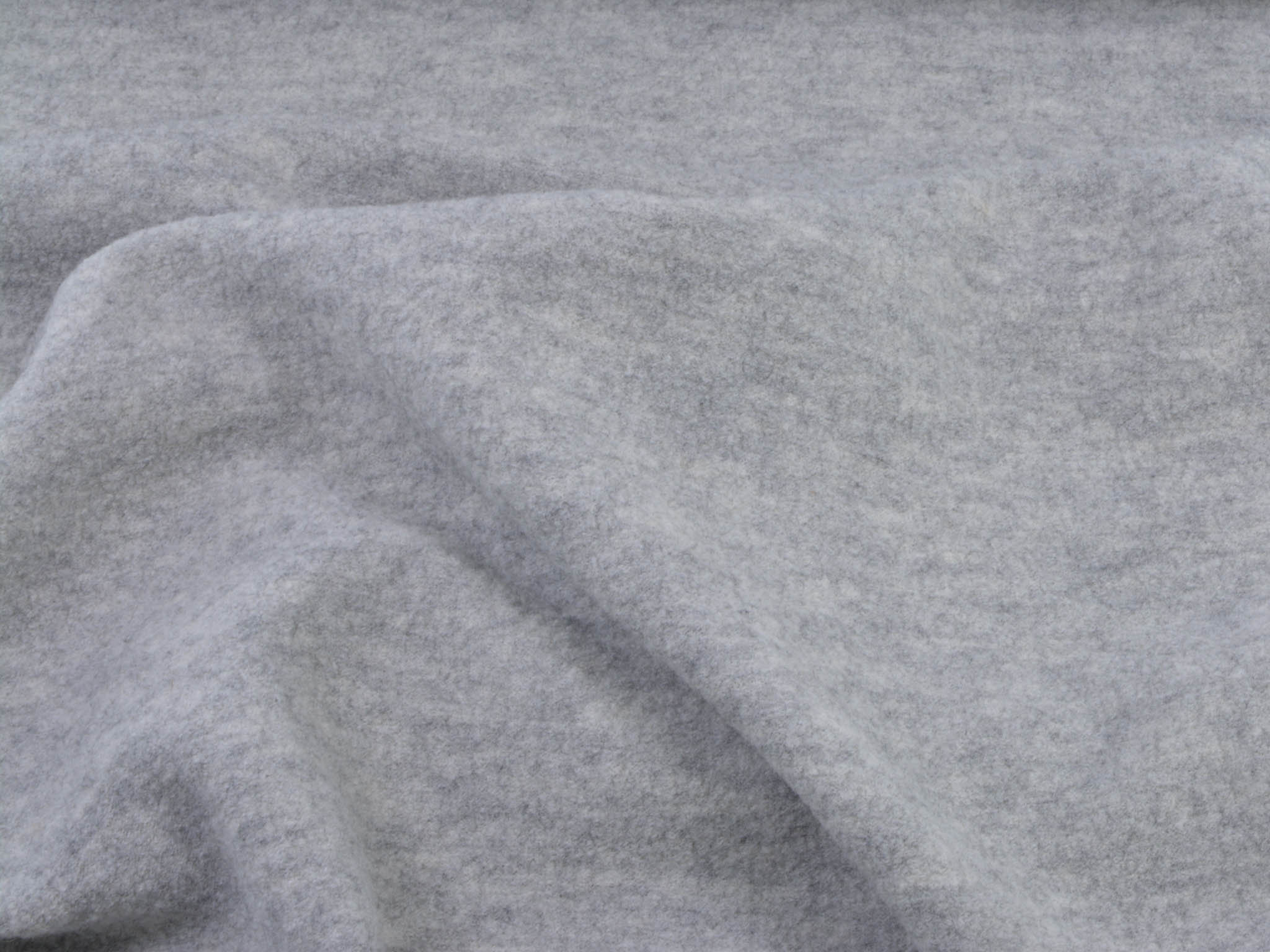 Mantelstoff aus Schurwolle in hellgrau. Der Walkstoff eignet sich für Jacken, Mäntel, Hosen und vieles mehr.