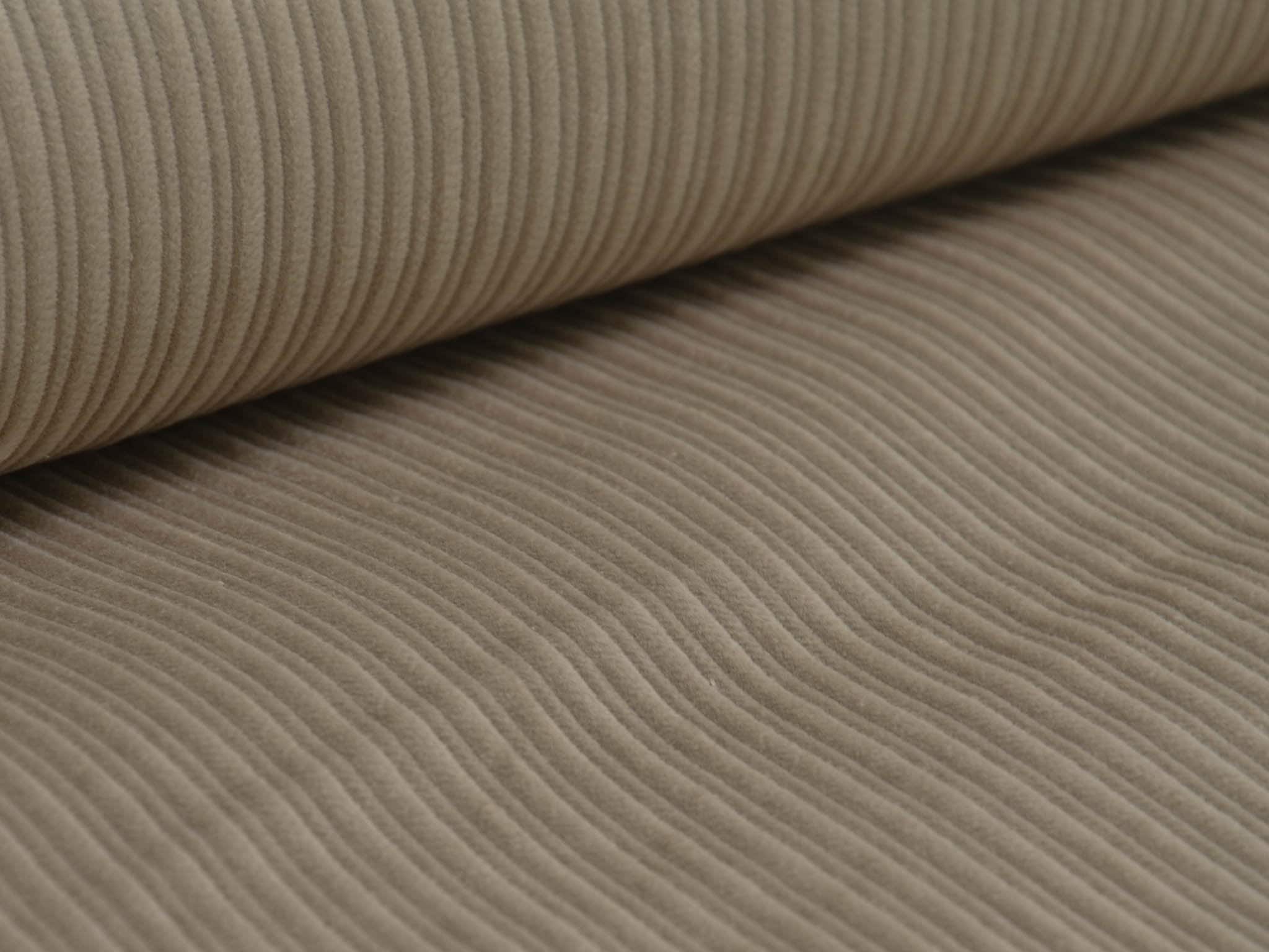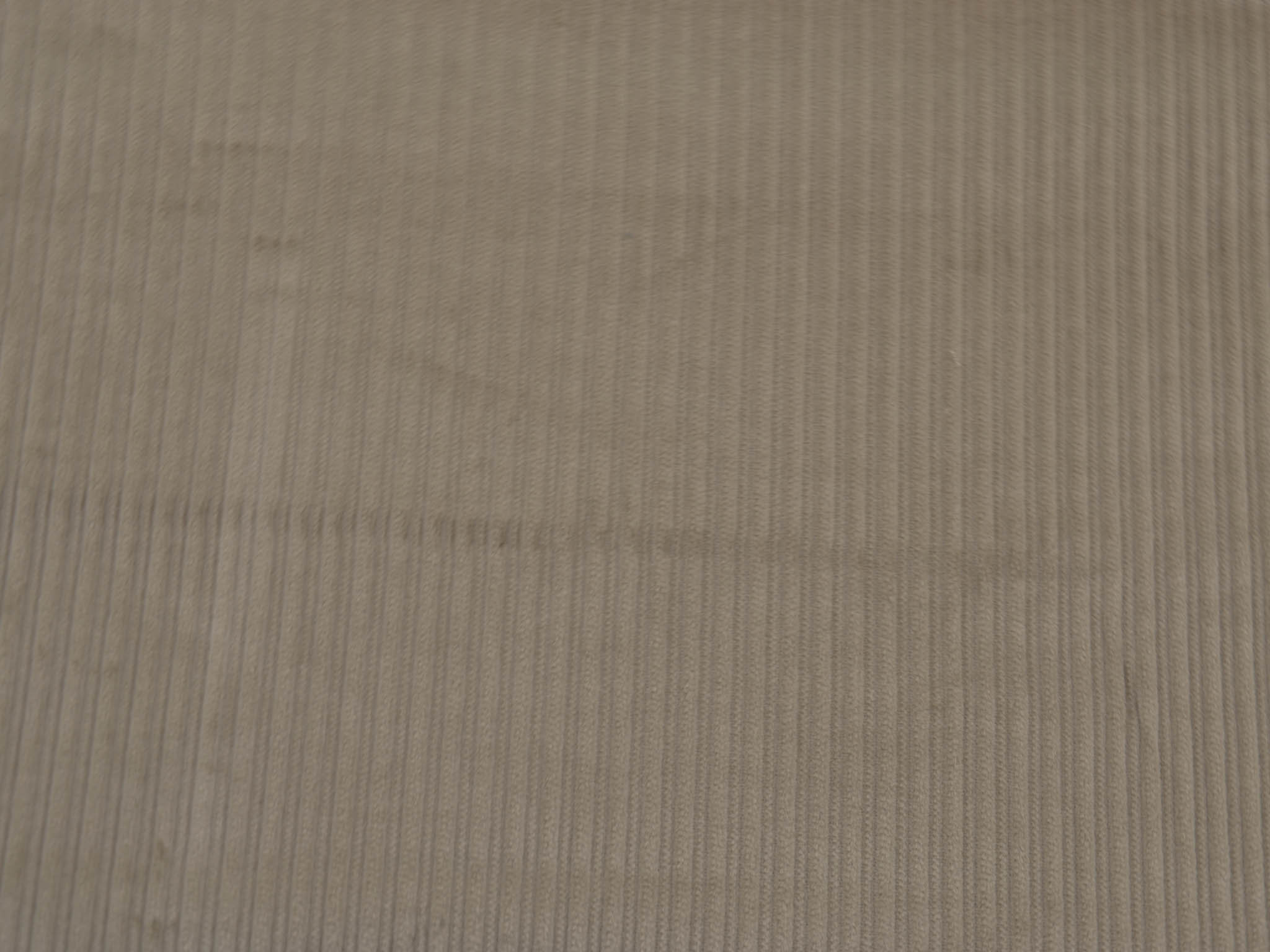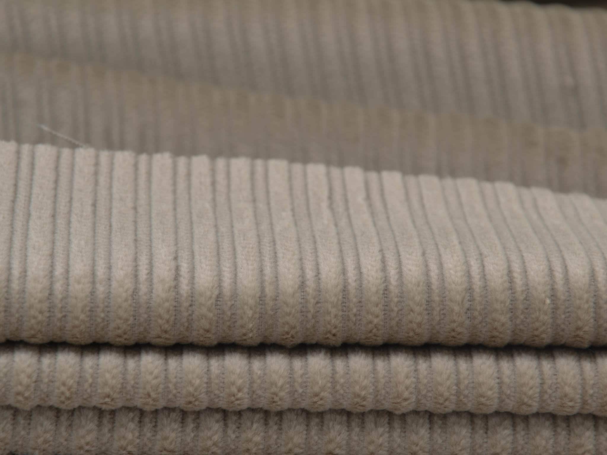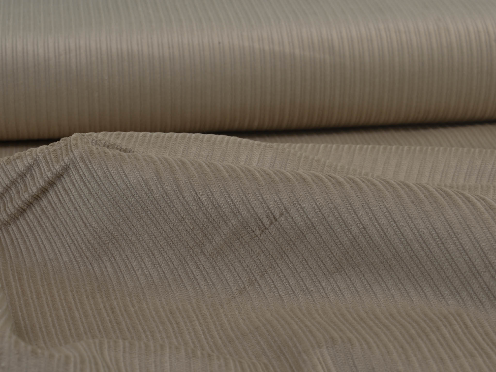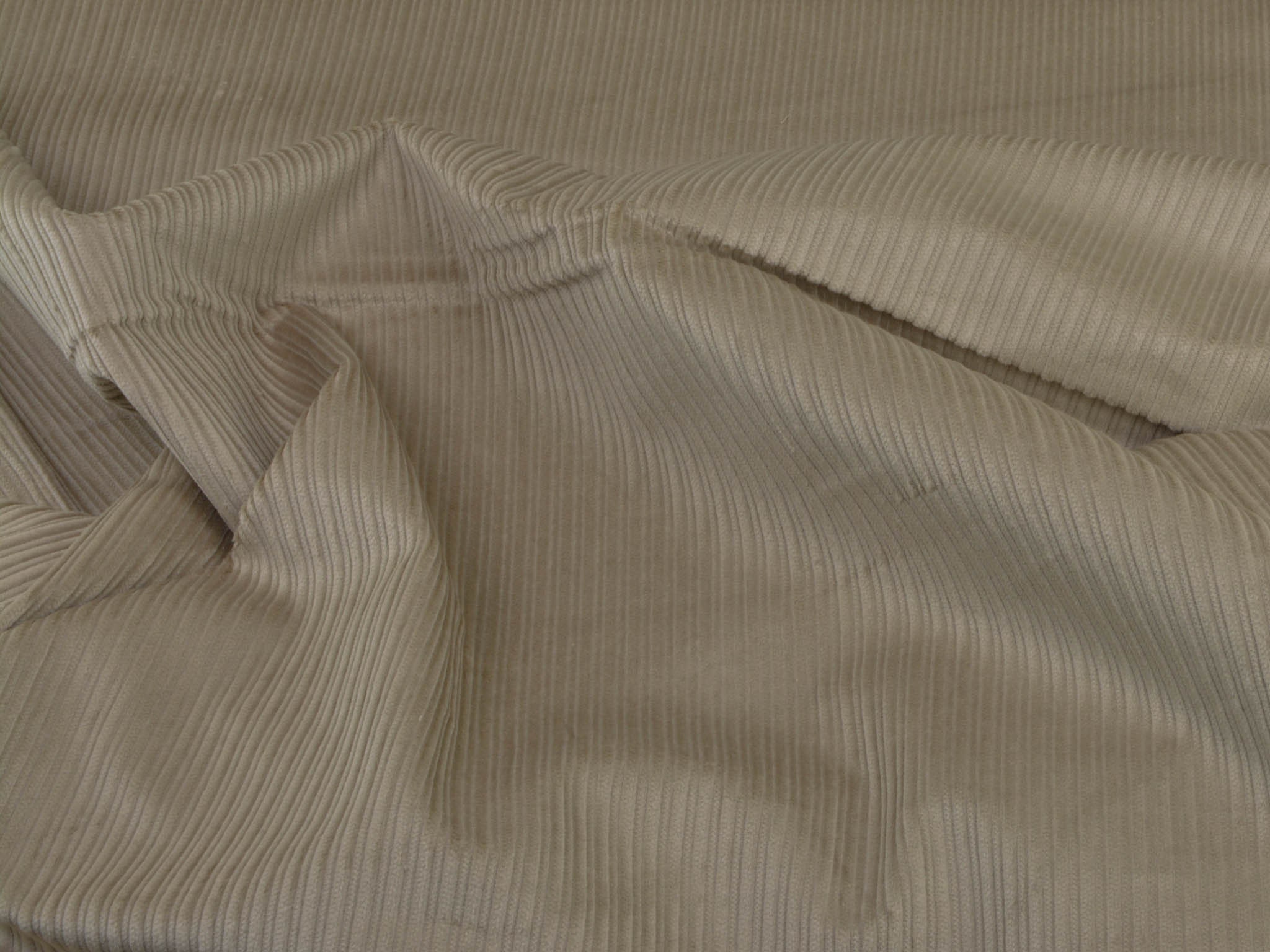 Solid beige corduroy fabric. This corduroy fabric is perfect for sewing pants, skirts, and dresses. The stretch content provides a great feel.