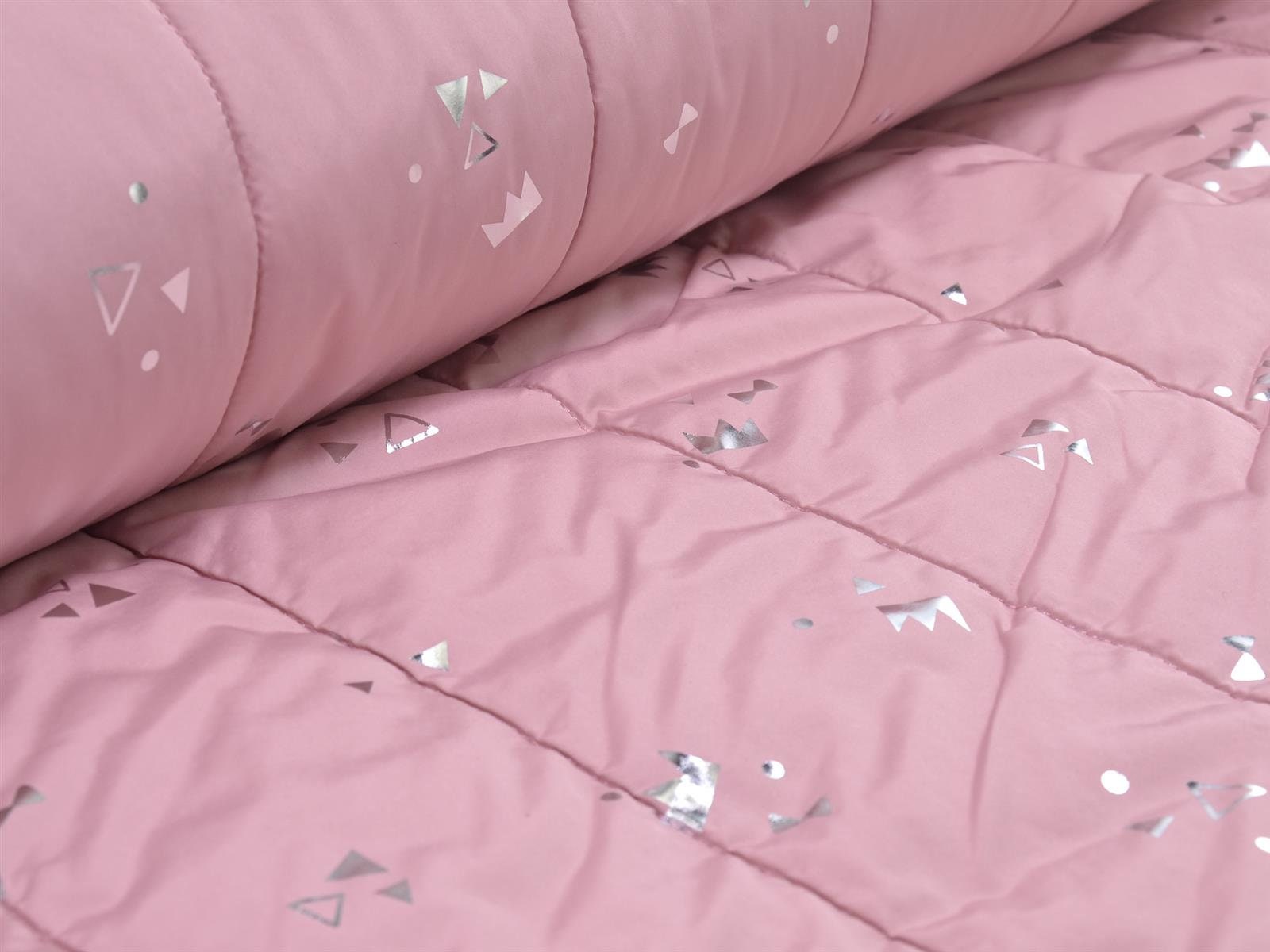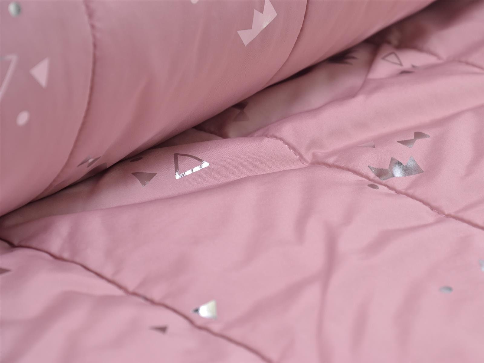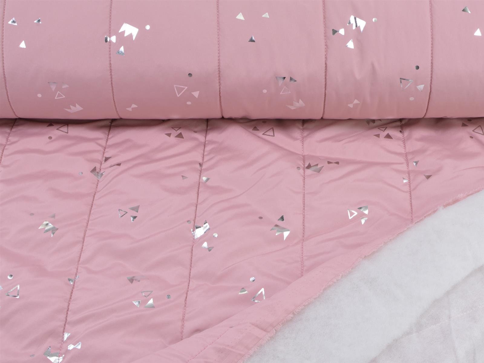 Pink quilted fabric with small crown motifs in silver. A very special fabric for sewing warm clothing or accessories like baby rompers.