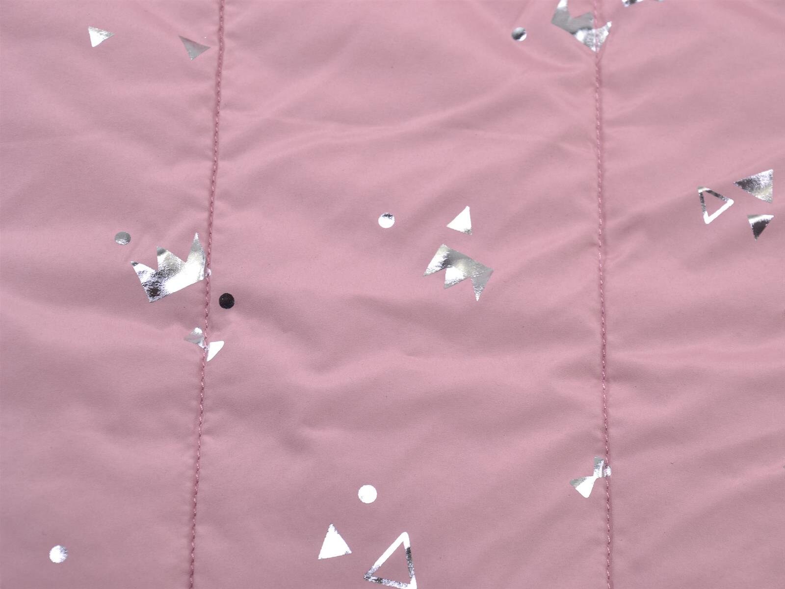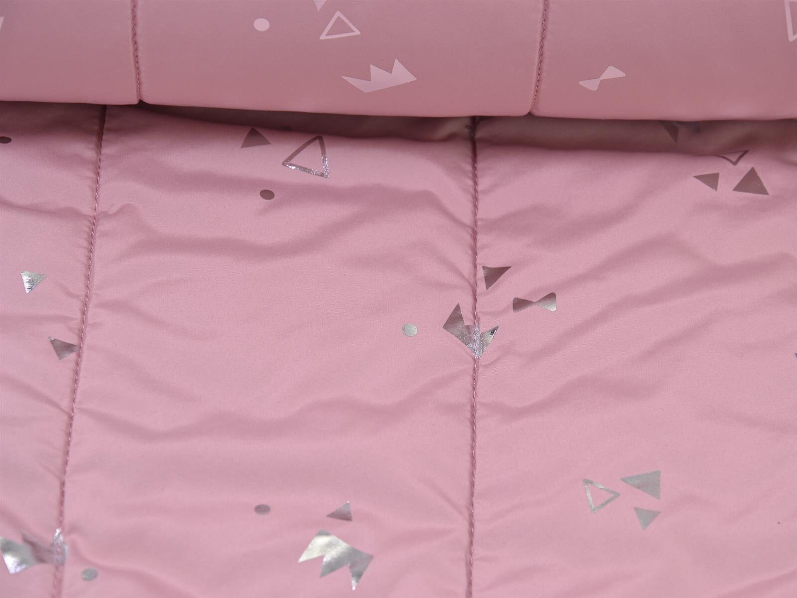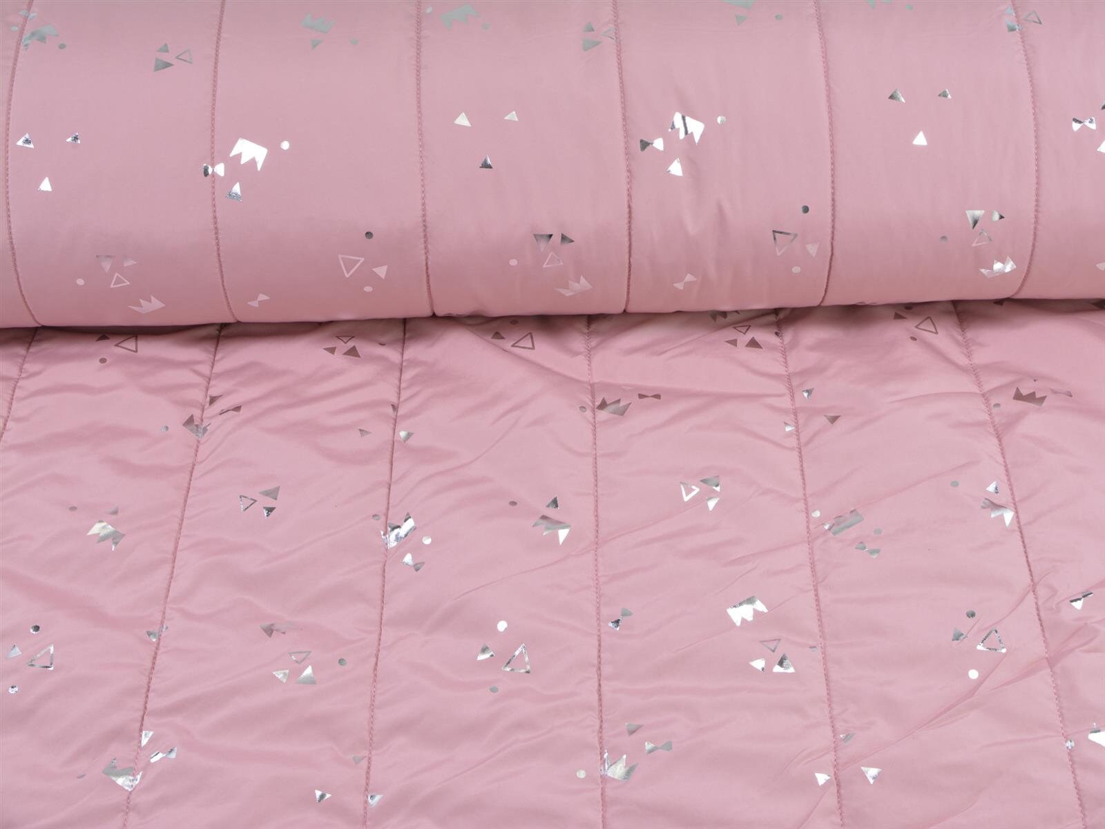 Pink quilted fabric with small crown motifs in silver. A very special fabric for sewing warm clothing or accessories like baby rompers.