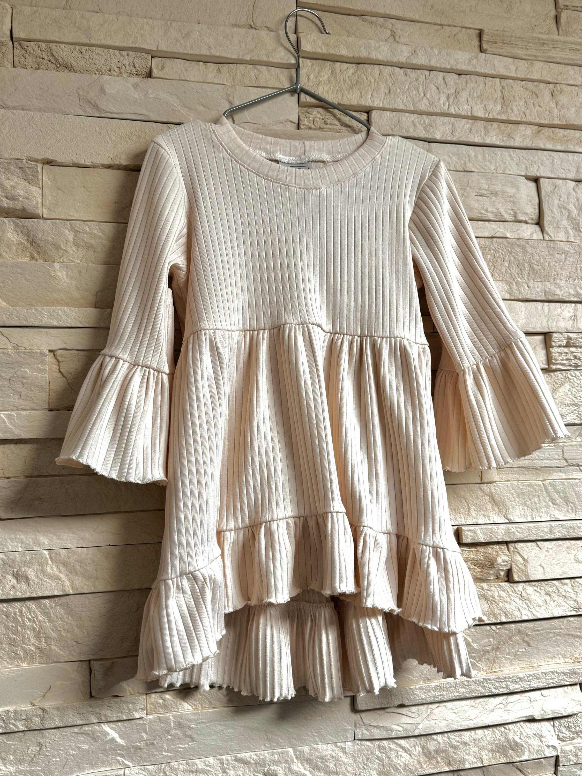 Both options are available for the dress. Simple with 2 gathered flounces that are sewn together. It becomes more playful if a ruffle is sewn onto the lower flounce of the dress.