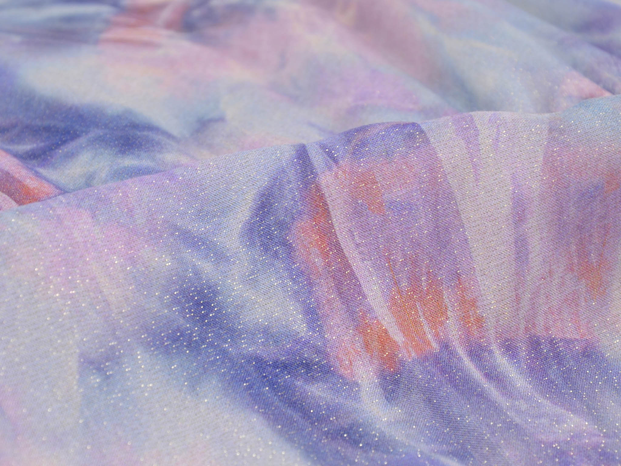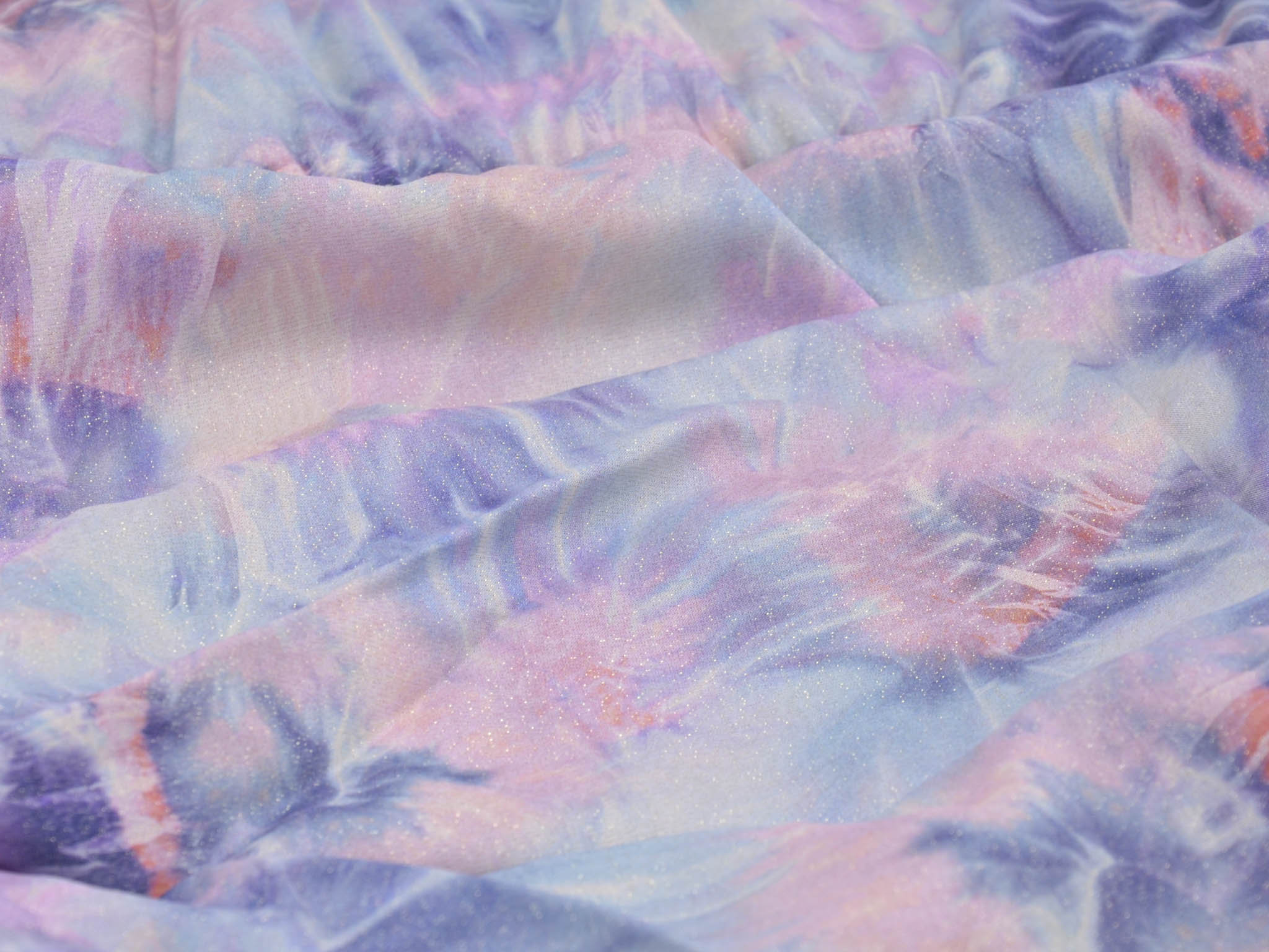 Hochwertige, bedruckte Viskose mit Glitzer-Batik-Muster aus dem Hause Hilco. Der leichte Sommerstoff eignet sich perfekt zum Nähen von Röcken, Kleidern, Blusen und vielem mehr.