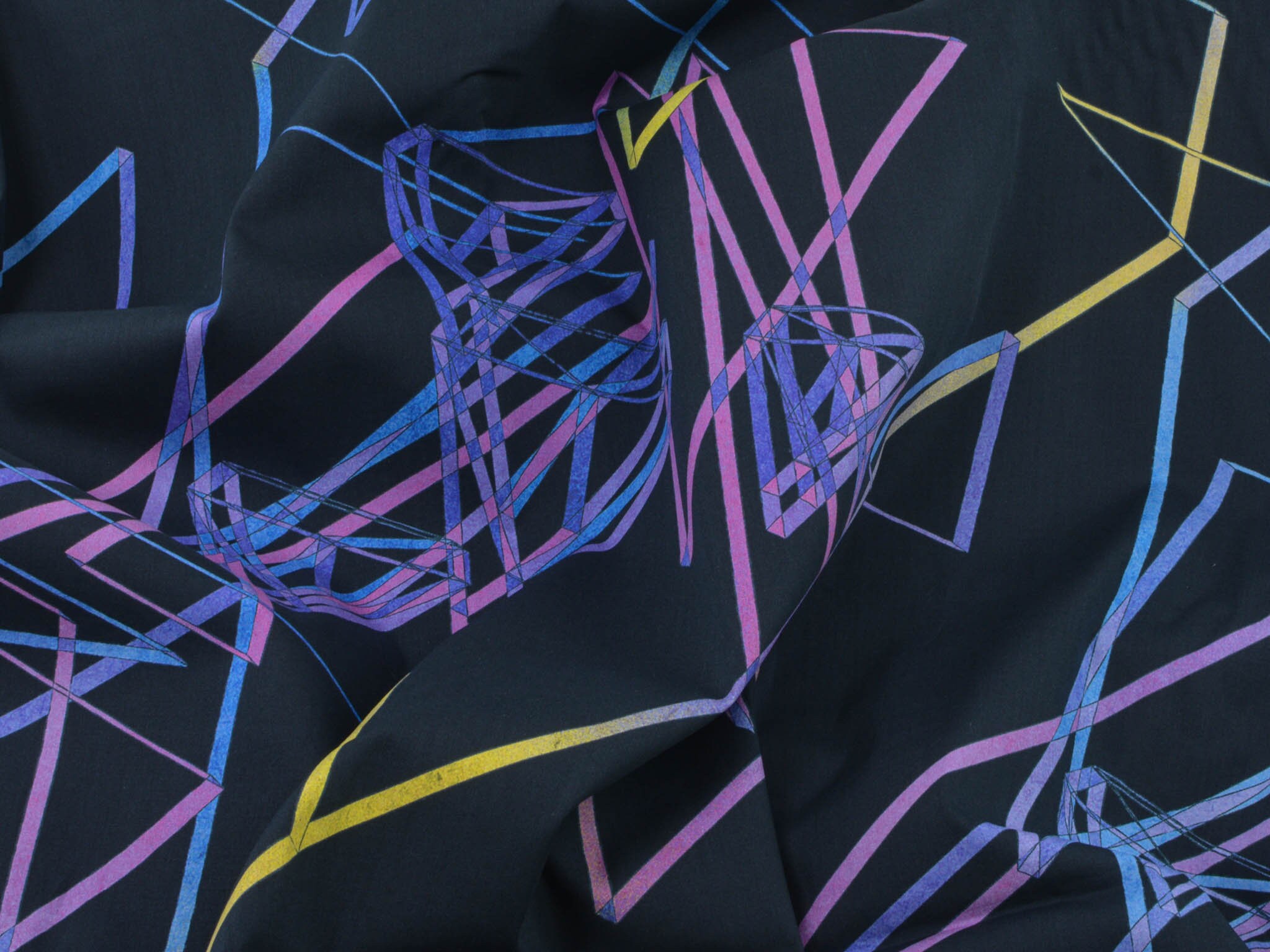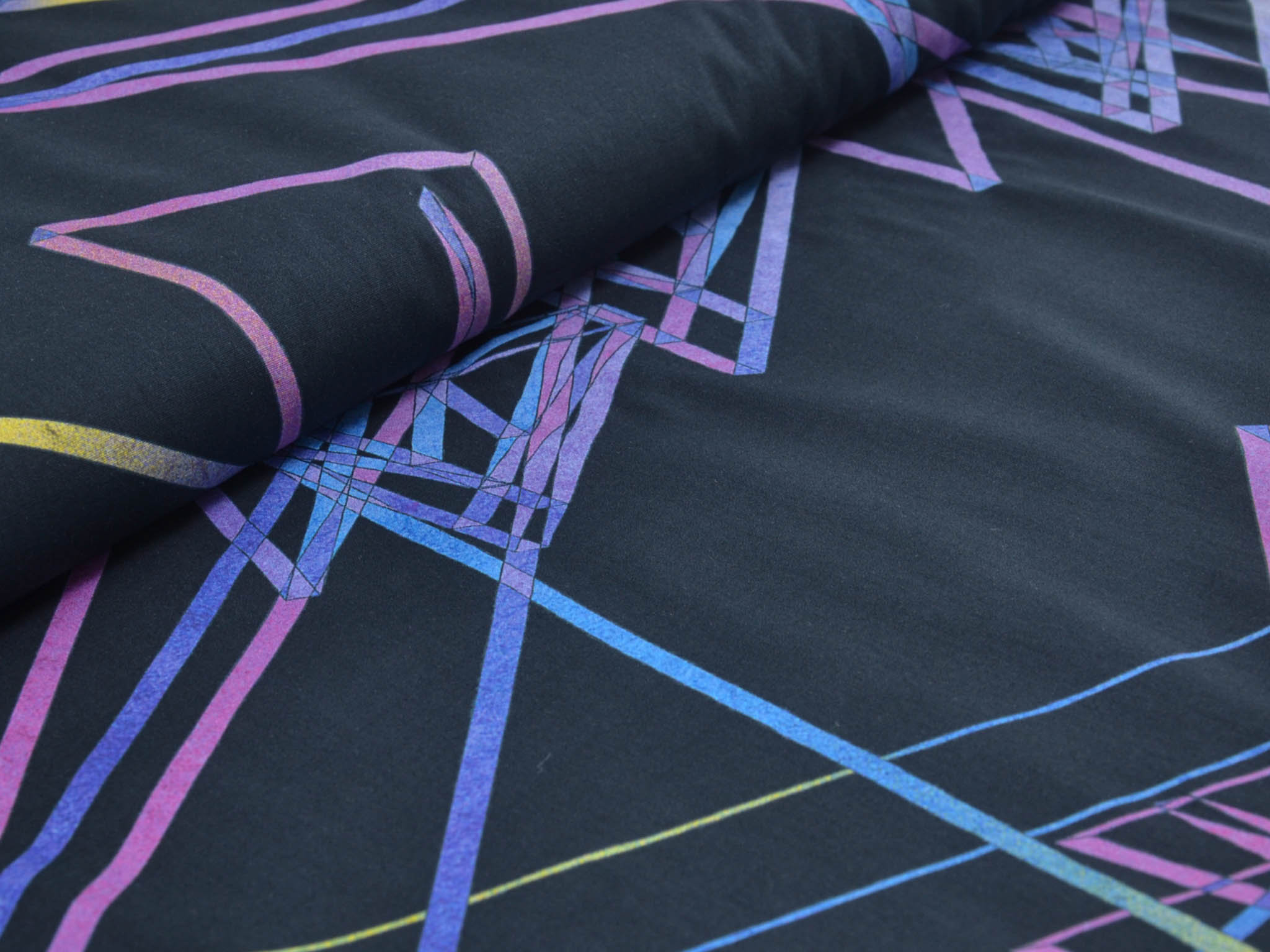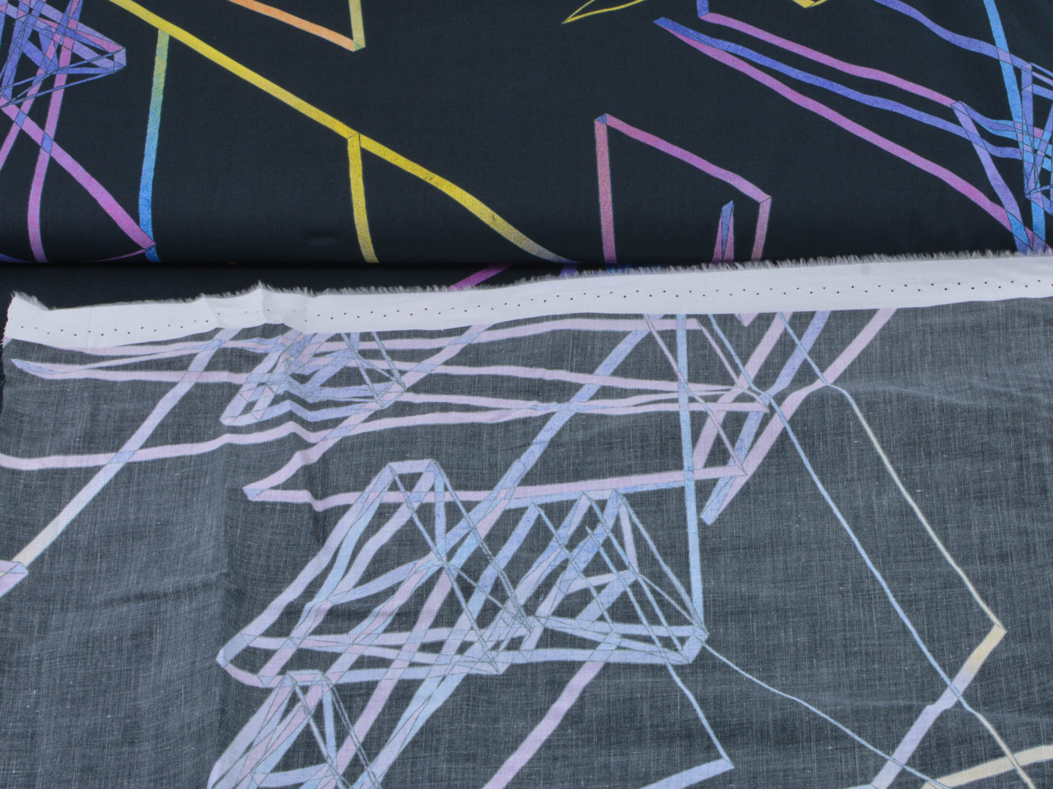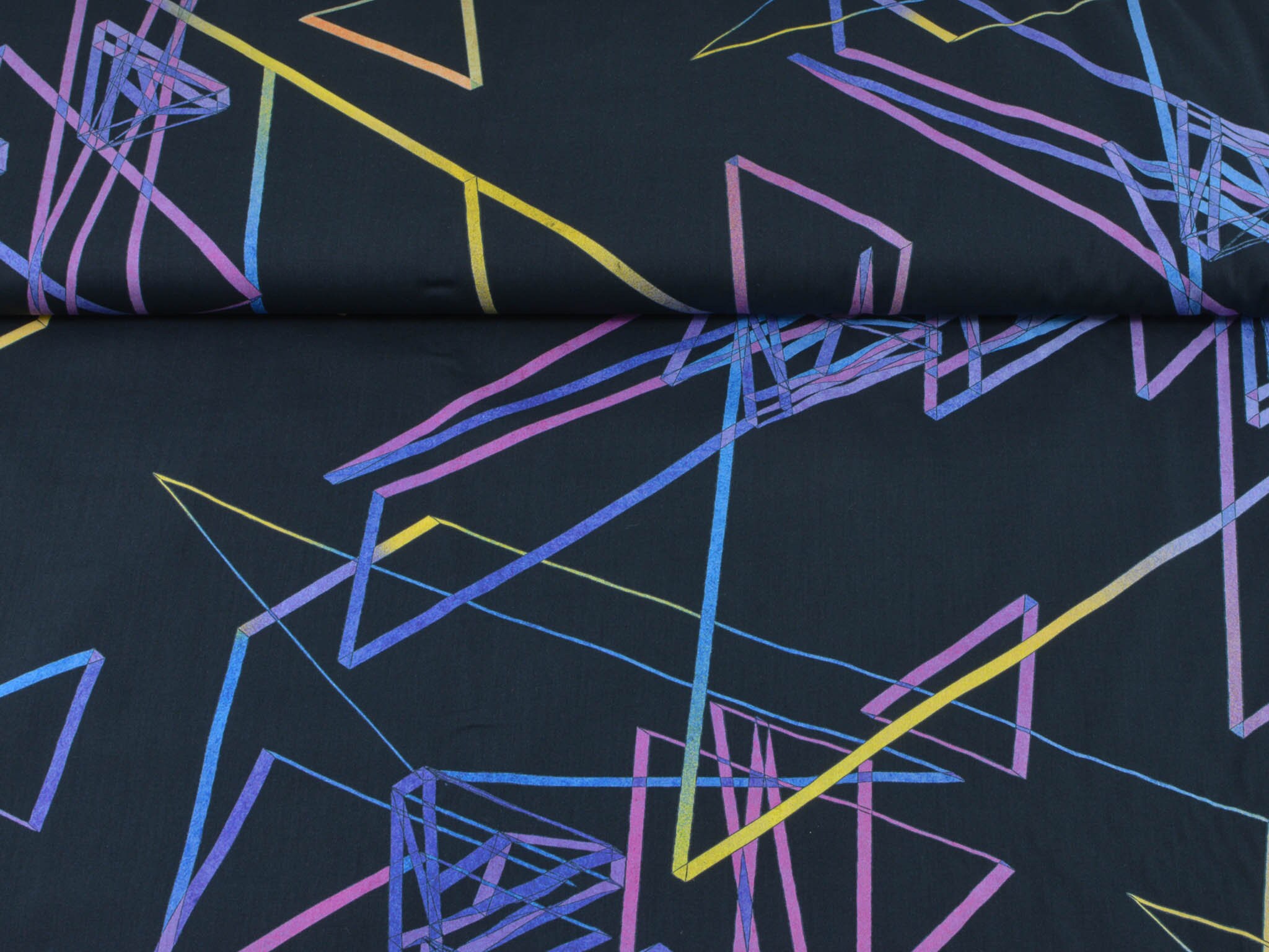 High-quality printed cotton with a geometric pattern from Hilco. This thin summer fabric is perfect for sewing skirts, dresses, blouses, and much more.