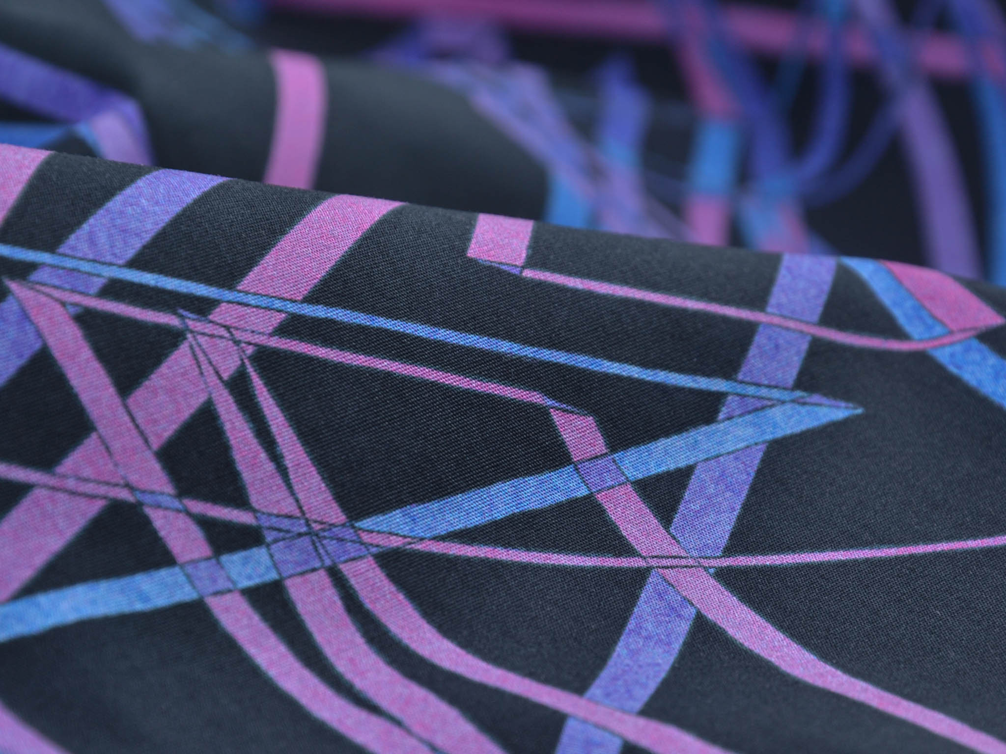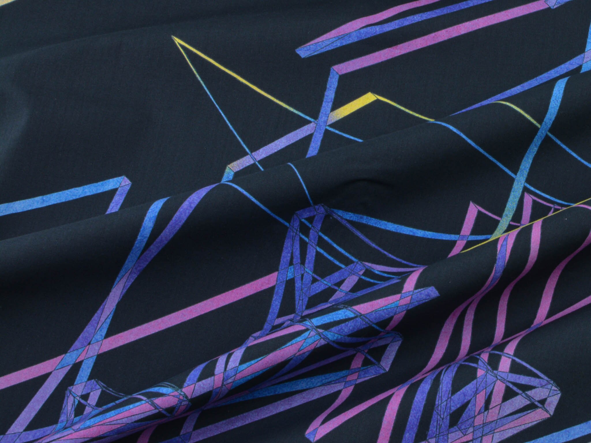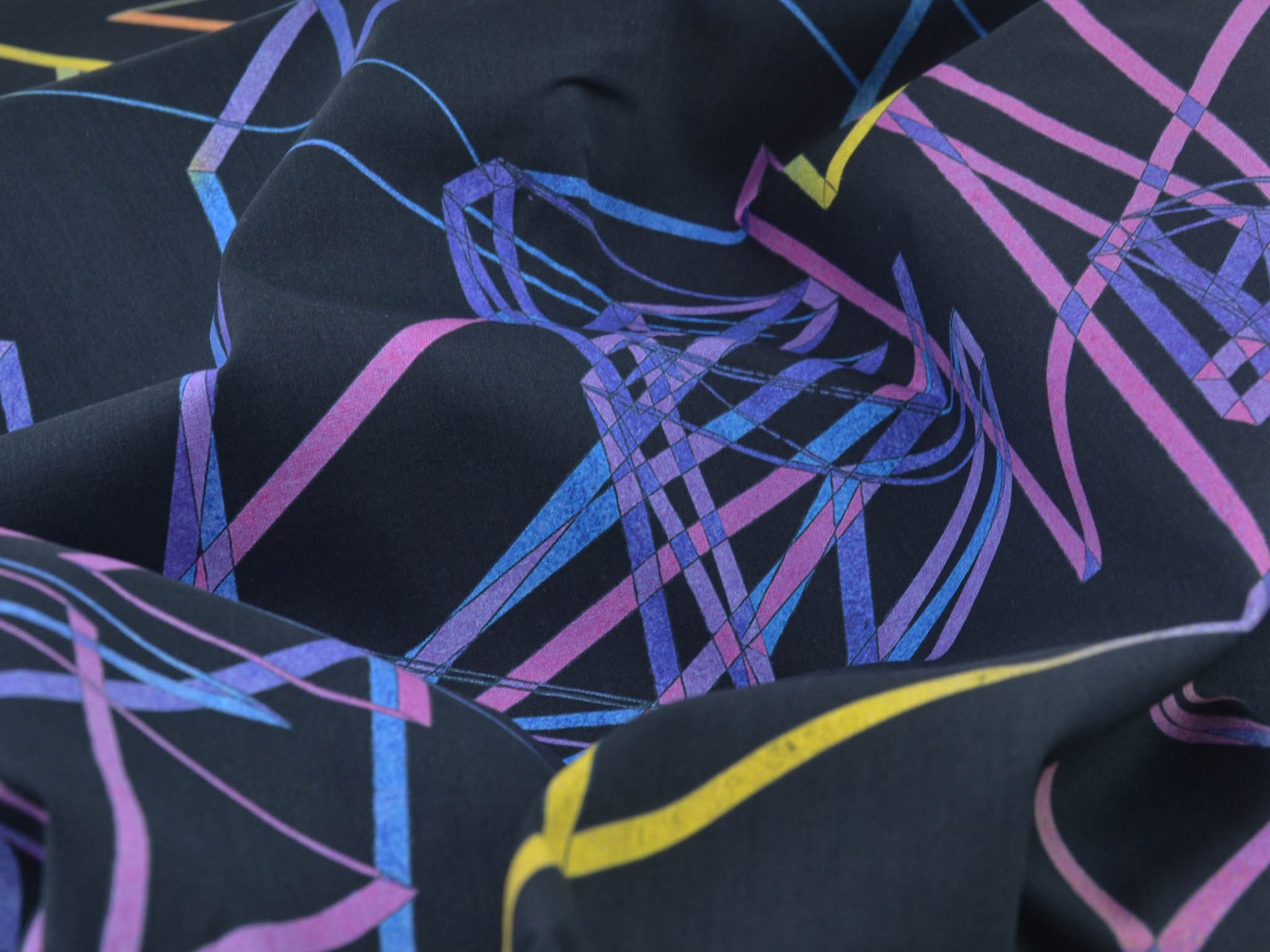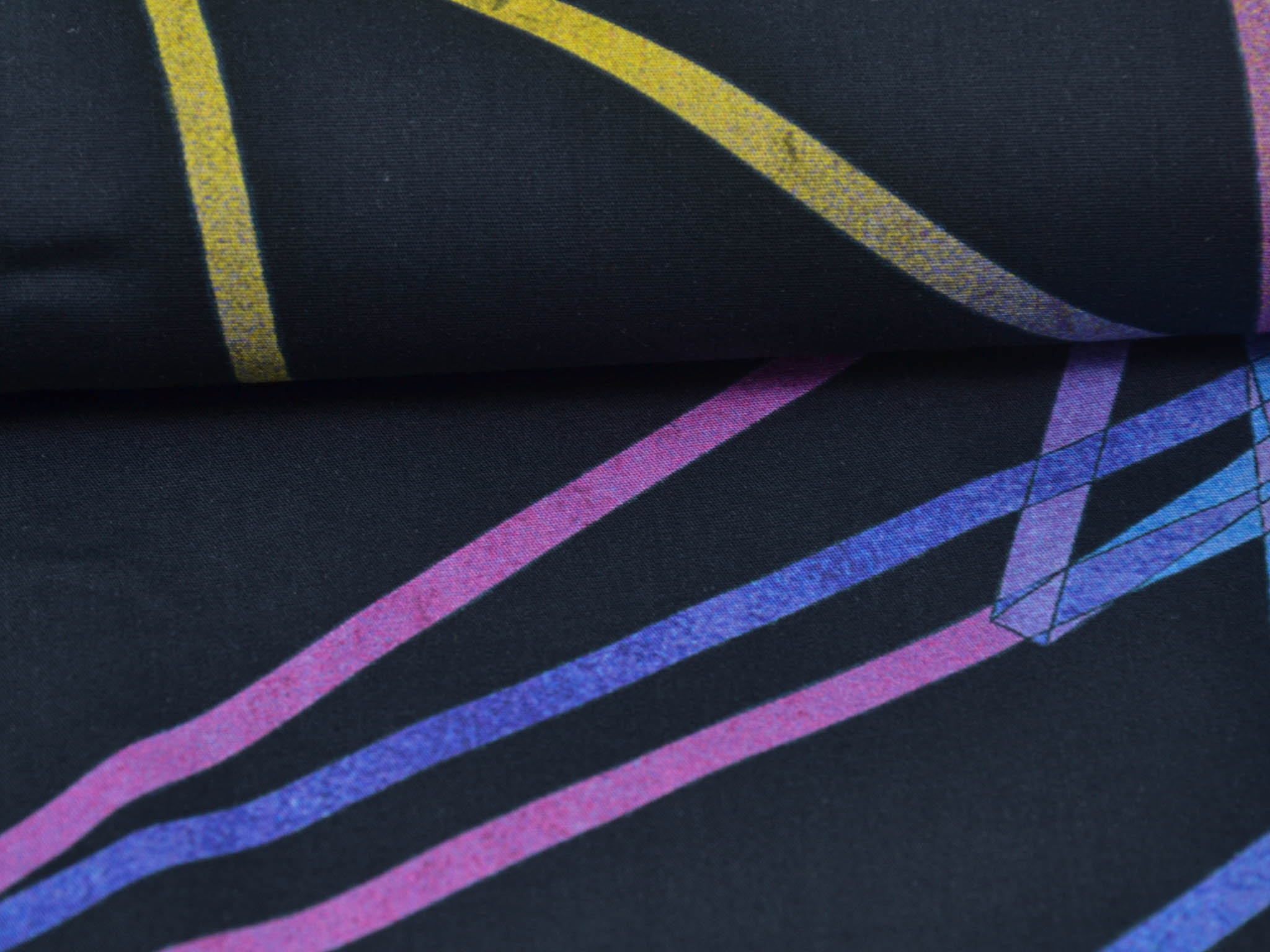High-quality printed cotton with a geometric pattern from Hilco. This thin summer fabric is perfect for sewing skirts, dresses, blouses, and much more.