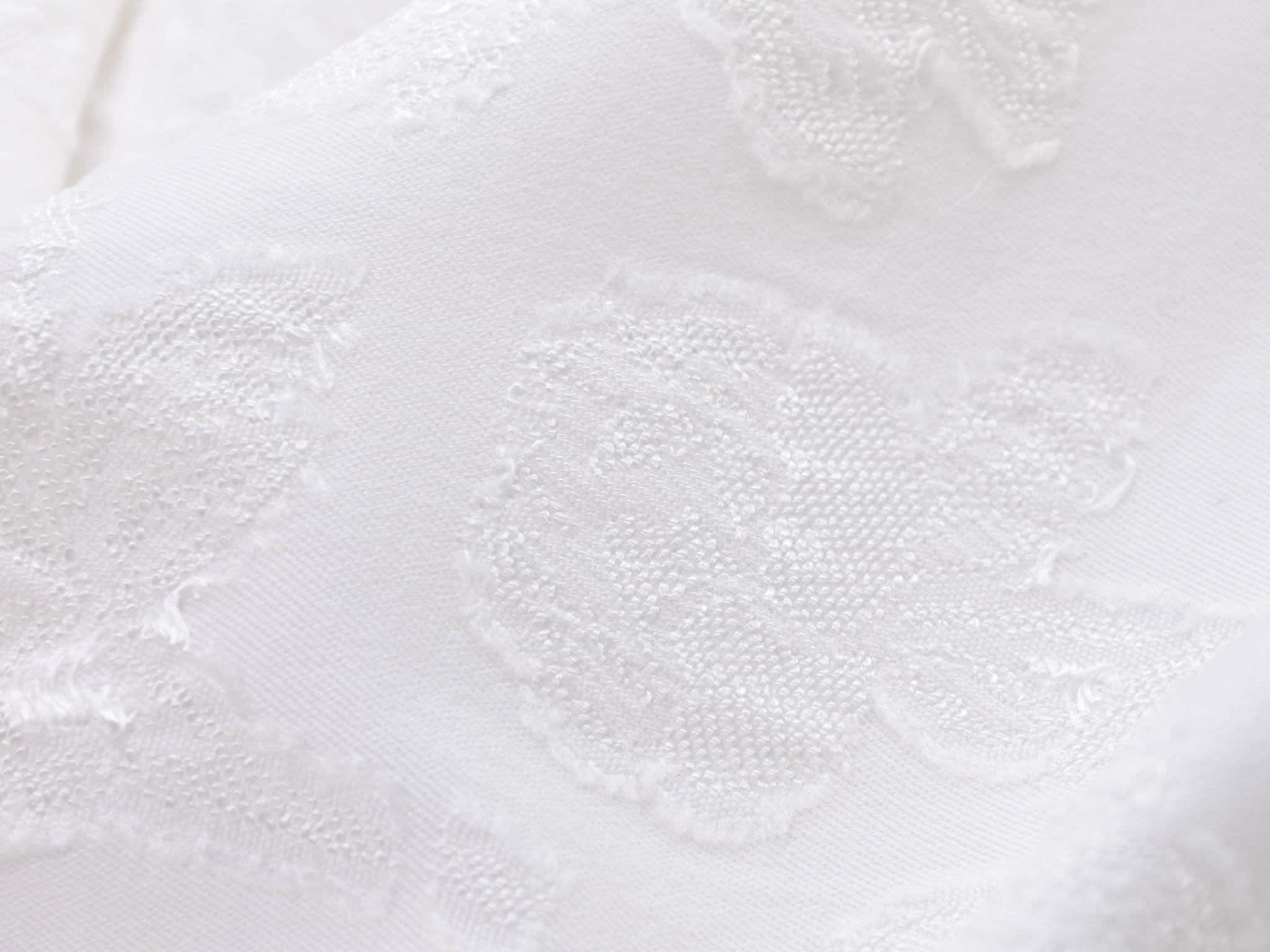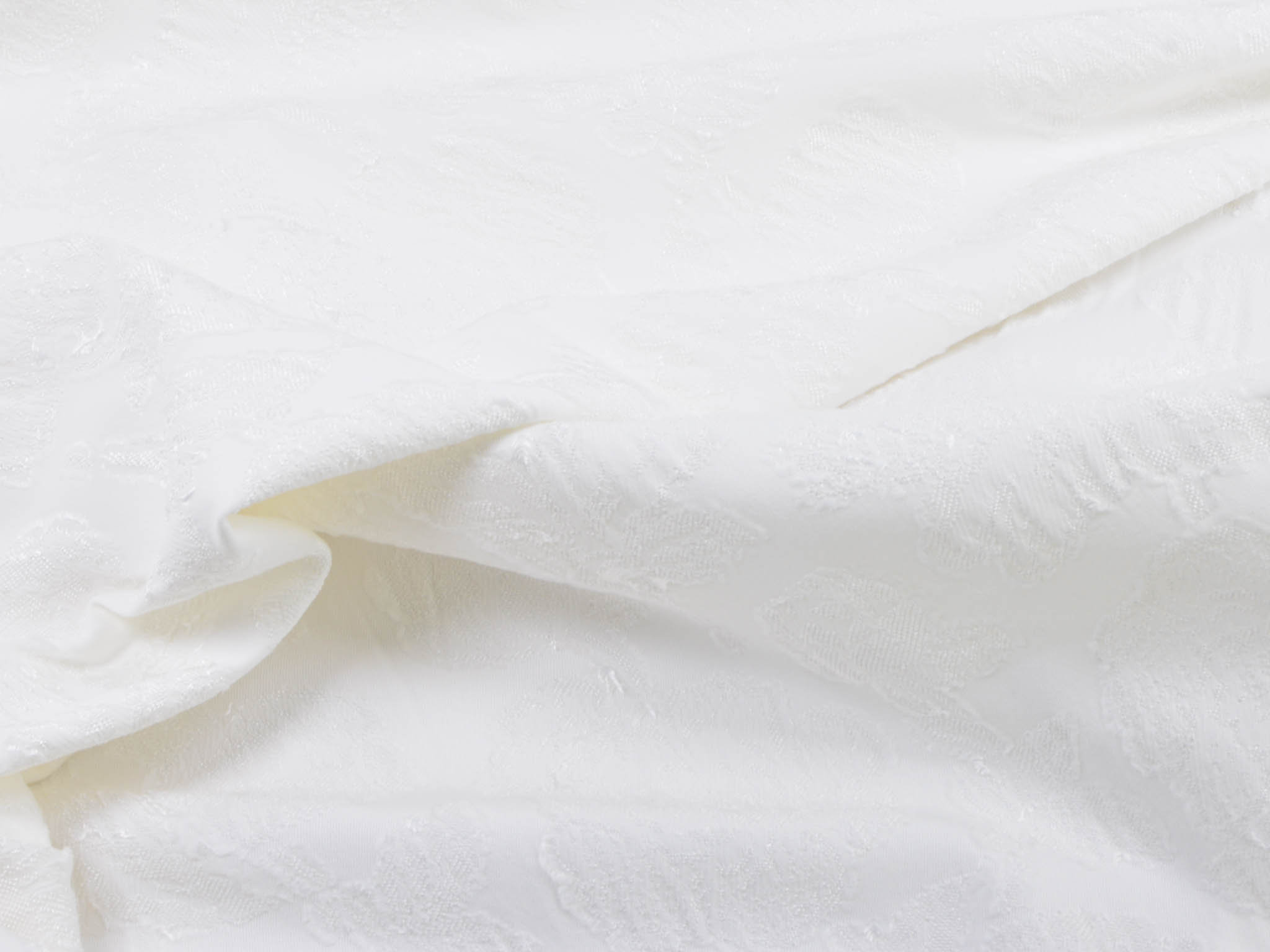 Hochwertiger Baumwollstoff Ausbrenner in weiß mit Stretch. Der Stoff ist recht fest und stabil. Er eignet sich zum Nähen von Hosen, Röcken und Kleidern.