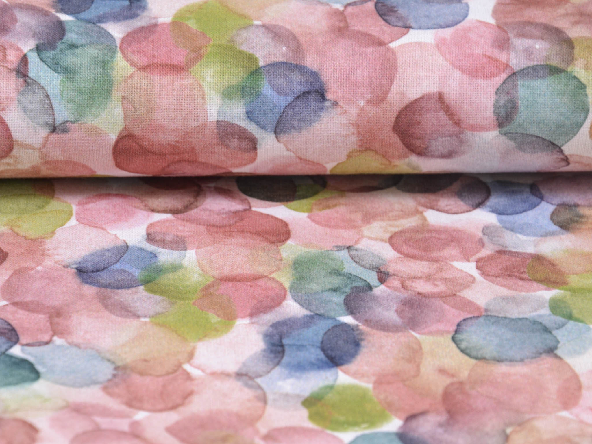 Standard Baumwollstoff aus Italien. Weißer Stoff mit kleinen, Kreisen in grau. Der Stoff ist wunderbar zum Nähen von Accessoires, Kissen, Täschchen und vielem mehr.