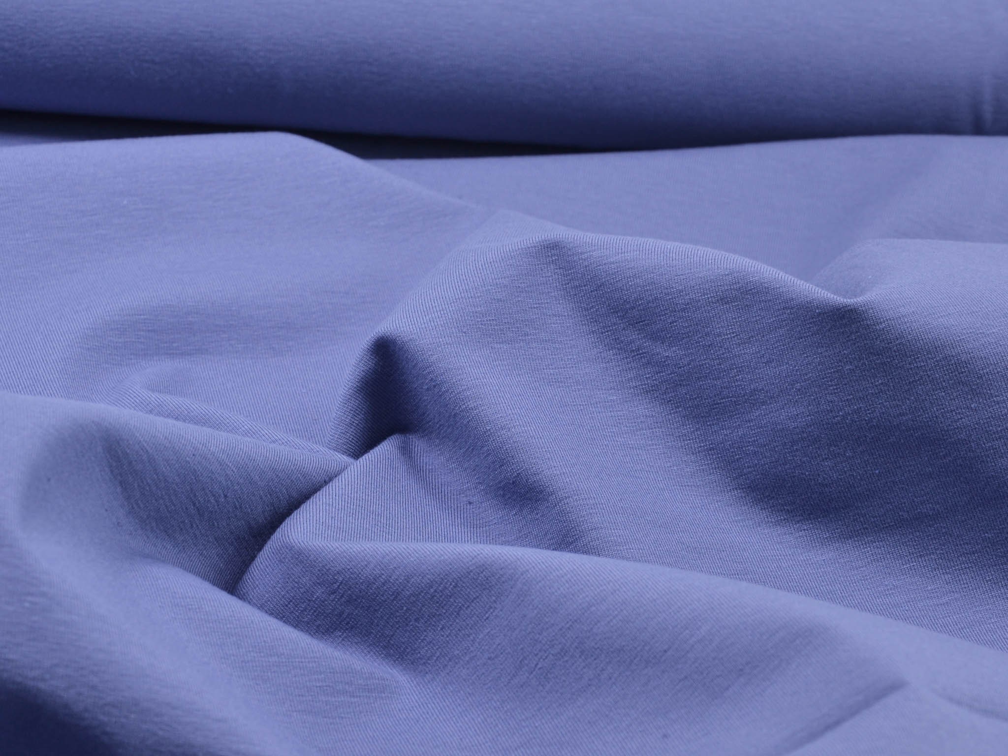 Baumwolljersey uni in jeansblau von Katia. Super schön zum Nähen von T-Shirts, Pumphosen, Leggings und vielem mehr.