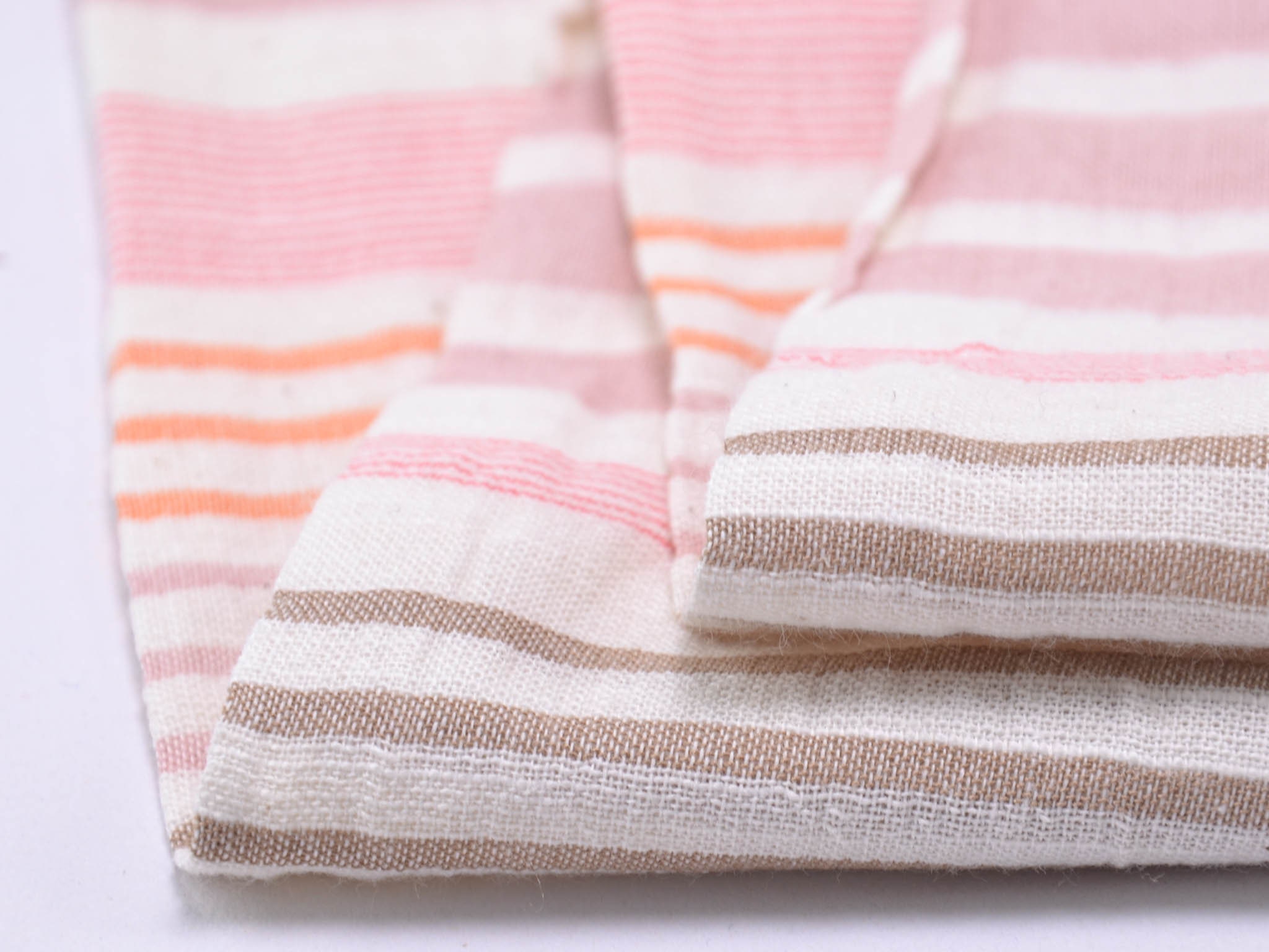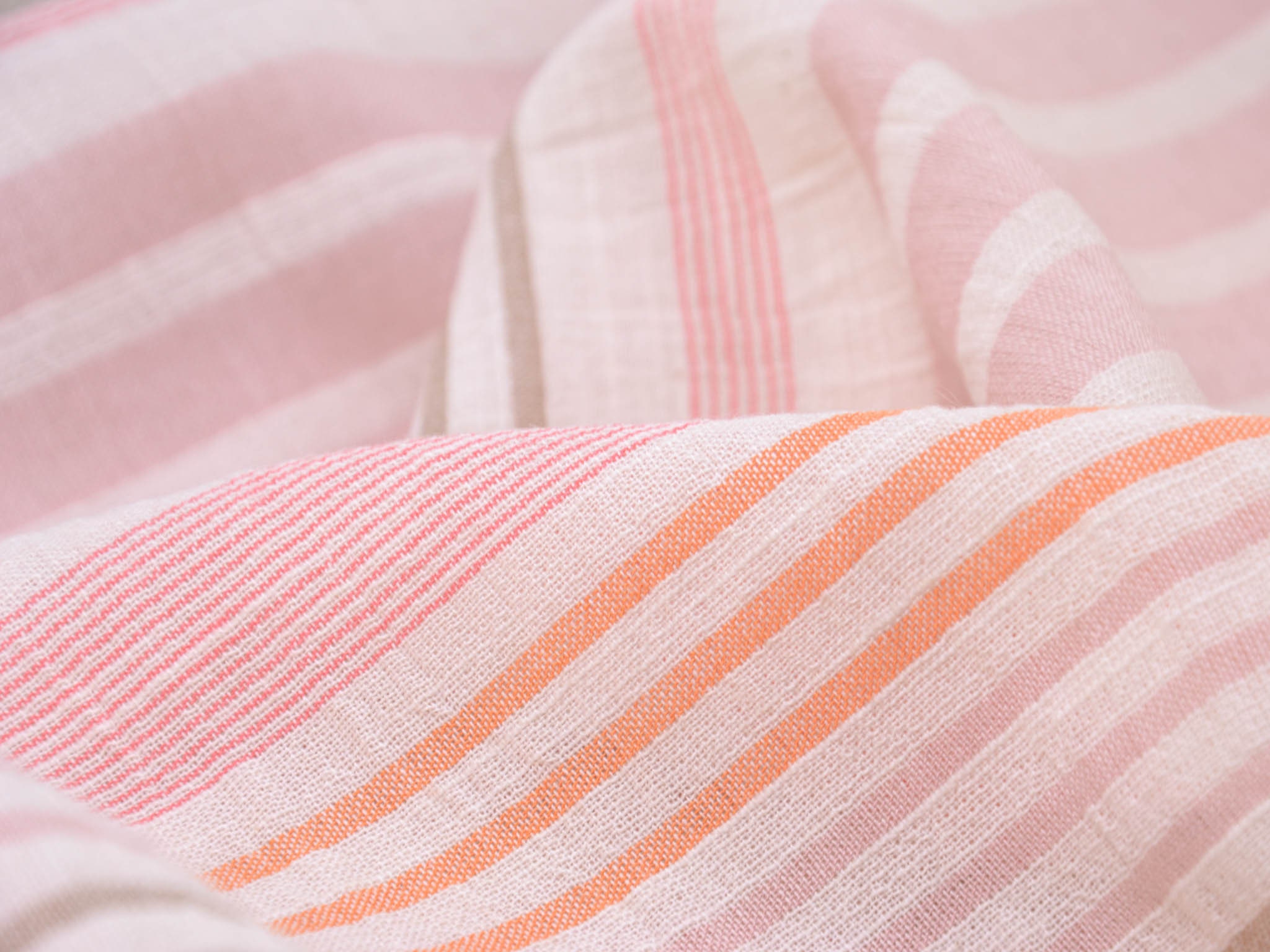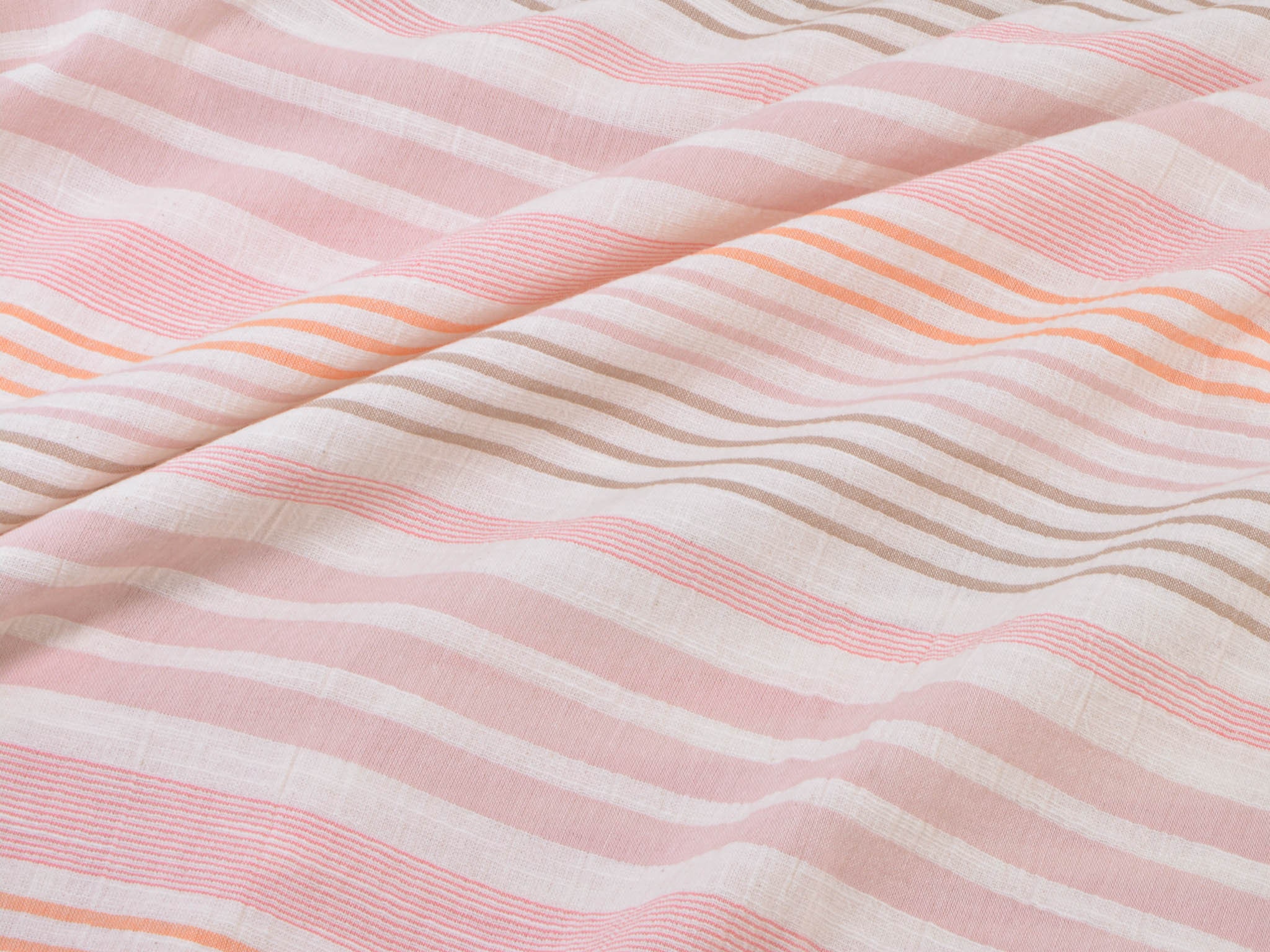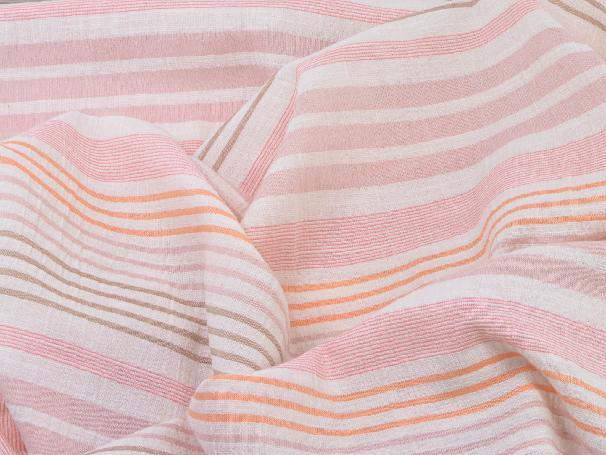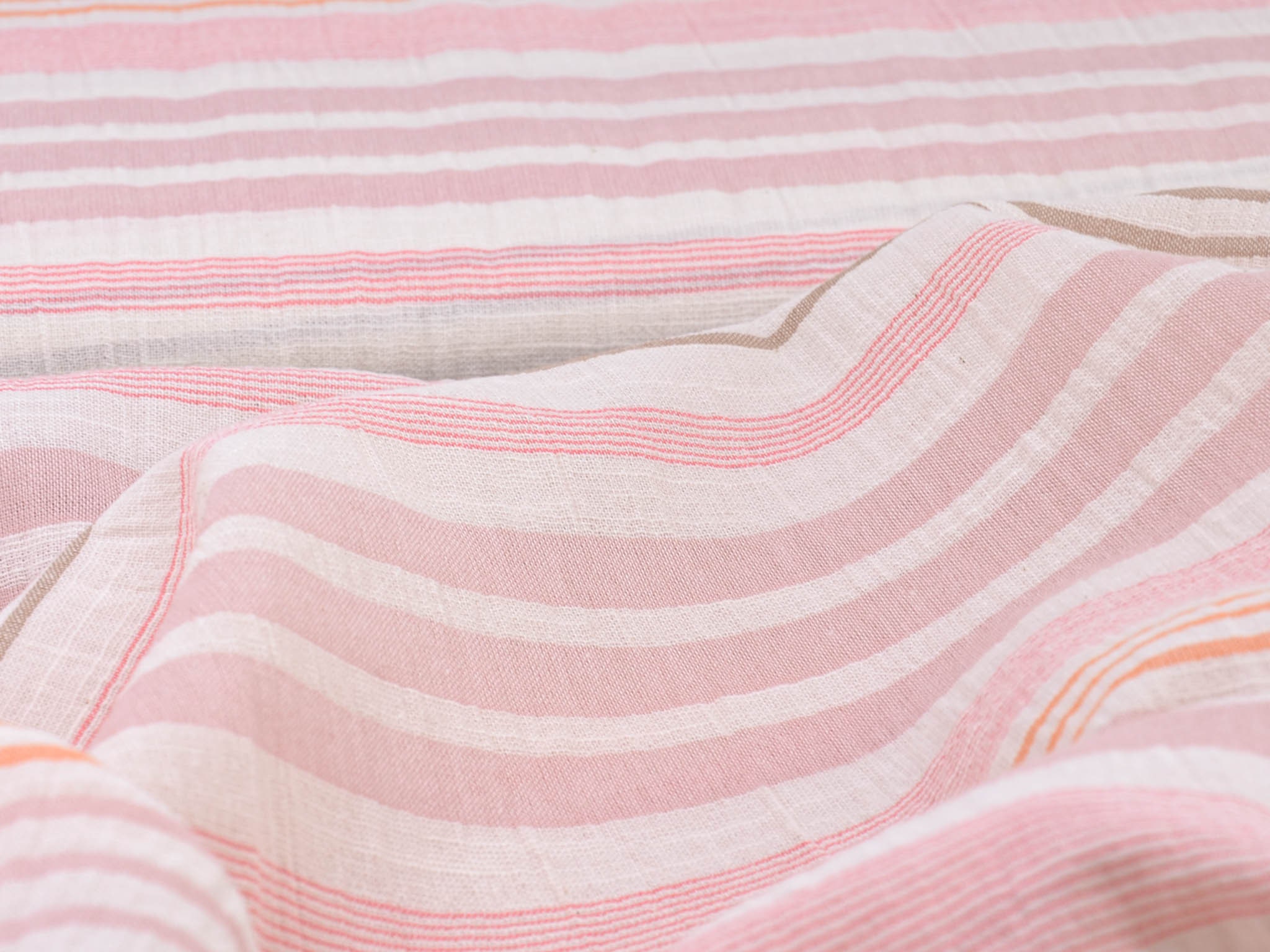 Gestreifter Stoff aus Viskose und Baumwolle. Der Stoff hat einen leichten Crinkle-Effekt, dadurch bekommt der Stoff eine natürliche Optik. Er eignet sich zum Nähen von Kleidern, Röcken, Schals, Blusen und vielem mehr.