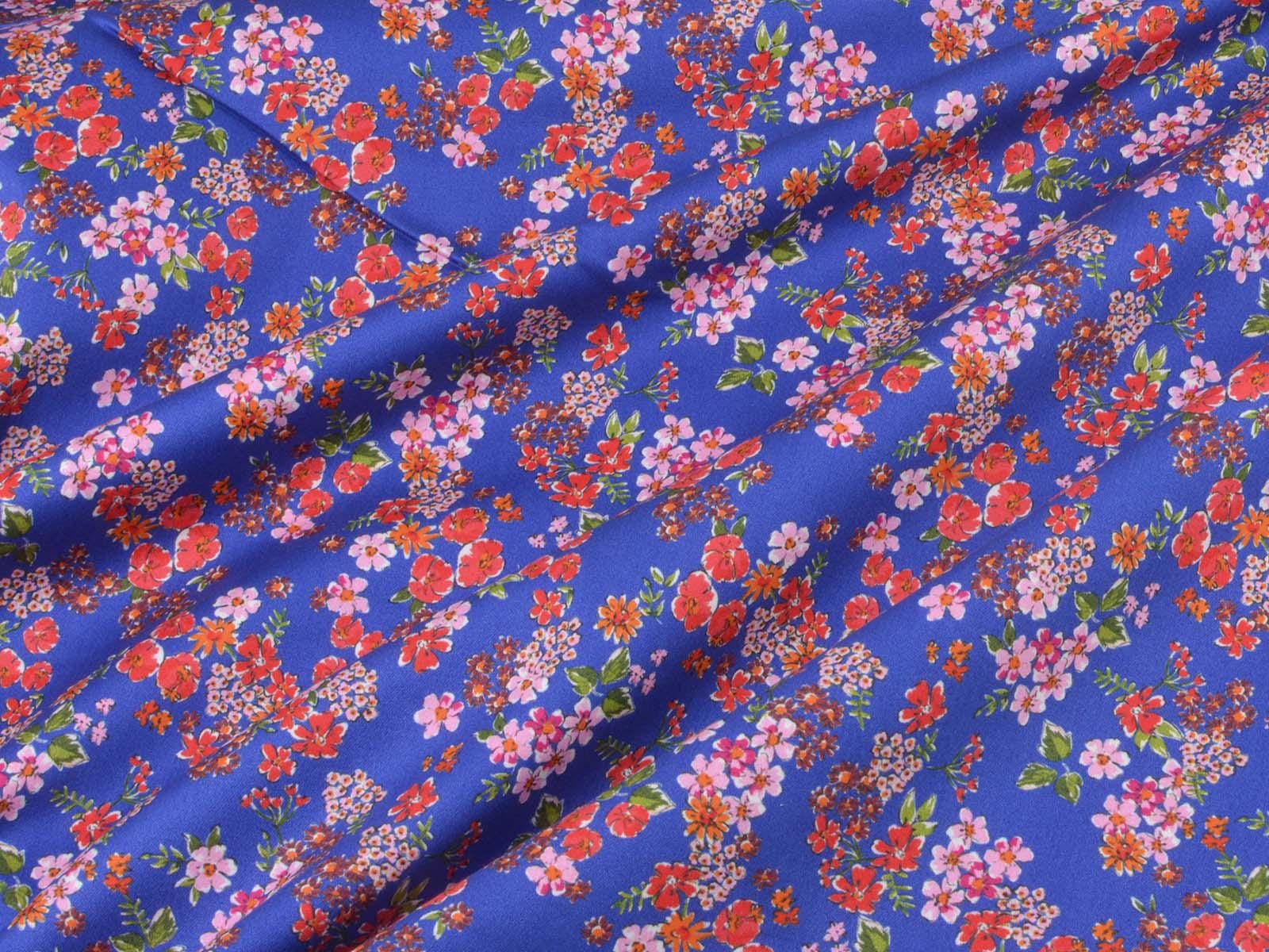 Hochwertiger Satinstoff aus Baumwolle mit Elastan (Webware). Der Stoff ist galtt, leicht glänzend und gemustert. Der elastische Stoff eignet sich wunderbar zum Nähen von schicken Hosen, Röcken und Kleidern.
