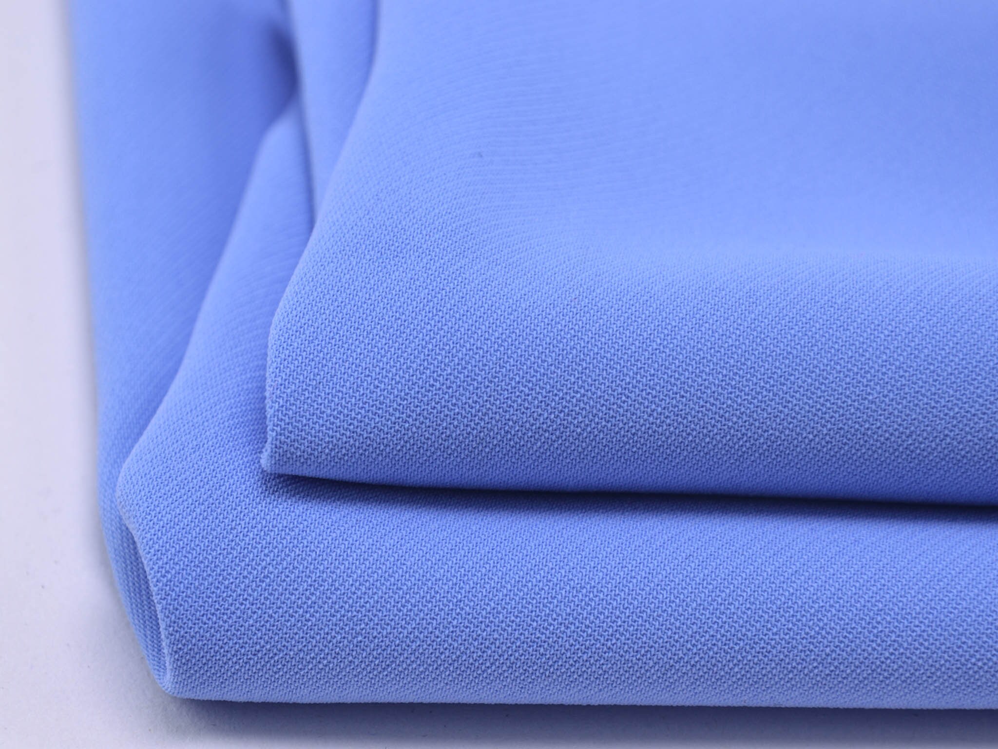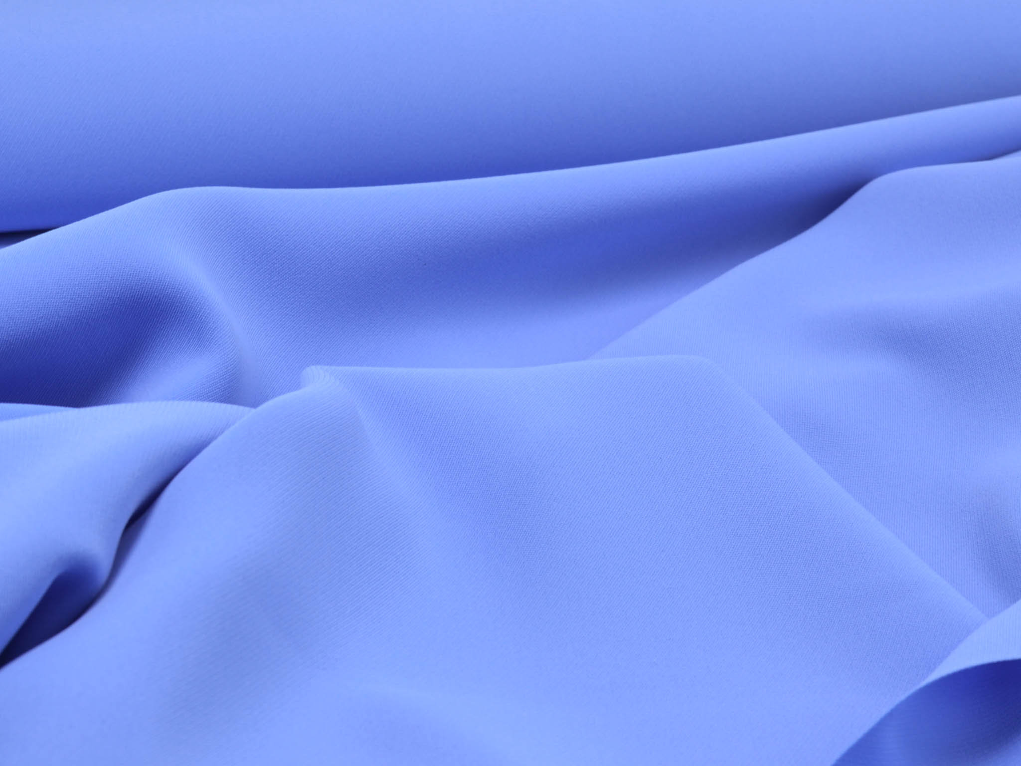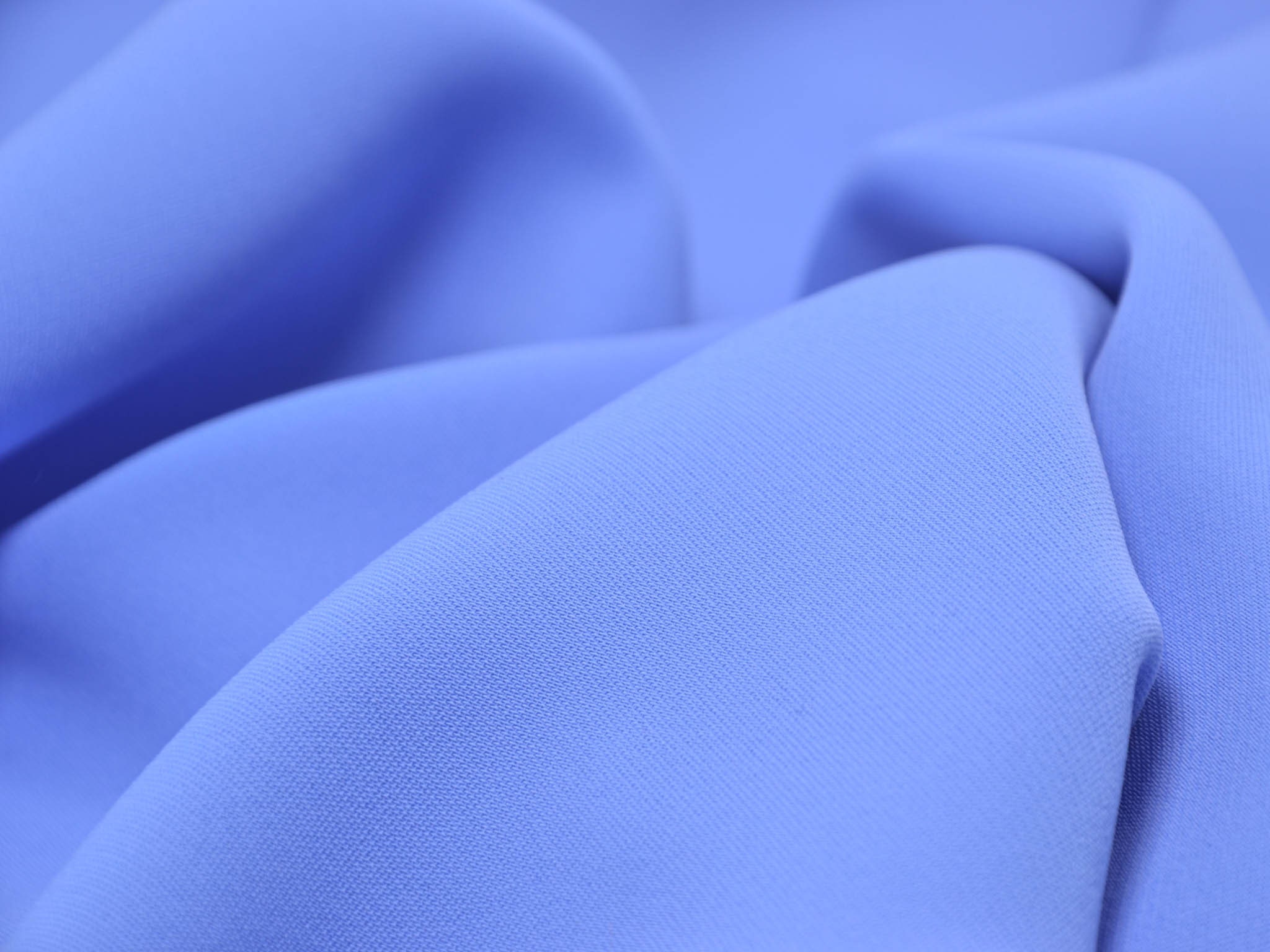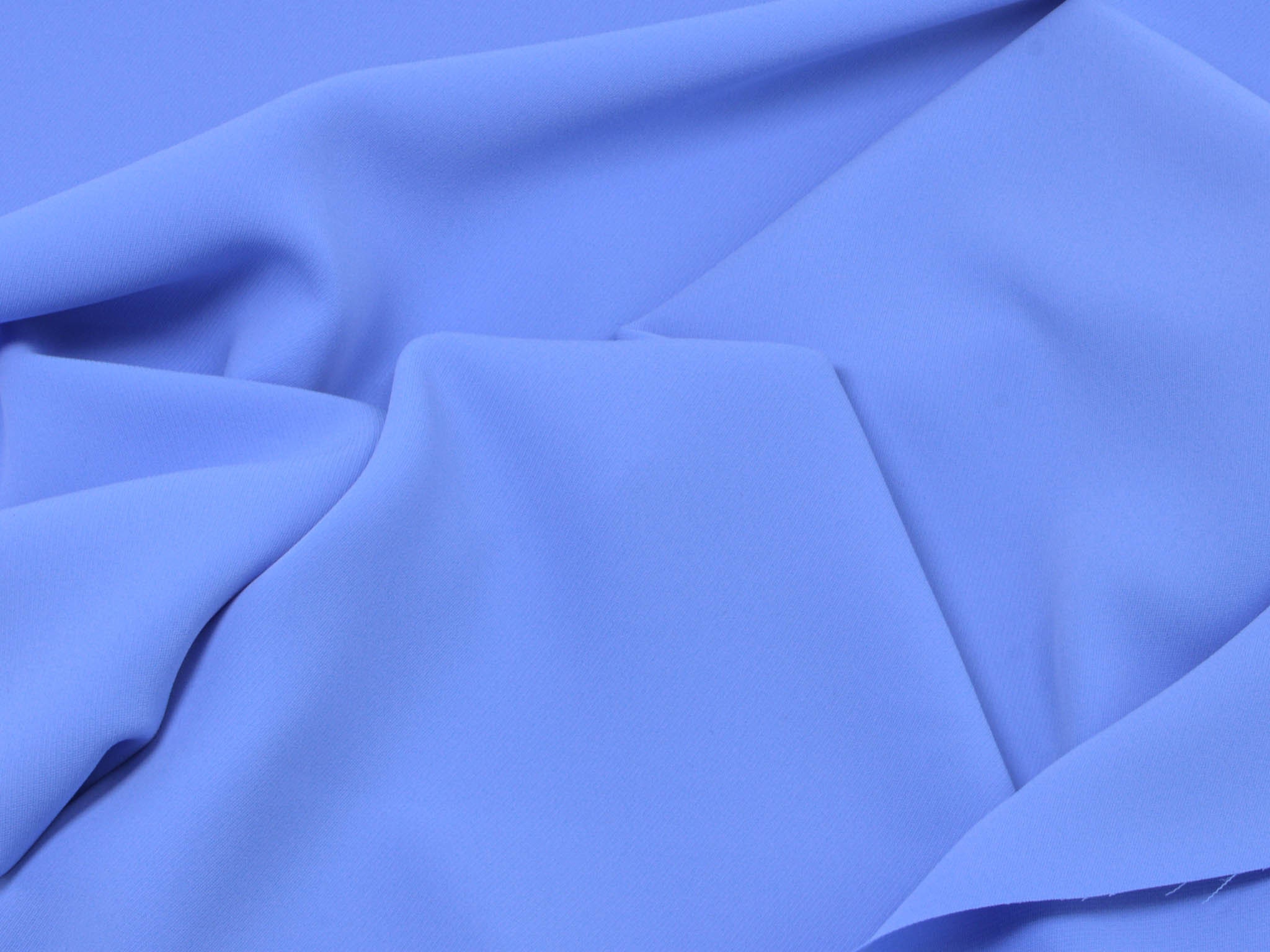 Blauer Stoff aus Polyester. Der Stoff eignet sich perfekt zum Reisen, denn er knittert nicht. Er ist leicht und fließend. Der Stoff ist perfekt zum Nähen von Kleidern, Röcken und Hosen.