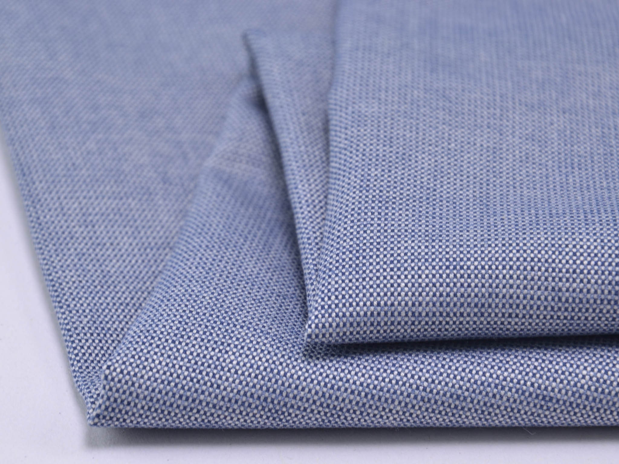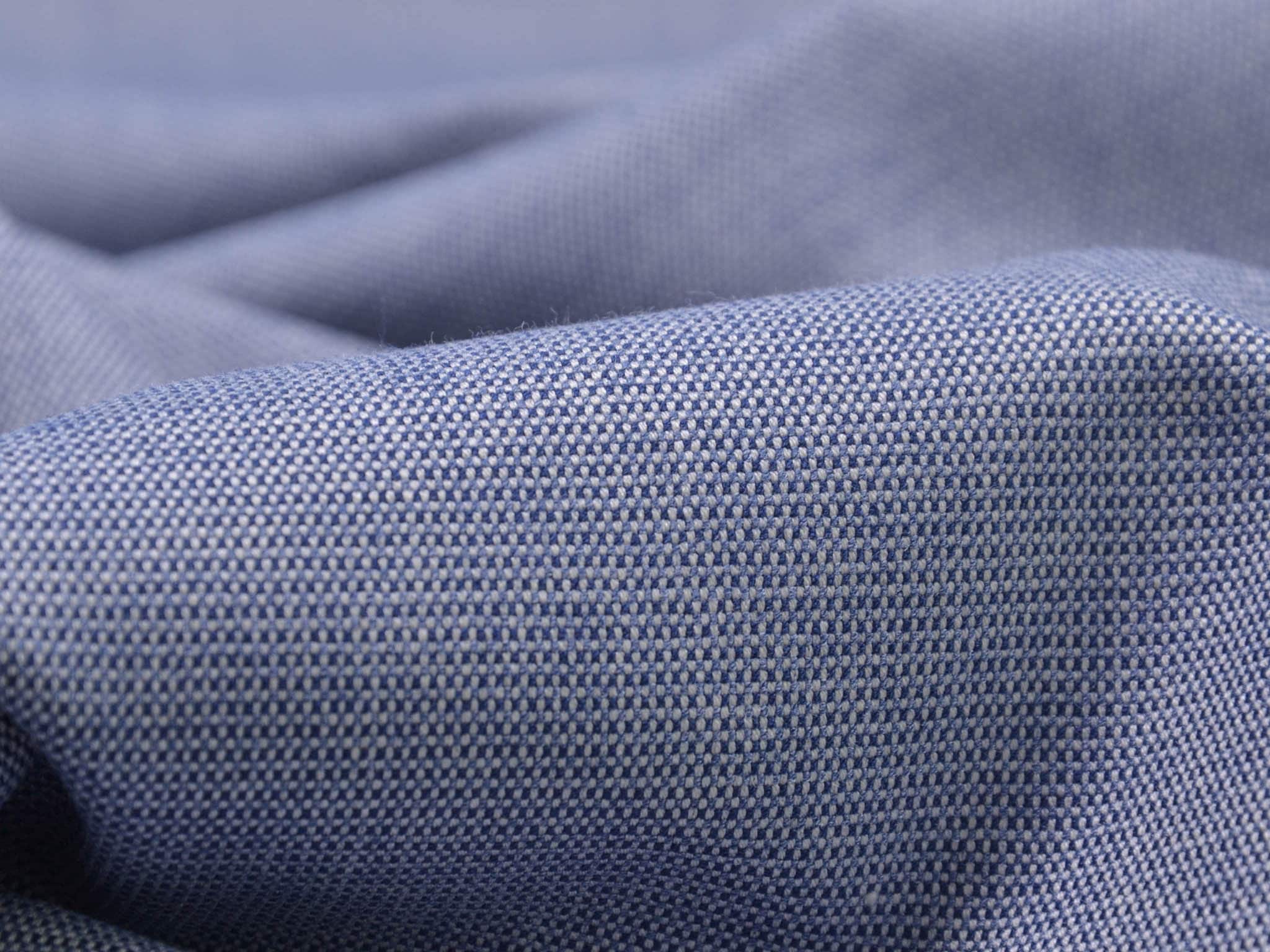 Blue mottled fabric made of cotton, viscose, polyester, and elastane. This thin, smooth fabric is perfect for sewing pants, skirts, dresses, and much more.