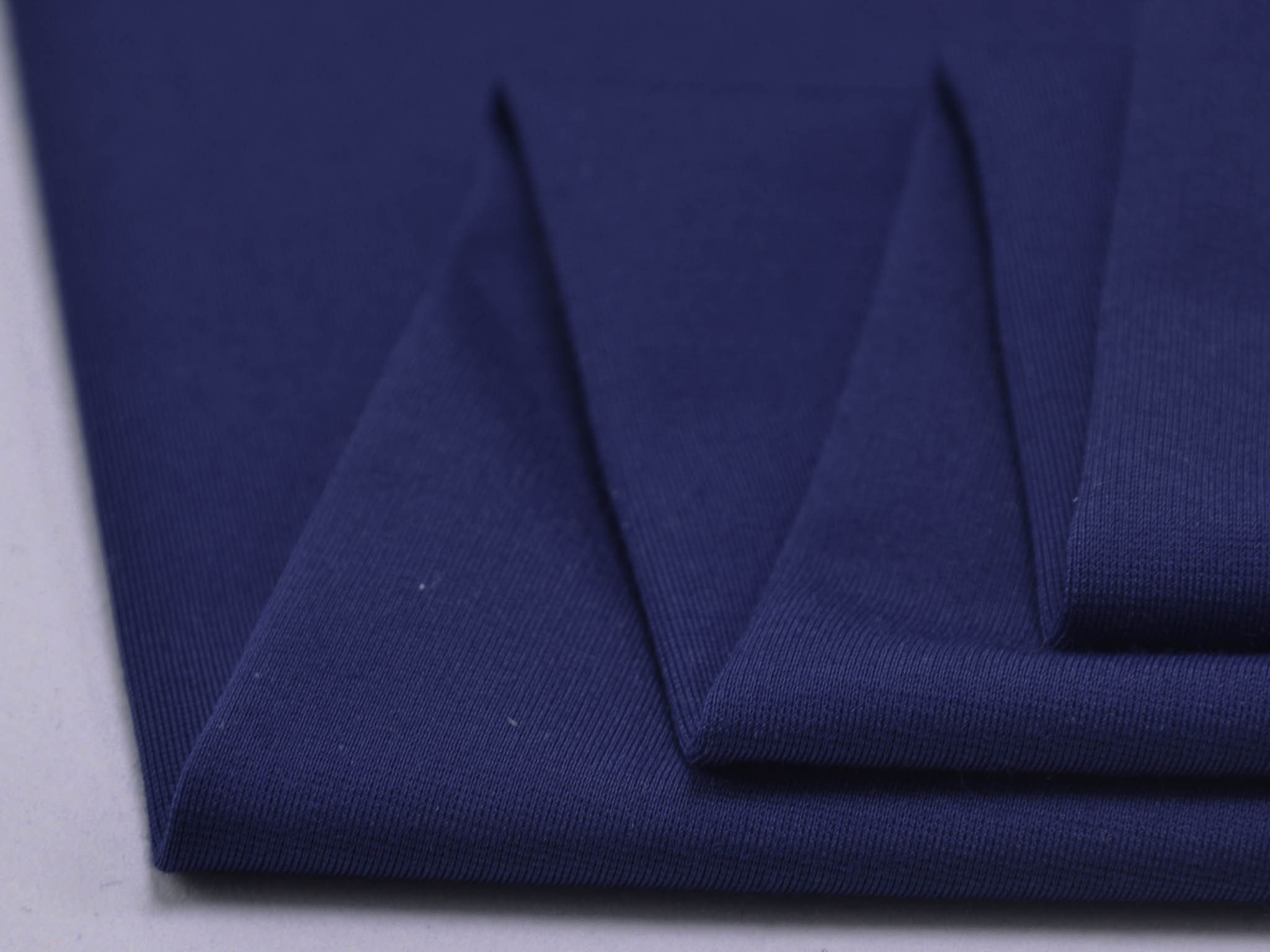 Italienischer Viskosejersey in uni blau. Der dünner, aber feste Jersey hat einen leichten Glanz. Er eignet sich wunderbar zum Nähen von Kleidern, Hosen, Röcken und vielem mehr.