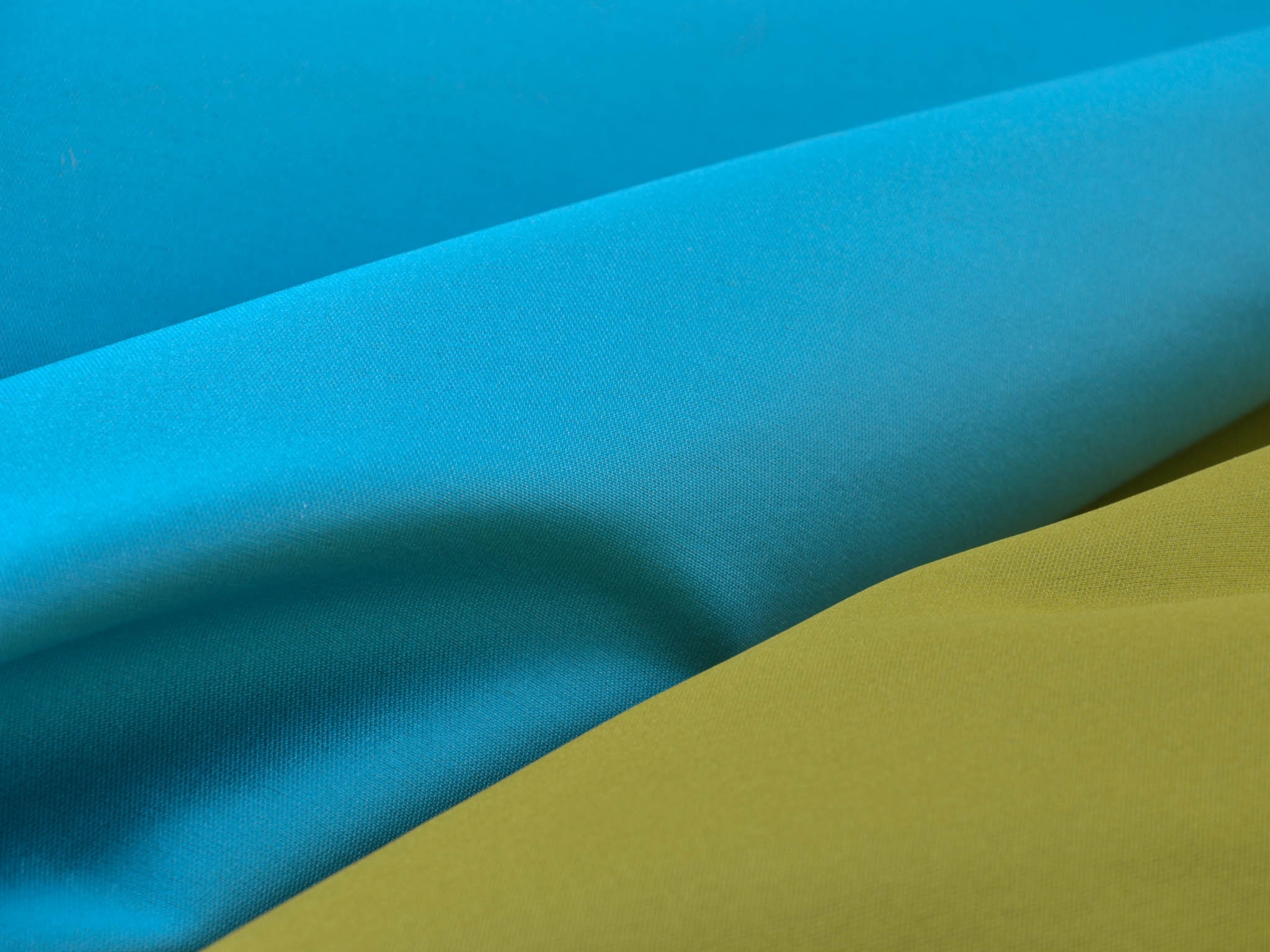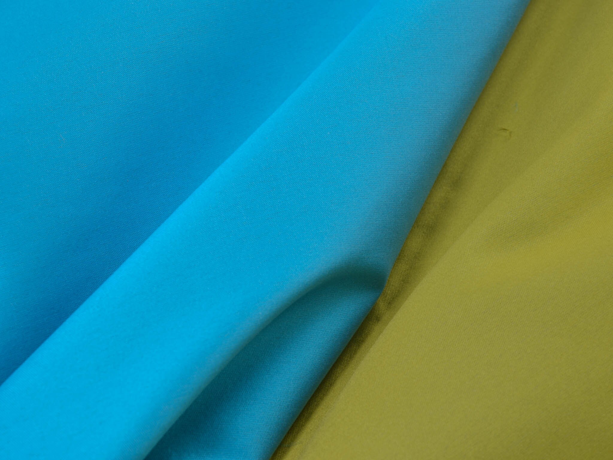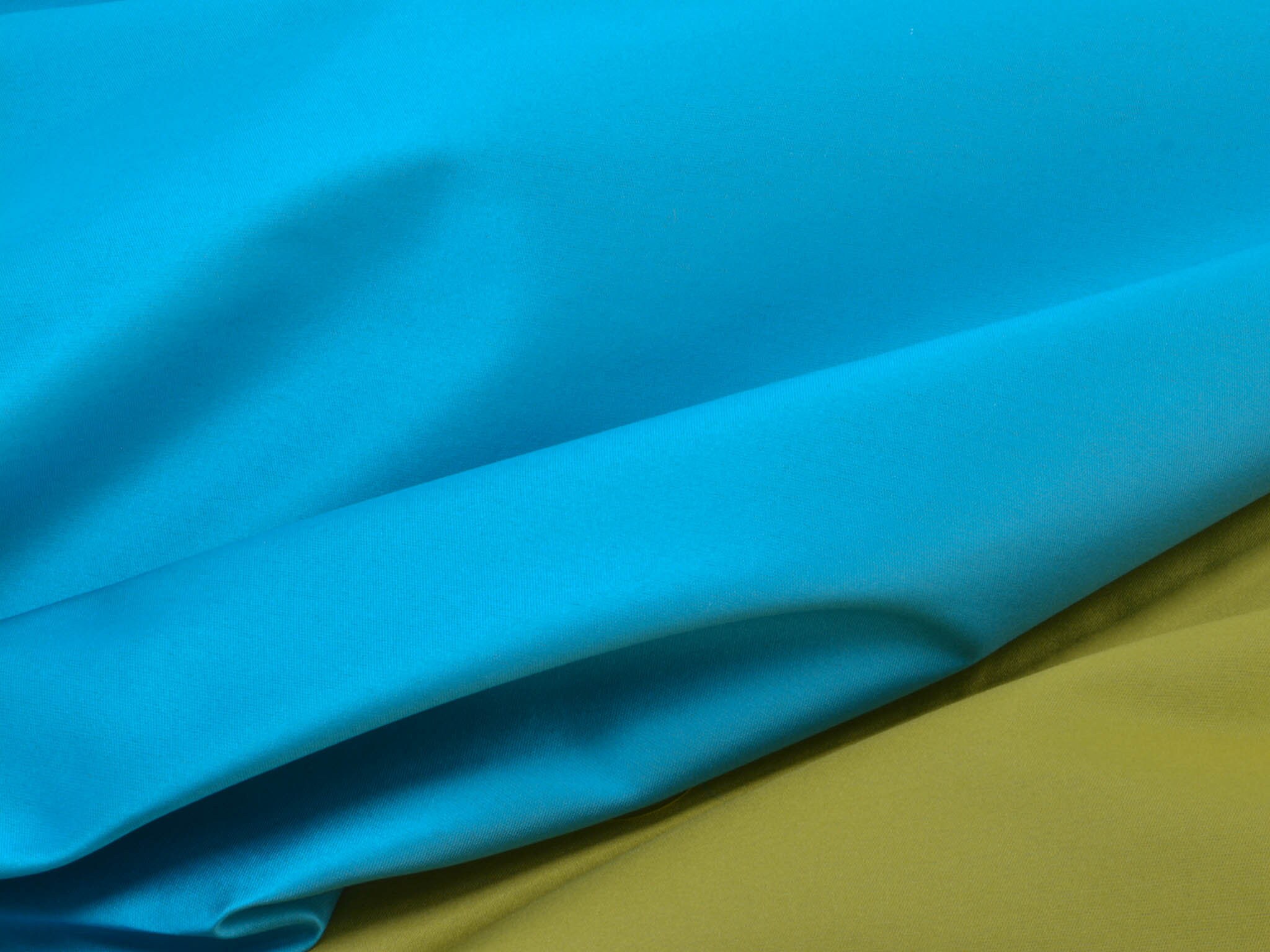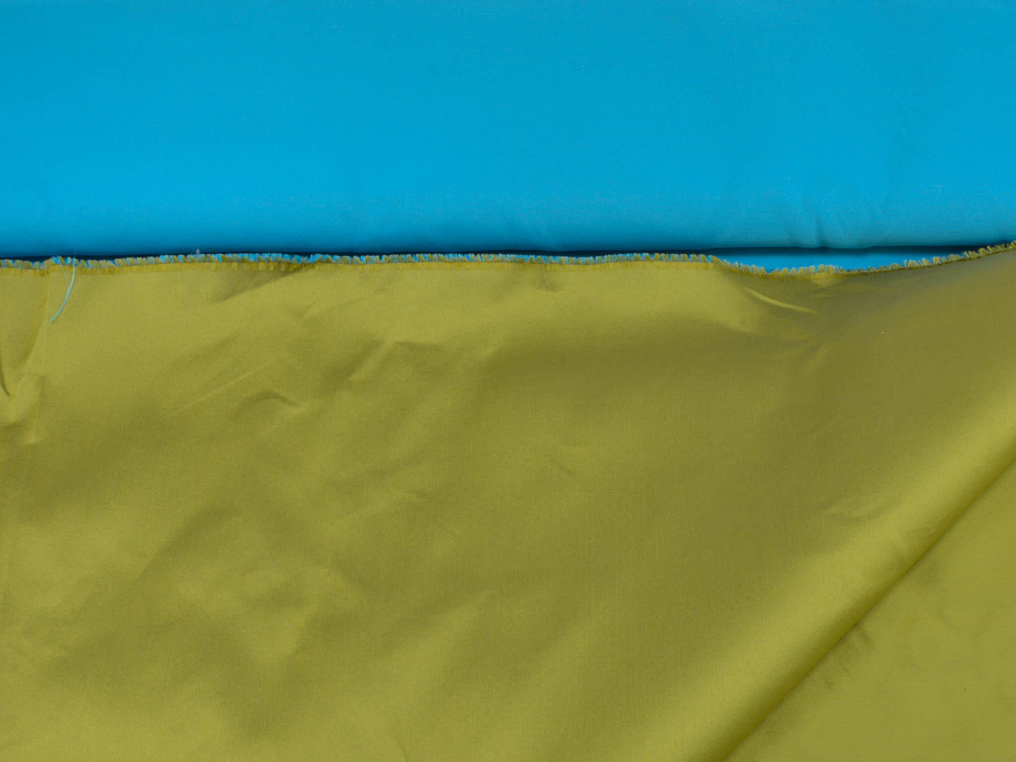 Very high-quality double-face fabric from Italy. The fabric has great body, making it perfect for opulent skirts and dresses. This chic fabric is also used for evening wear. The special feature of the fabric is that it can be used on both sides, creating stunning effects. One side is blue, and the other is green with a yellow tinge.